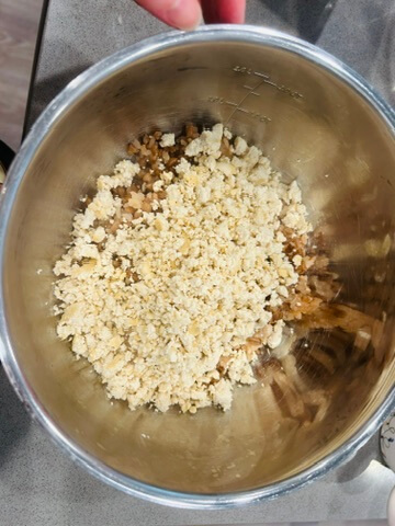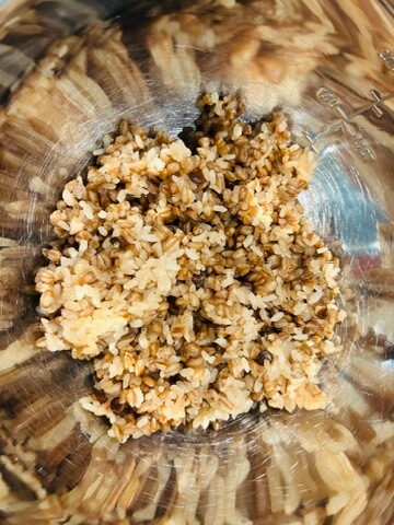 8. 밥에 두부를 넣고 소금, 참기름으로 밑간을 해 줍니다.