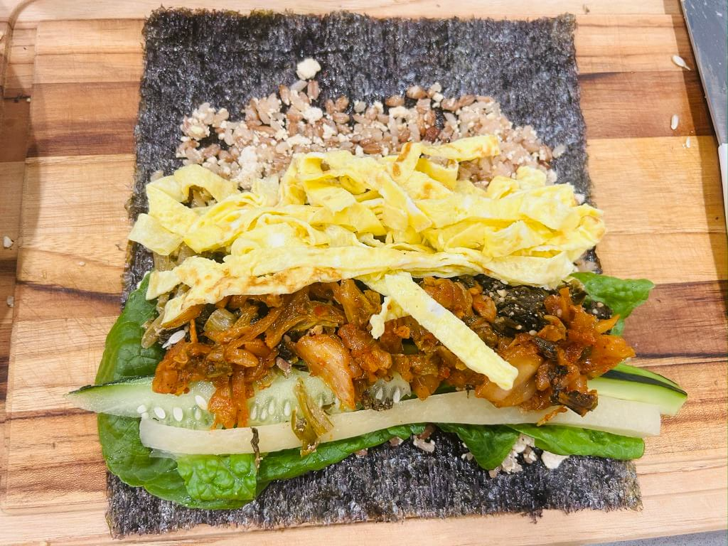 시금치와 버섯의 조화! 영양 가득한 건강 김밥 만들기
