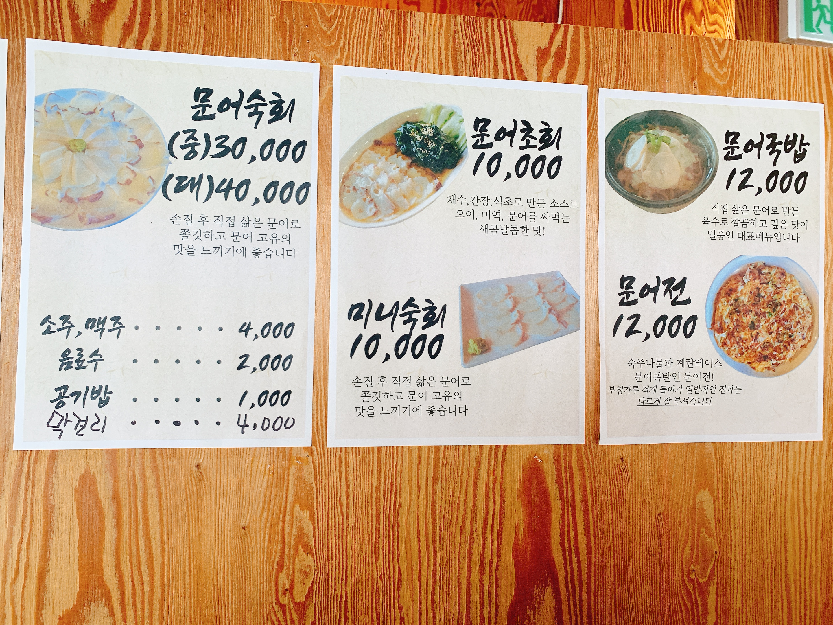 베짱이 문어국밥 가격표입니다.