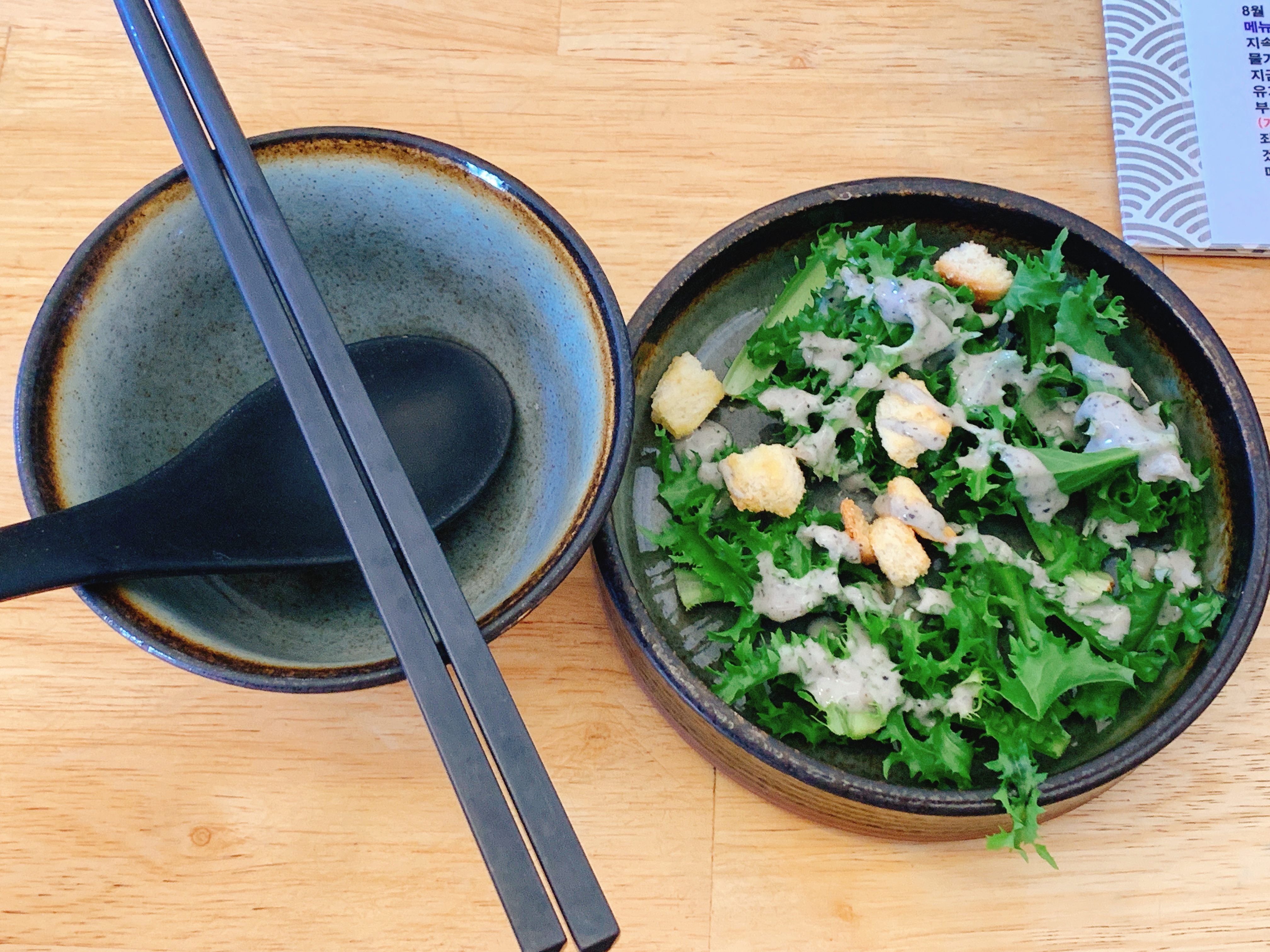 초밥나오기 전에 샐러드와 우동이 나옵니다.