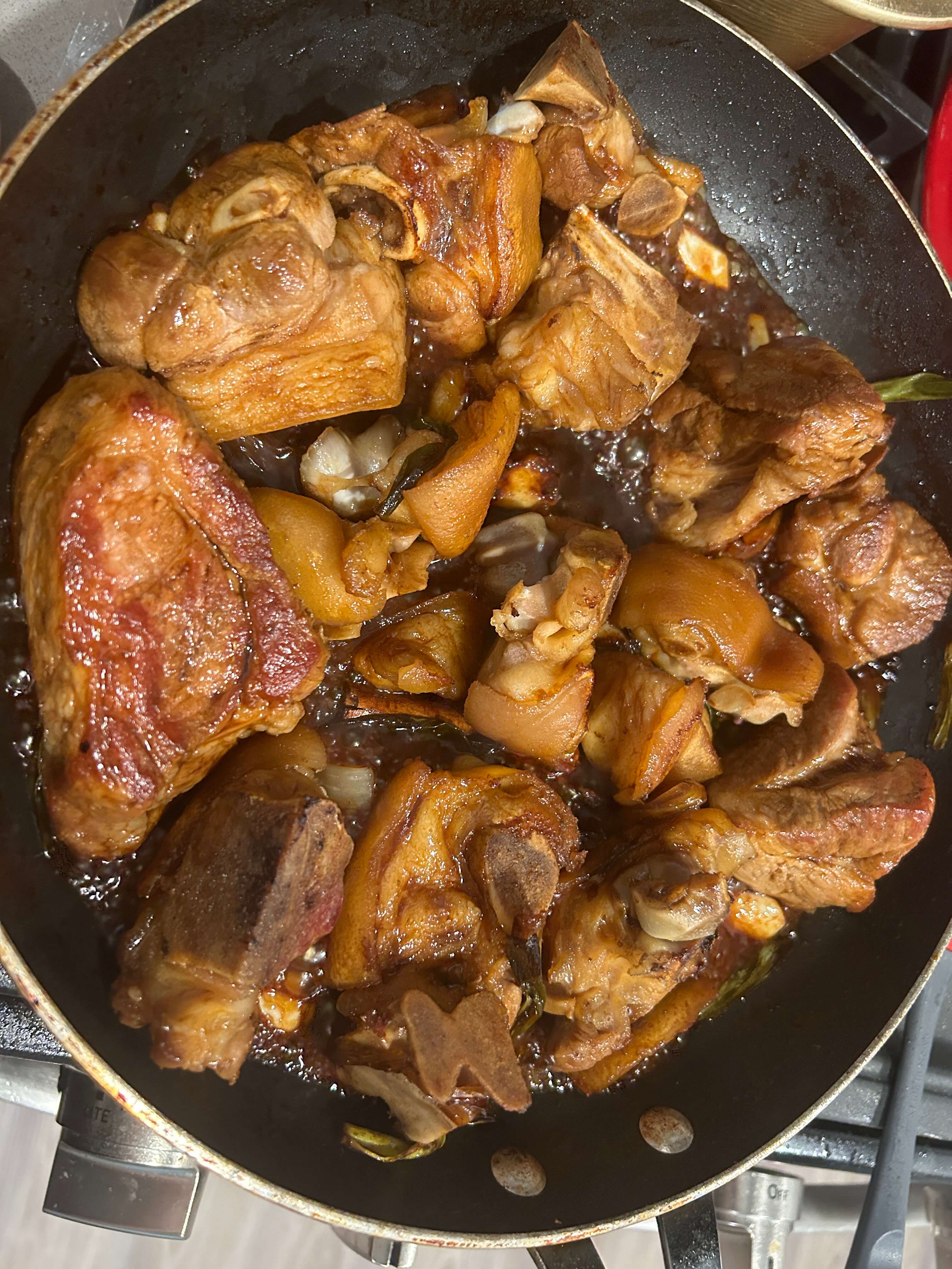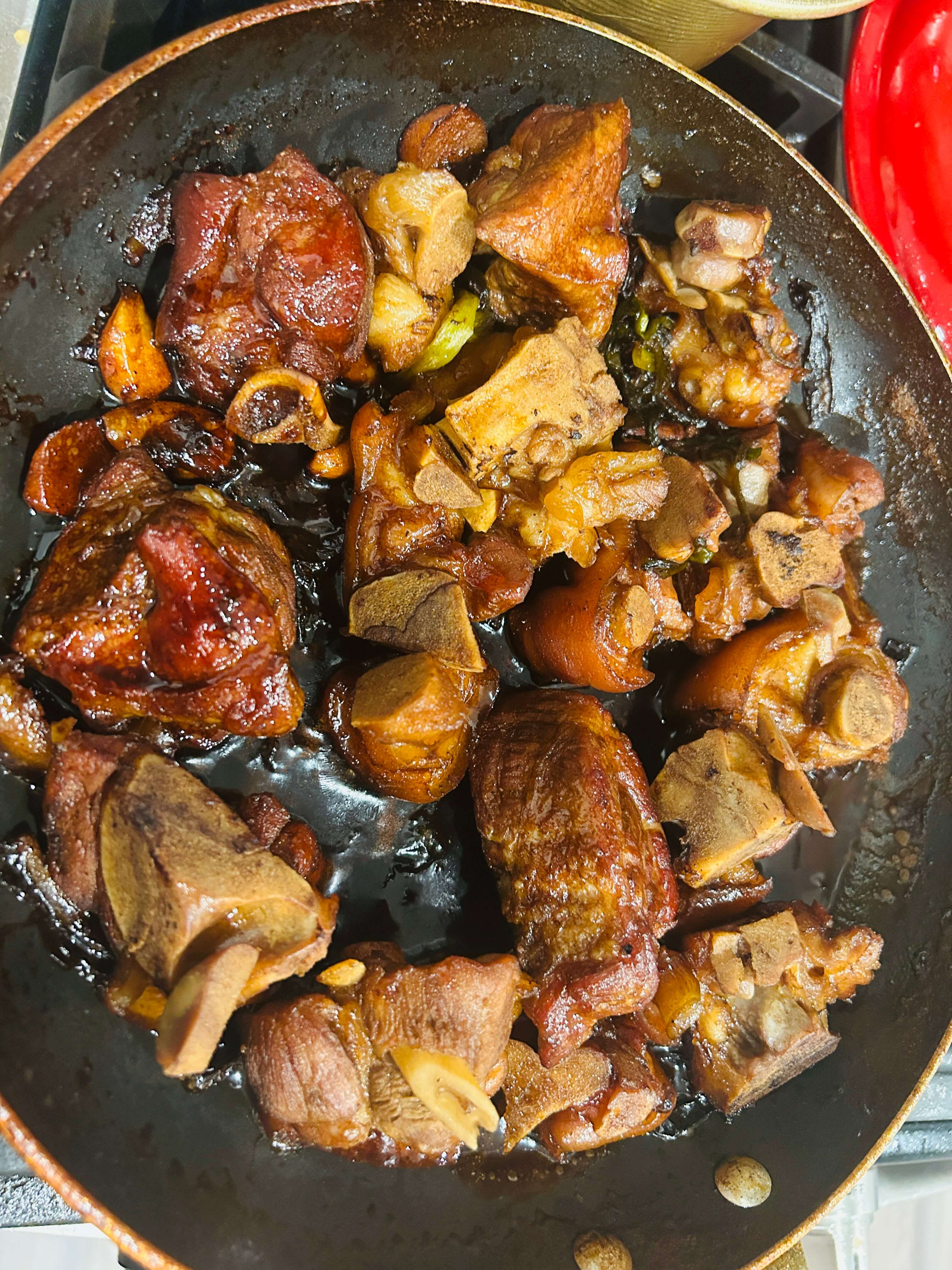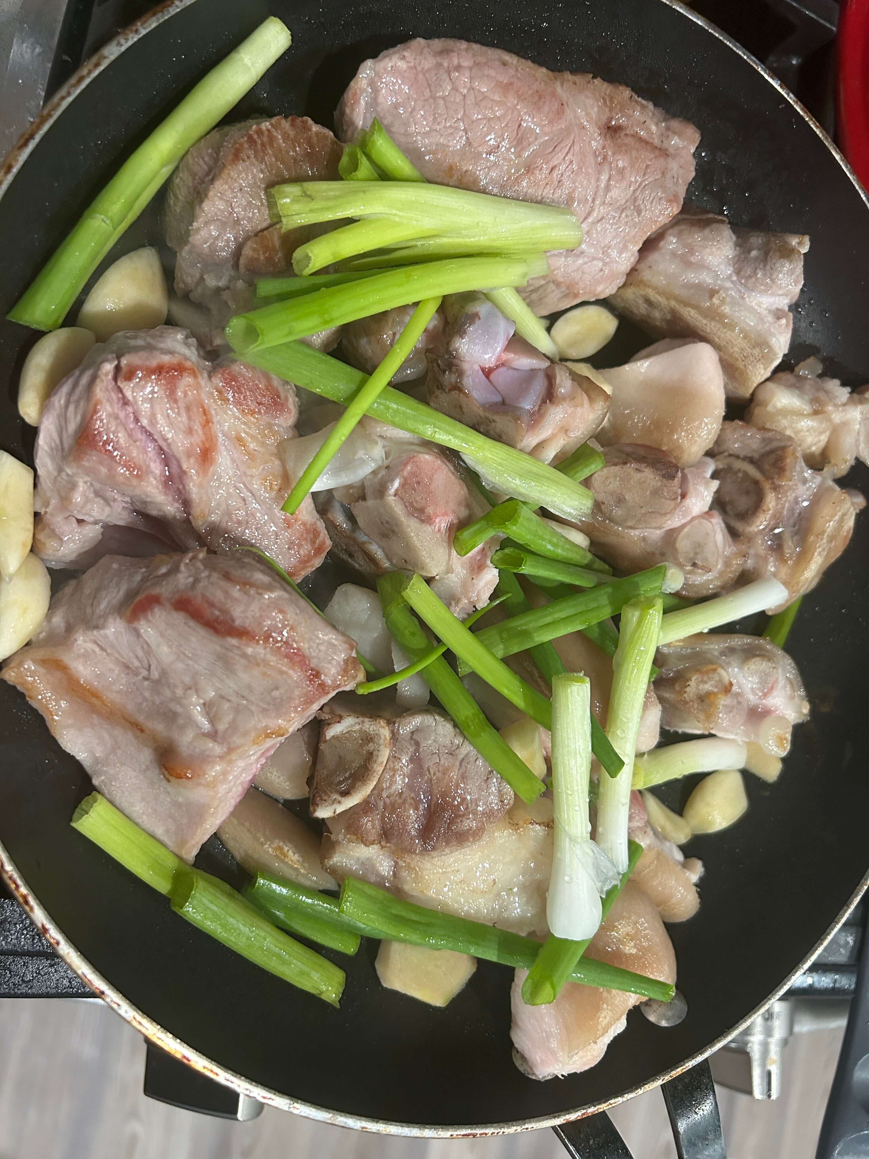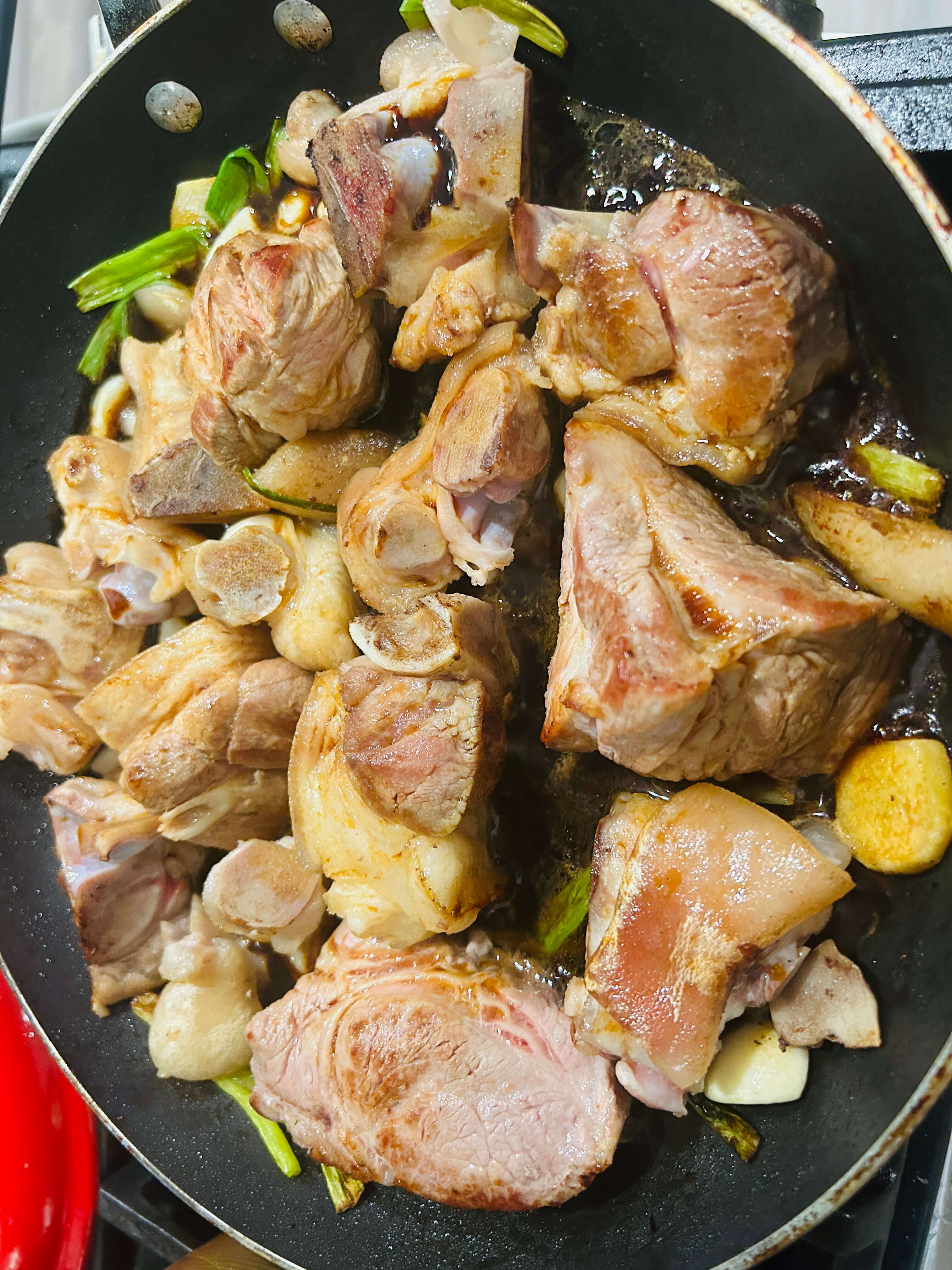 3. 프라이팬에 기름을 두르고 돼지족을 넣어줍니다.