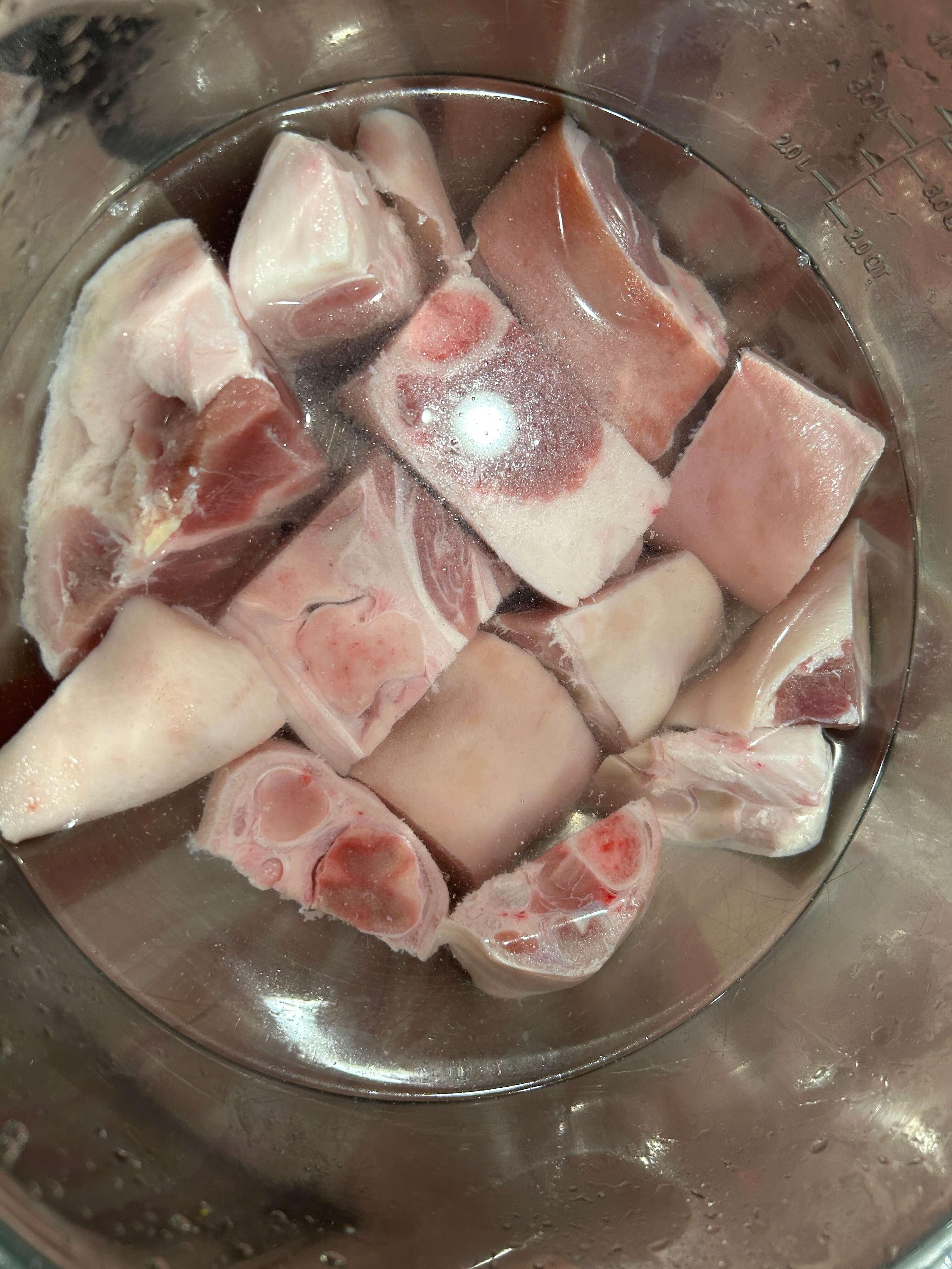 1. 돼지족을 찬물에 담가 핏물을 제거해 줍니다. (2시간 이상)