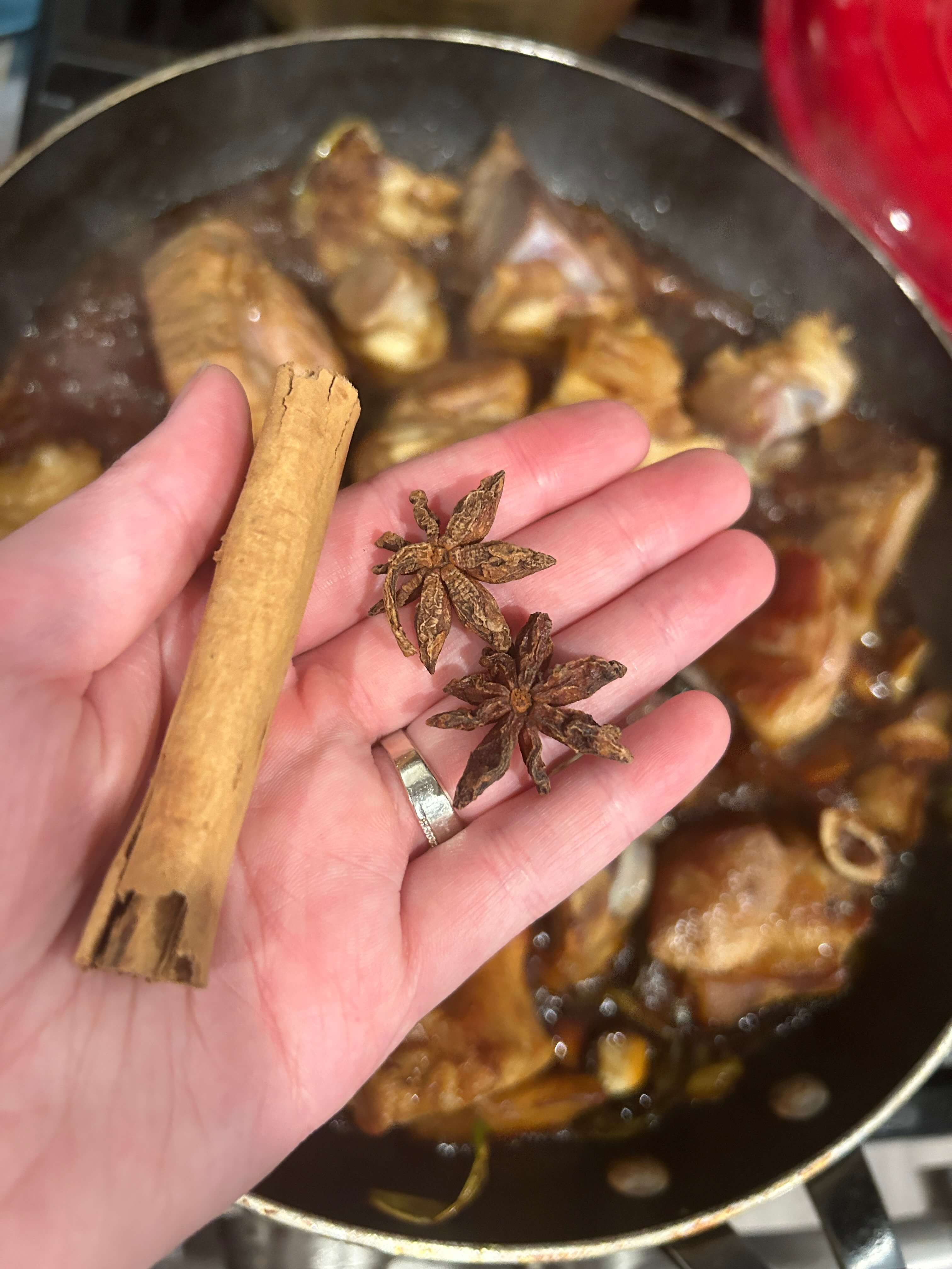 8. 팔각과 시나몬 스틱을 같이 넣고 끓여줍니다. (향이 너무 세면 중간에 빼줍니다.)
