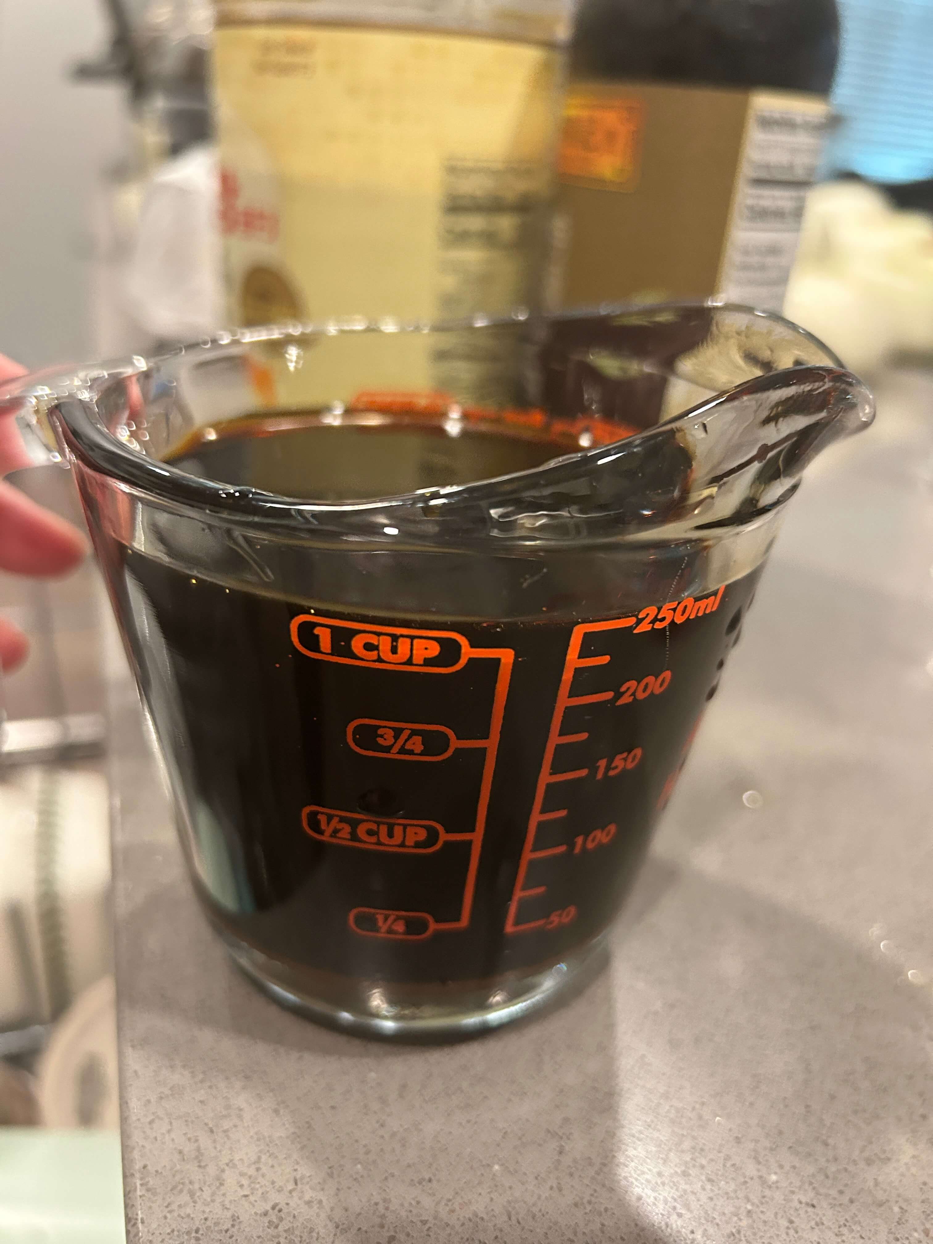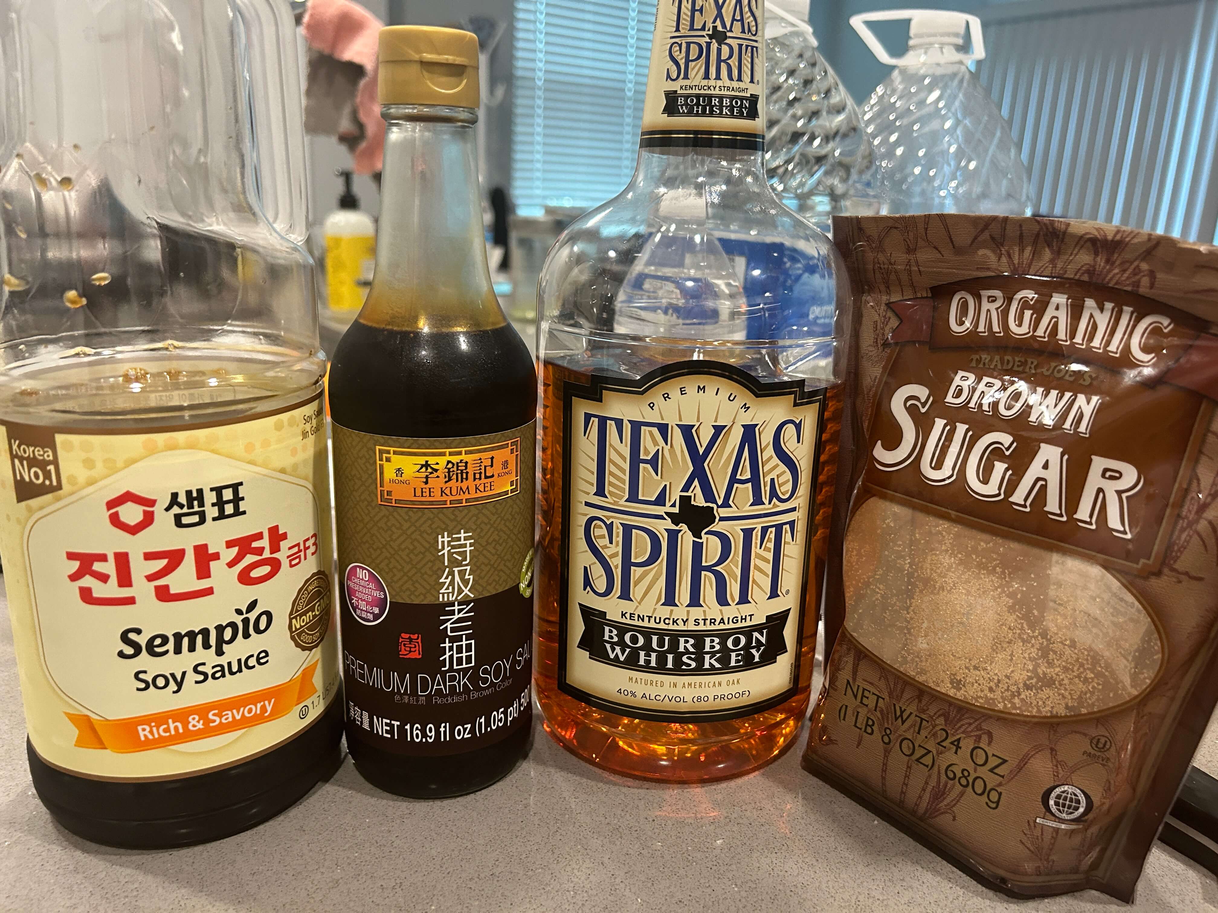 6. 진간장 1컵, 노두유(노추) 1/3컵, 흑설탕 1/2컵, 맛술 1/3컵을 준비합니다.