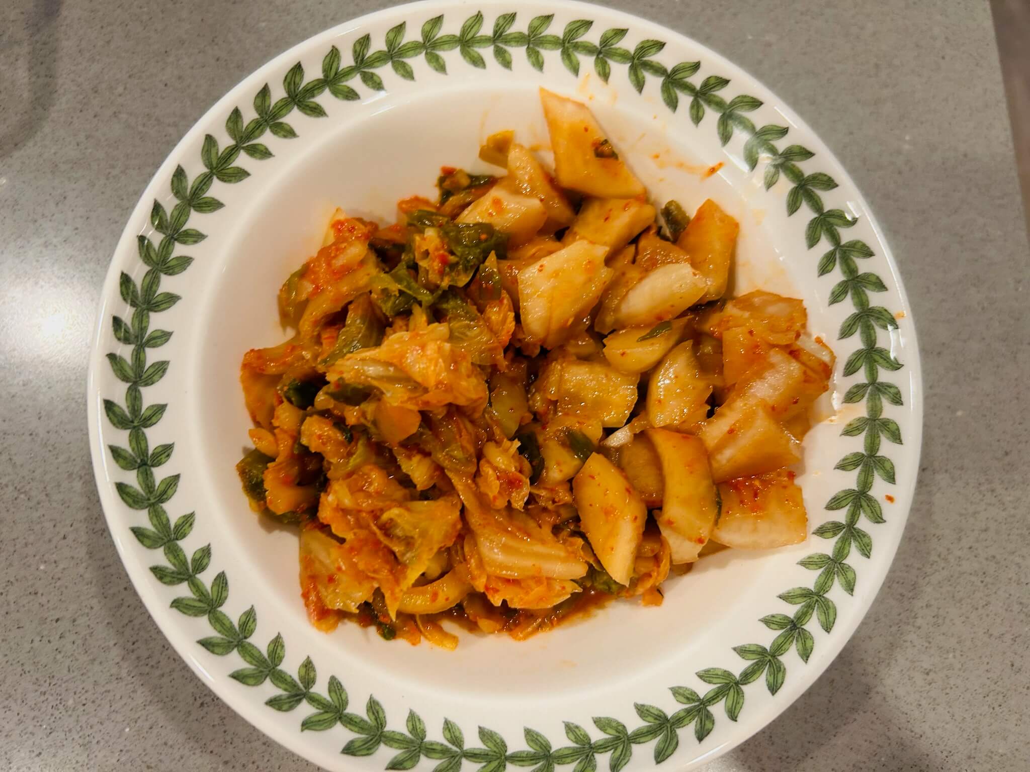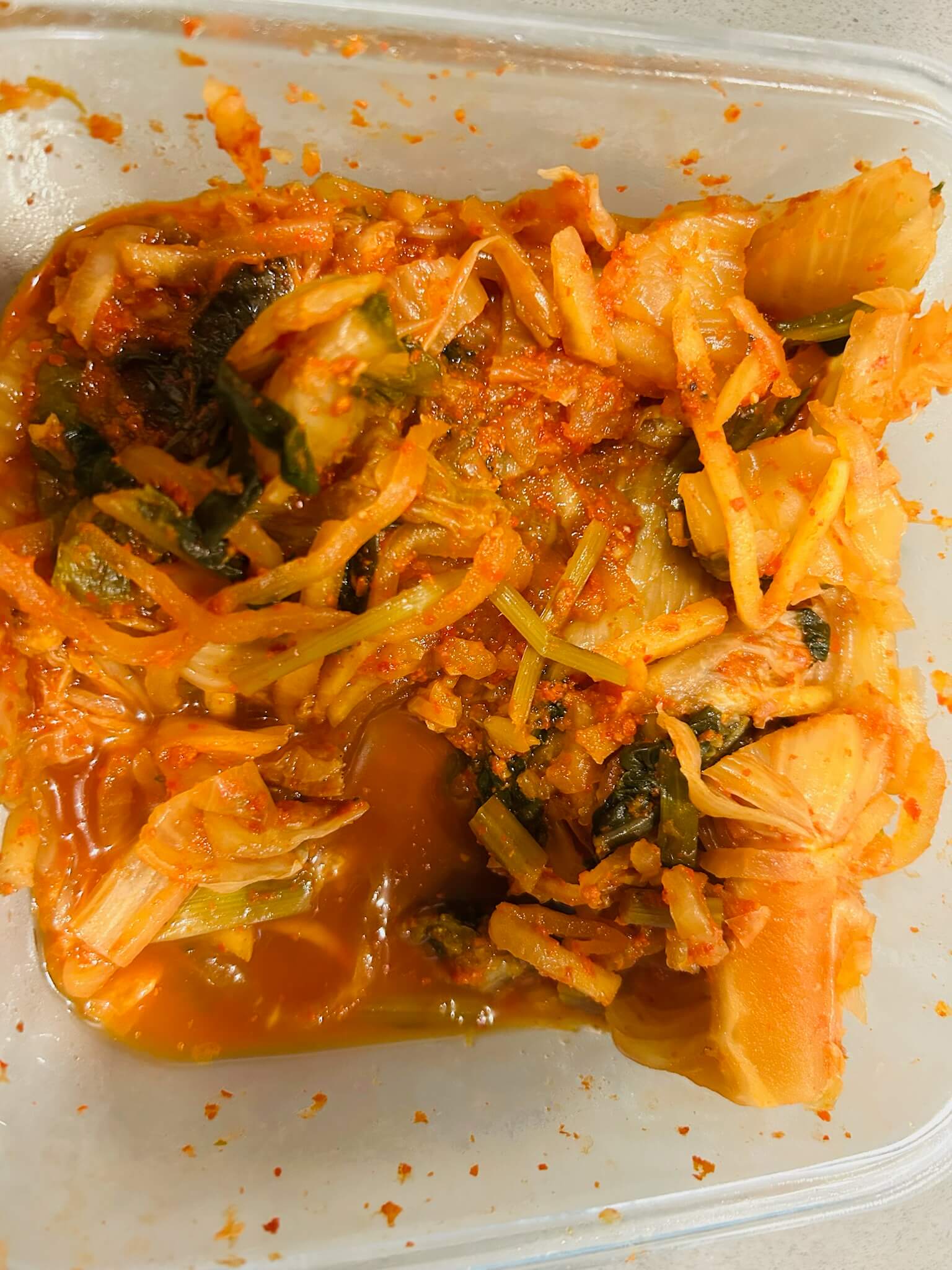 3. 무김치가 있으시면 무김치도 추가로 같이 작게 썰어줍니다.