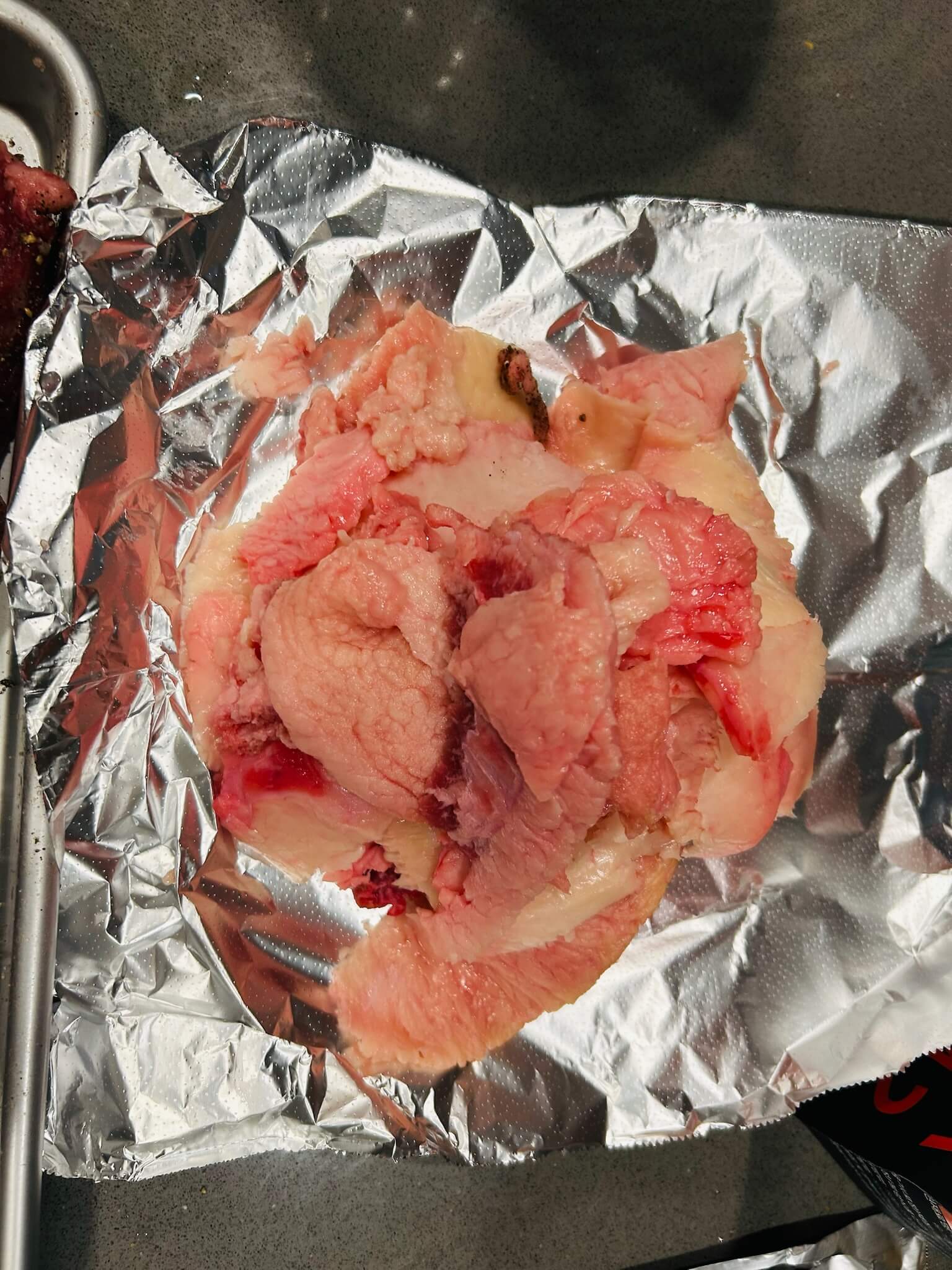 5. 손질된 지방 일부도 버리지 말고 호일로 감싸 냉장보관해 줍니다.