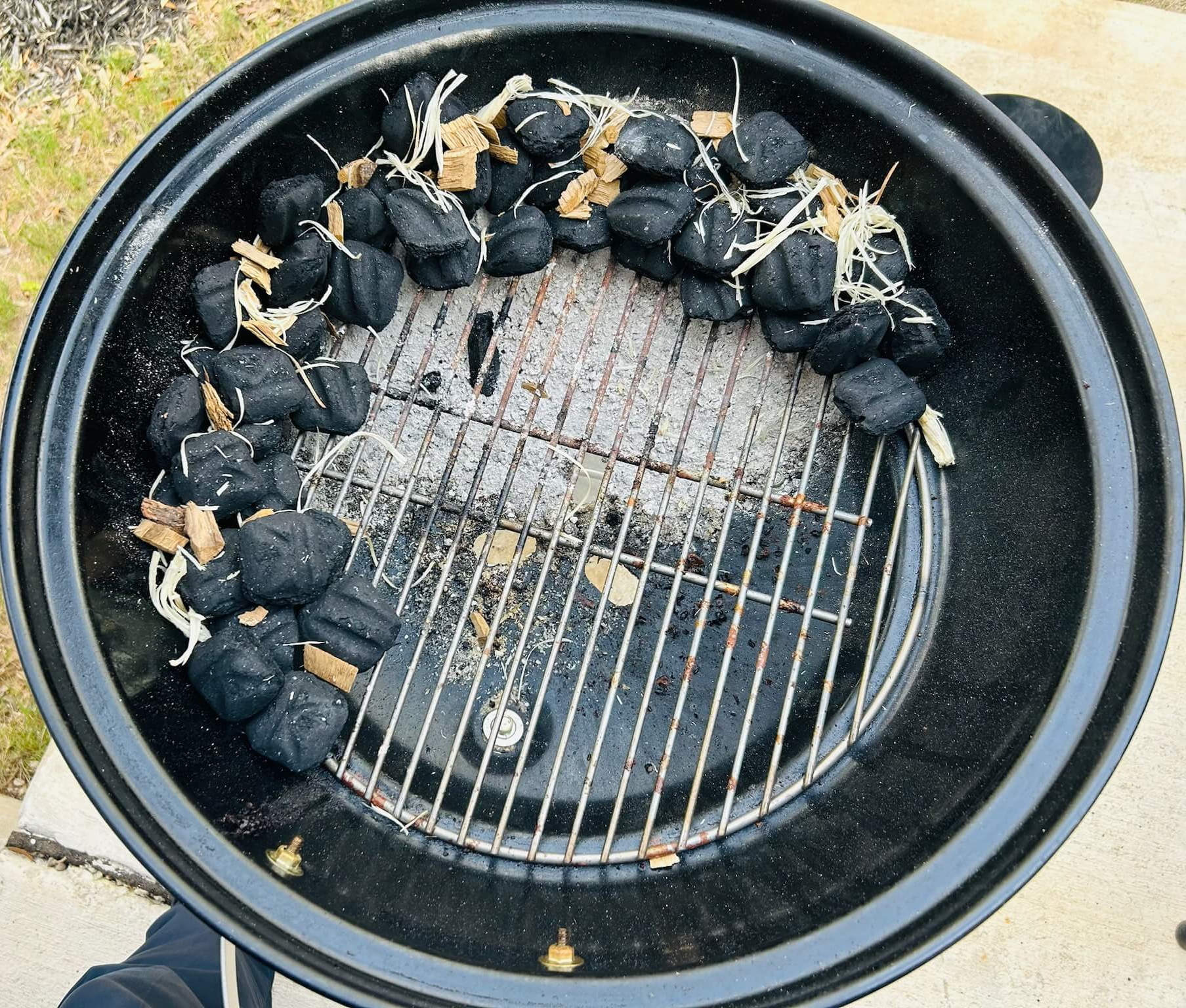 7. 그릴에 차콜과 우드칩을 사이드로 깔아줍니다.