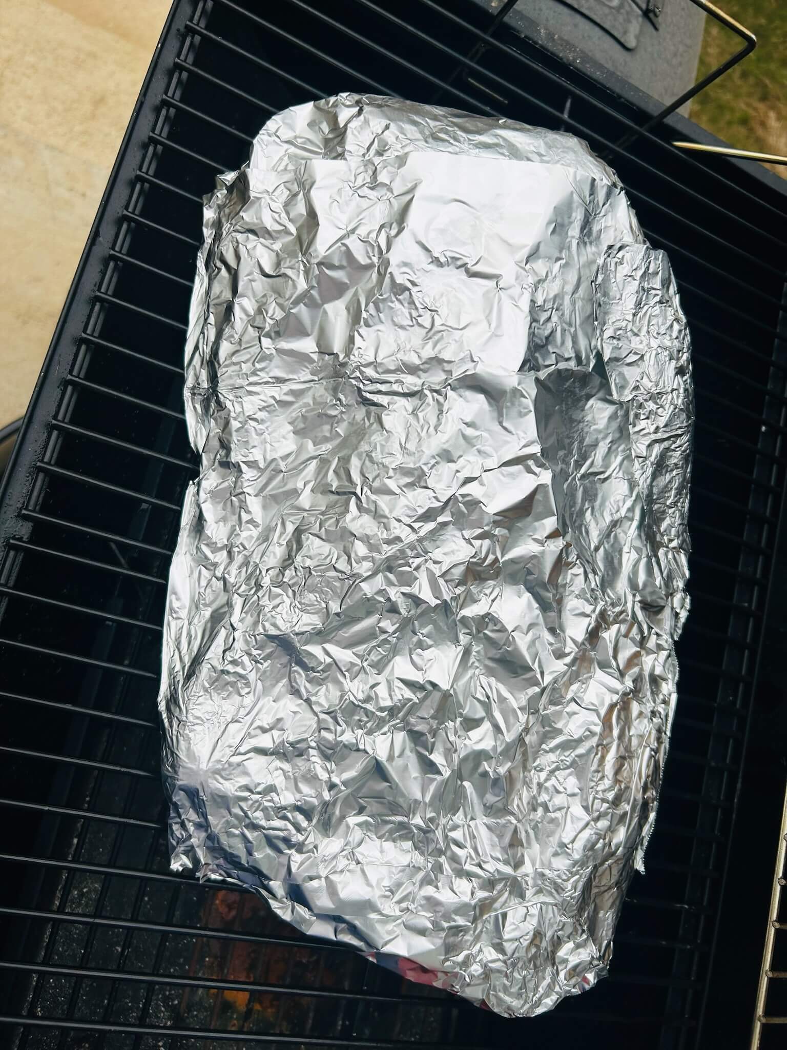 9. 시즈닝 한 고기와 지방 모아둔 은박지를 그릴 위에 올려줍니다.