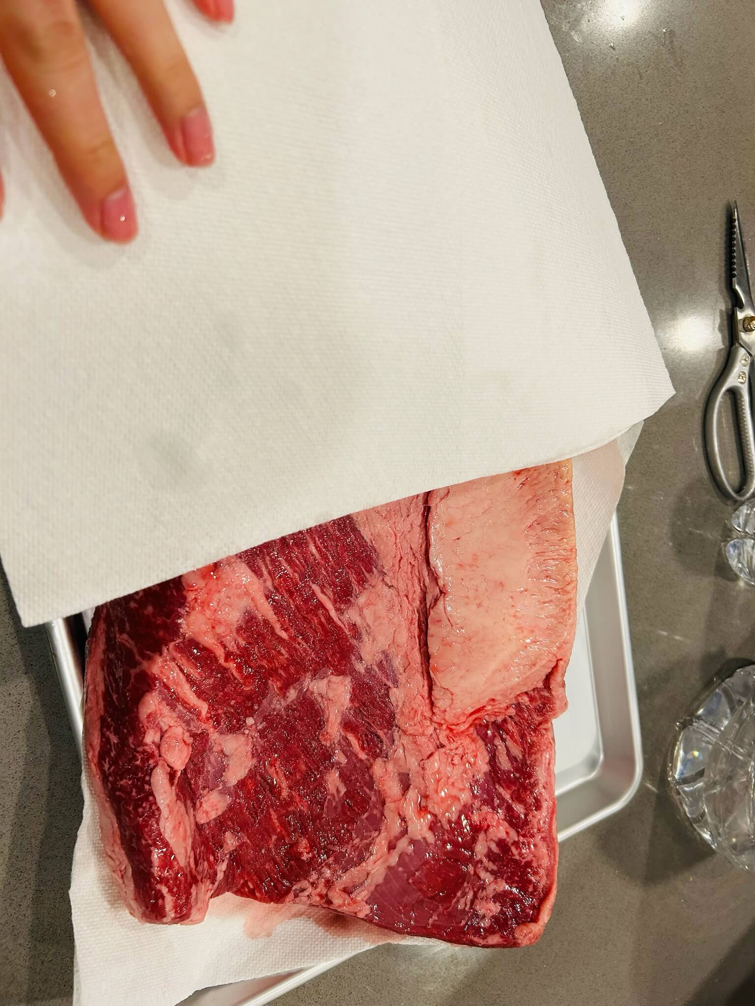 1. 고기는 핏물을 키친타월로 제거하고 지방을 손질해 줍니다.