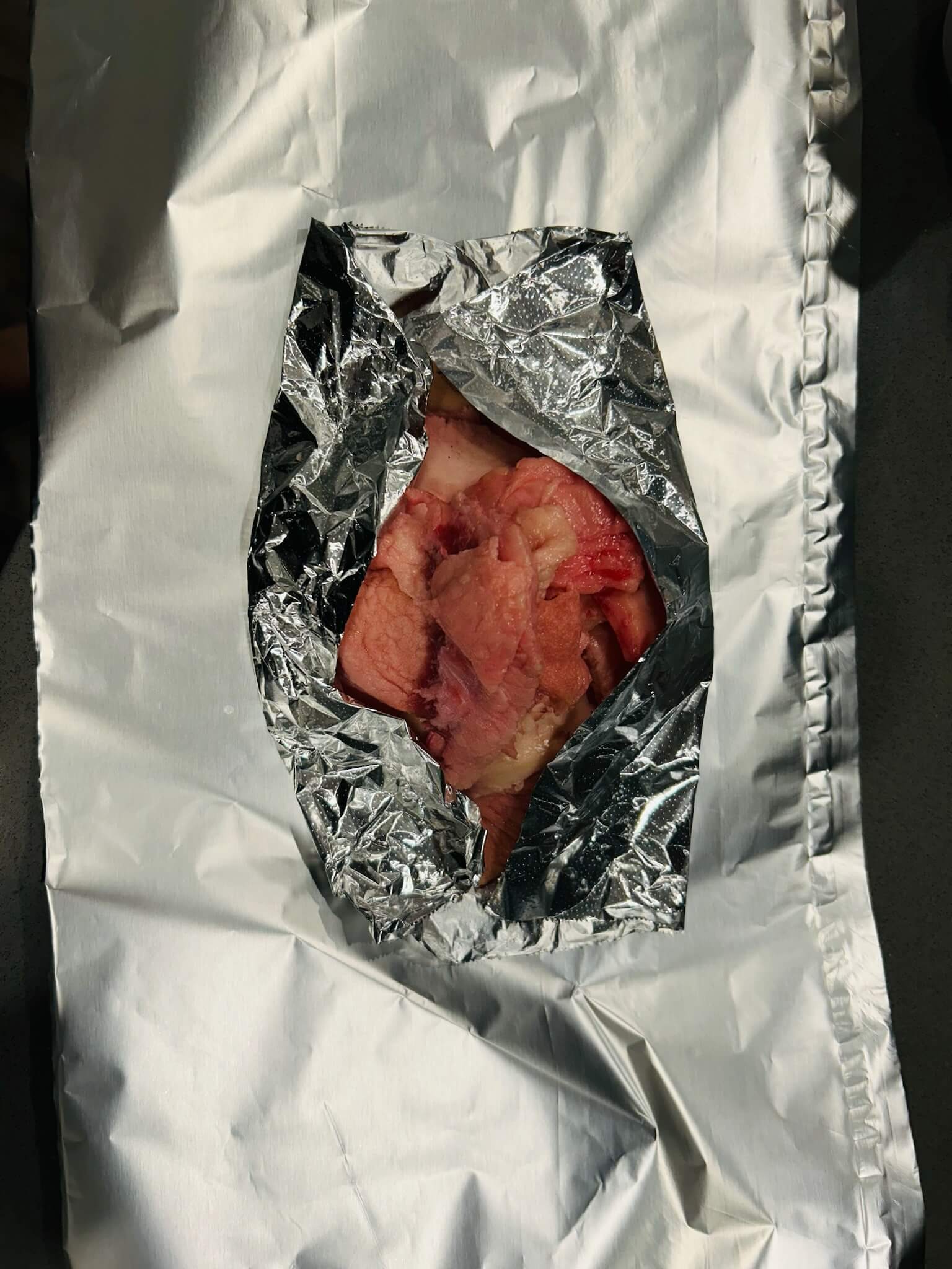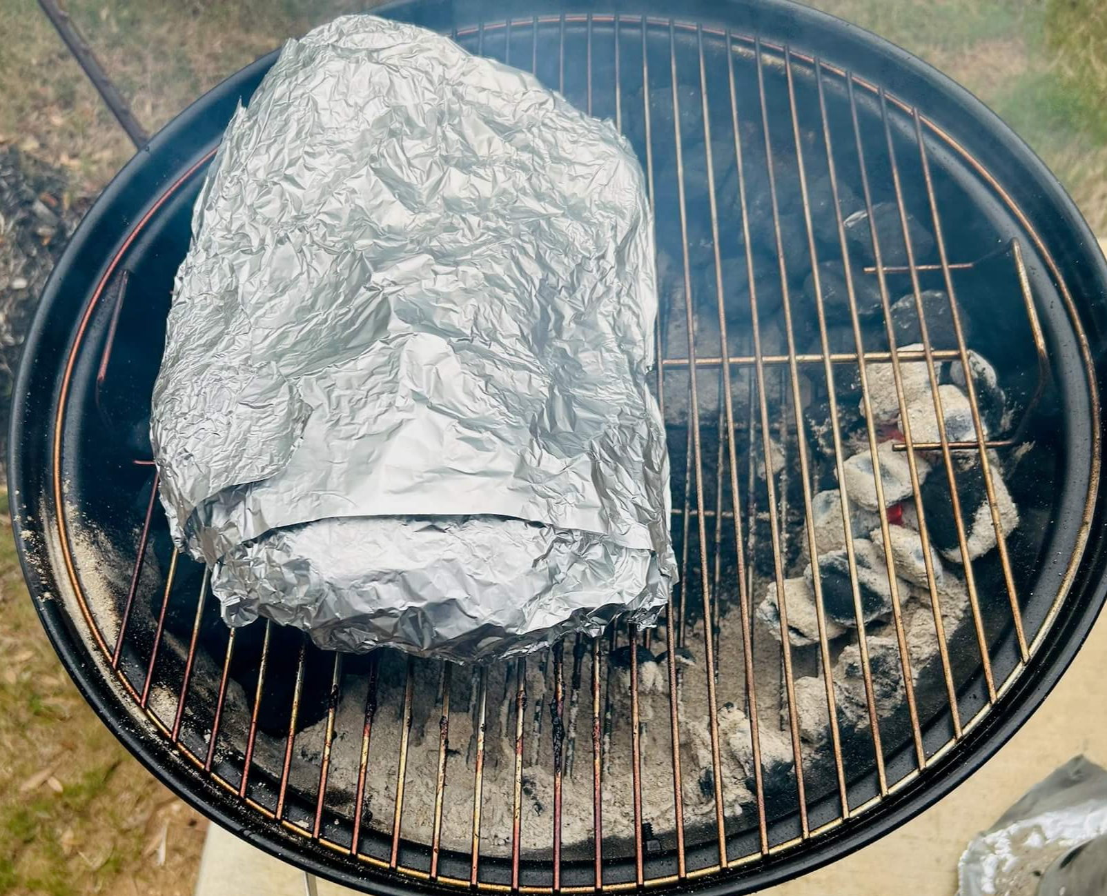 12. 12시간 뒤에 고기 빛갈이 검붉은 색을 띠면 (심부온도 75도~80도) 포일을 준비해 줍니다.