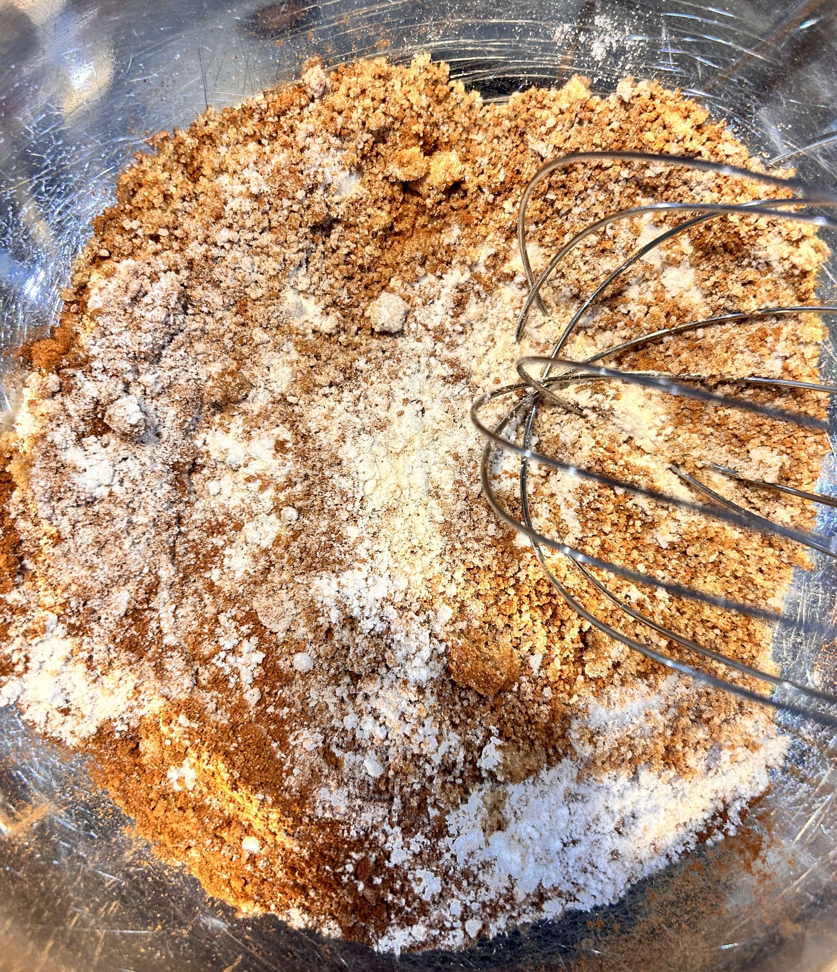 1. 볼에 all purpose flour 50g, brown sugar 40g, cinamon powder 5g을 넣어줍니다.