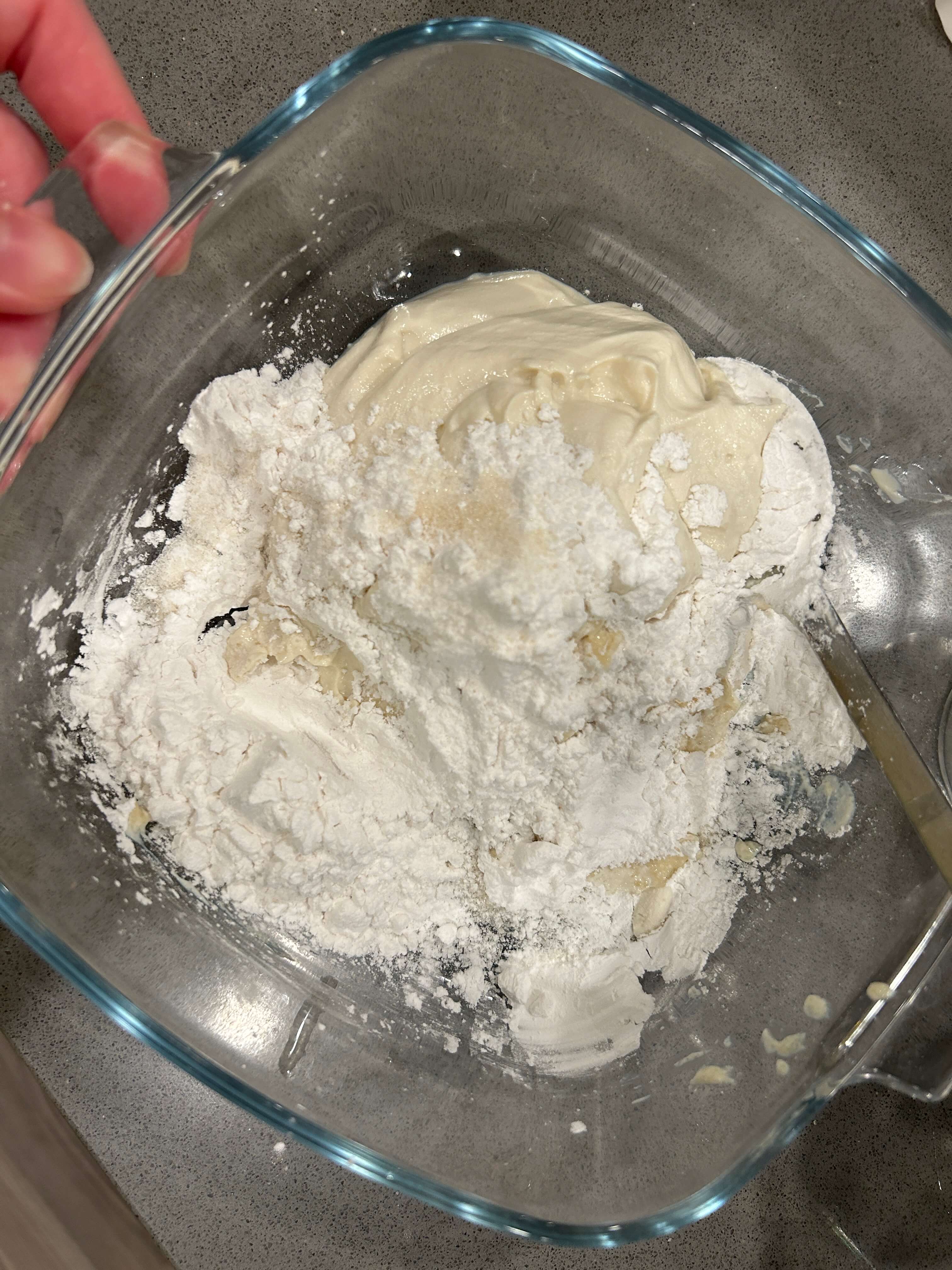 5. 티피오카전분 6 숟갈을 넣어 잘 섞어줍니다.