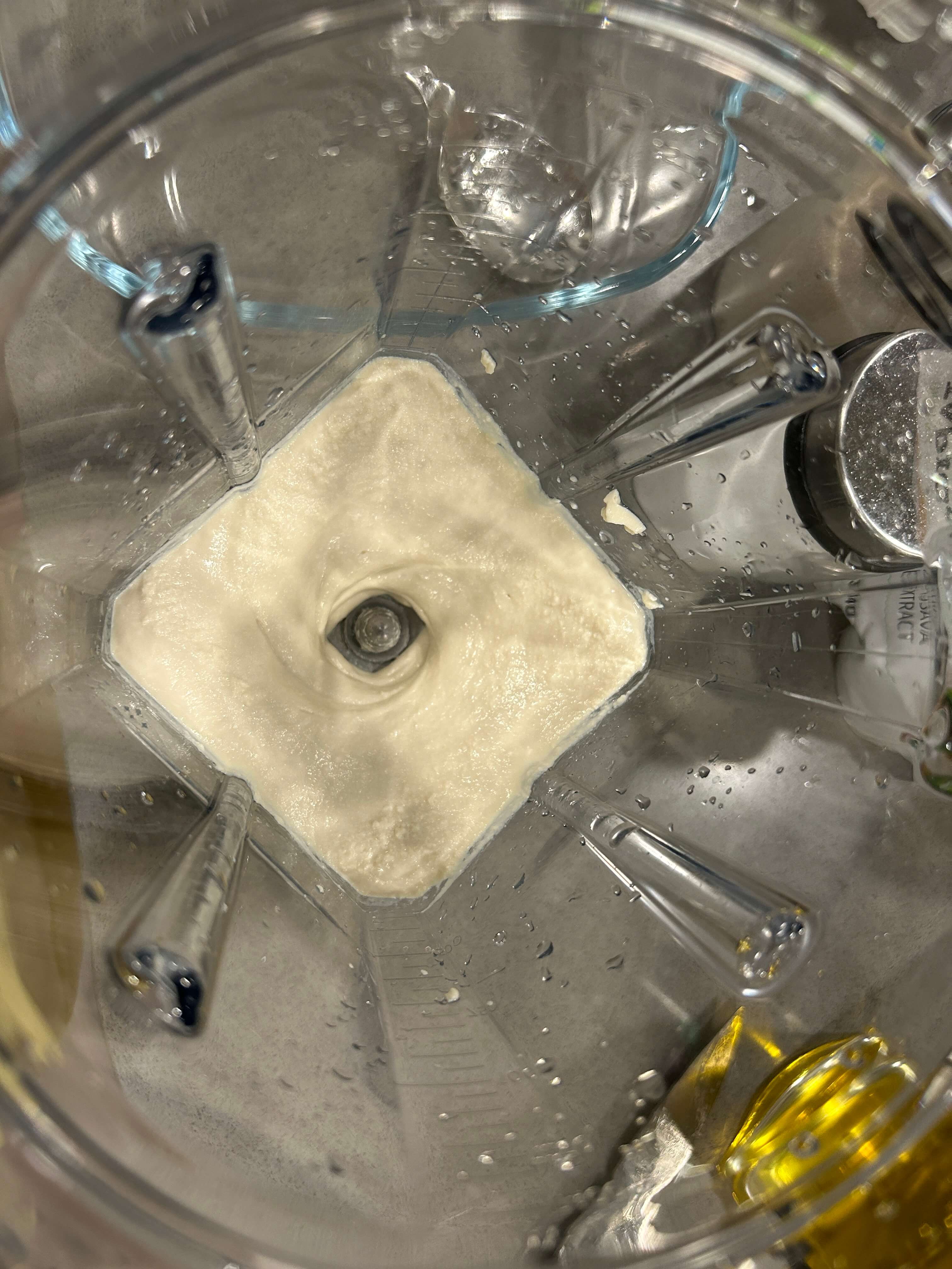 2. 믹서기에 두부반모, 소금 한 꼬집, 올리브유를 2 숟갈정도 넣고 곱게 갈아줍니다.