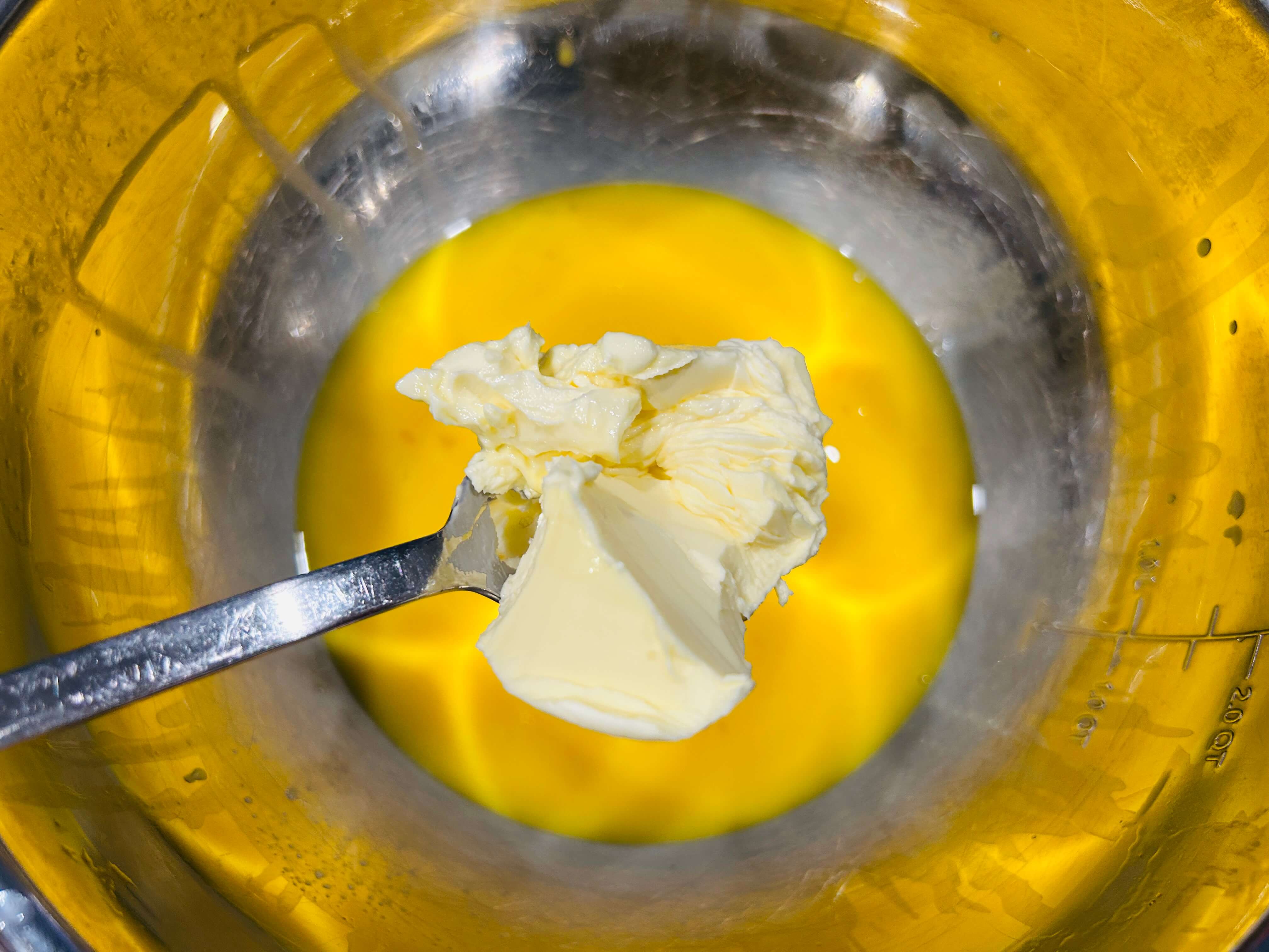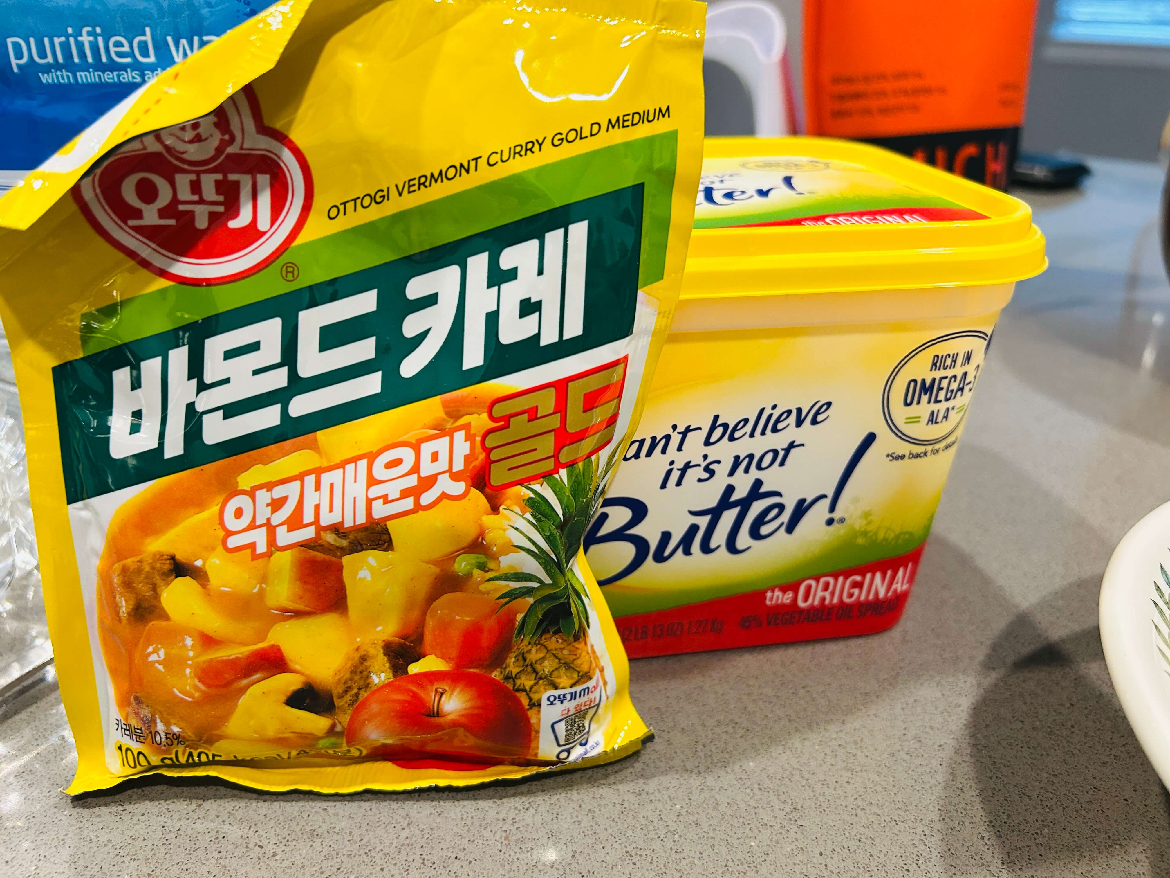 3. 버터 1숟갈, 카레가루 1 숟갈을 넣어줍니다. (버터는 계란말이를 할 때 프라이팬에 녹여가며 넣어주셔도 됩니다)