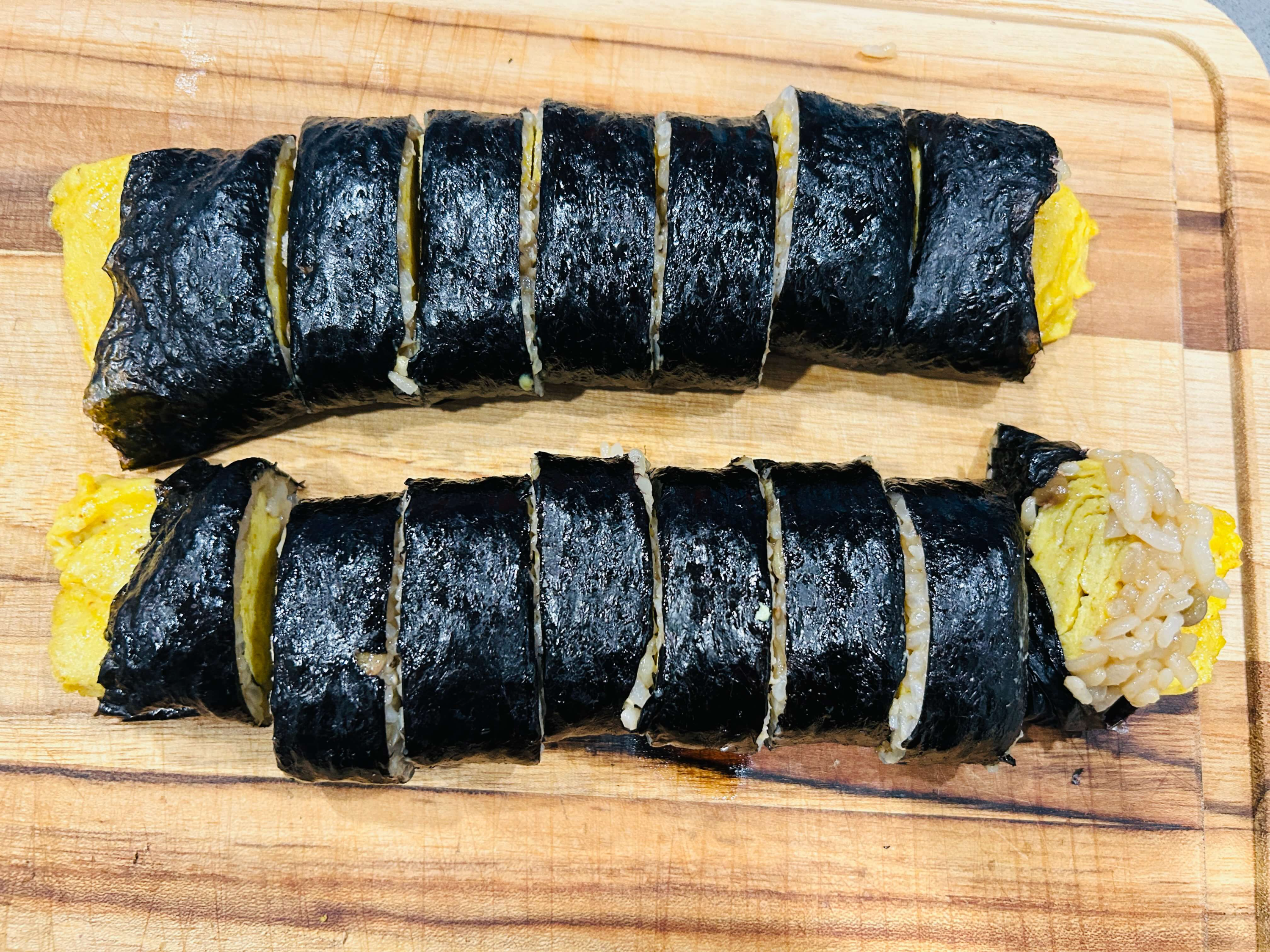 김밥은 언제 먹어도 맛있는 음식이라는 생각이 듭니다. 어렸을 적 학교에 가기 전, 부모님께서 조미김에 따뜻한 밥을 넣어 뚝딱 싸서 입에 넣어주시던 기억, 많은 분들이 하나쯤은 가지고 계시지 않을까요? 그만큼 김밥은 재료가 간단해도 누구나 즐길 수 있는 정겨운 음식입니다. 어떤 재료를 넣어도 조화롭게 어울리고, 먹는 사람의 취향에 따라 얼마든지 다양하게 변신할 수 있다는 점에서 김밥은 정말 매력적인 메뉴라 생각합니다. 최근에 안성재 셰프의 계란김밥 레시피를 보고, 재료도 간단하고 누구나 좋아할 만한 계란이 주재료라는 점에서 호기심이 생겨 만들어보게 되었습니다. 실제로 만들어보니, 이 김밥의 핵심은 바로 계란에 카레가루를 넣는 것, 그리고 밥에 버터와 간장, 참기름을 섞어 감칠맛을 더한 부분이 아닌가 싶습니다. 마치 간장계란밥을 김에말아먹는듯한 친숙한 느낌도 들면서, 동시에 계란 속 은은하게 배어 있는 카레향이 입안에서 살짝살짝 퍼지는 맛이 굉장히 인상적이었습니다. 전혀 부담스럽지 않게 느껴지며, 익숙하지만 또 새로운 맛이었습니다. 김밥 속 재료가 단출하다 보니, 저는 시원한냉메밀과함께 곁들여 한 끼로 즐겼습니다. 국수와 김밥의 조합은 언제 먹어도 실패 없는 찰떡궁합인데요, 특히 이 계란김밥처럼 담백하면서도 감칠맛이 있는 김밥은 면요리와 함께 먹었을 때 더더욱 만족스러운 조화를 이루는 것 같습니다. 아이들 간식으로도, 어른들의 간단한 식사로도 무척 잘 어울리는 메뉴입니다. 화려하지는 않지만 정갈하고 깊은 맛이 느껴지는 계란김밥, 오늘은 이렇게 간단한 재료로 색다른 매력을 담아보는 건 어떠신가요? 집에 있는 재료로도 충분히 만들 수 있고, 만들기도 간편해 부담 없이 도전하실 수 있습니다. 아래 레시피를 참고하셔서 오늘 하루도 맛있고 건강한 한 끼 되시길 바랍니다.