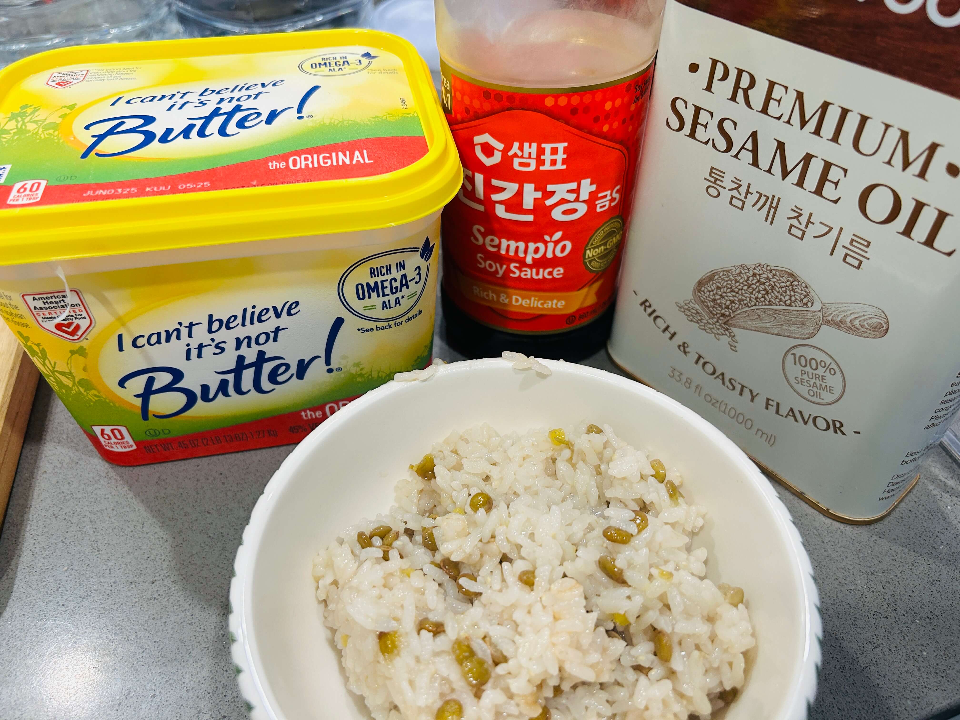 5. 밥, 버터, 간장, 참기름을 준비해 줍니다.