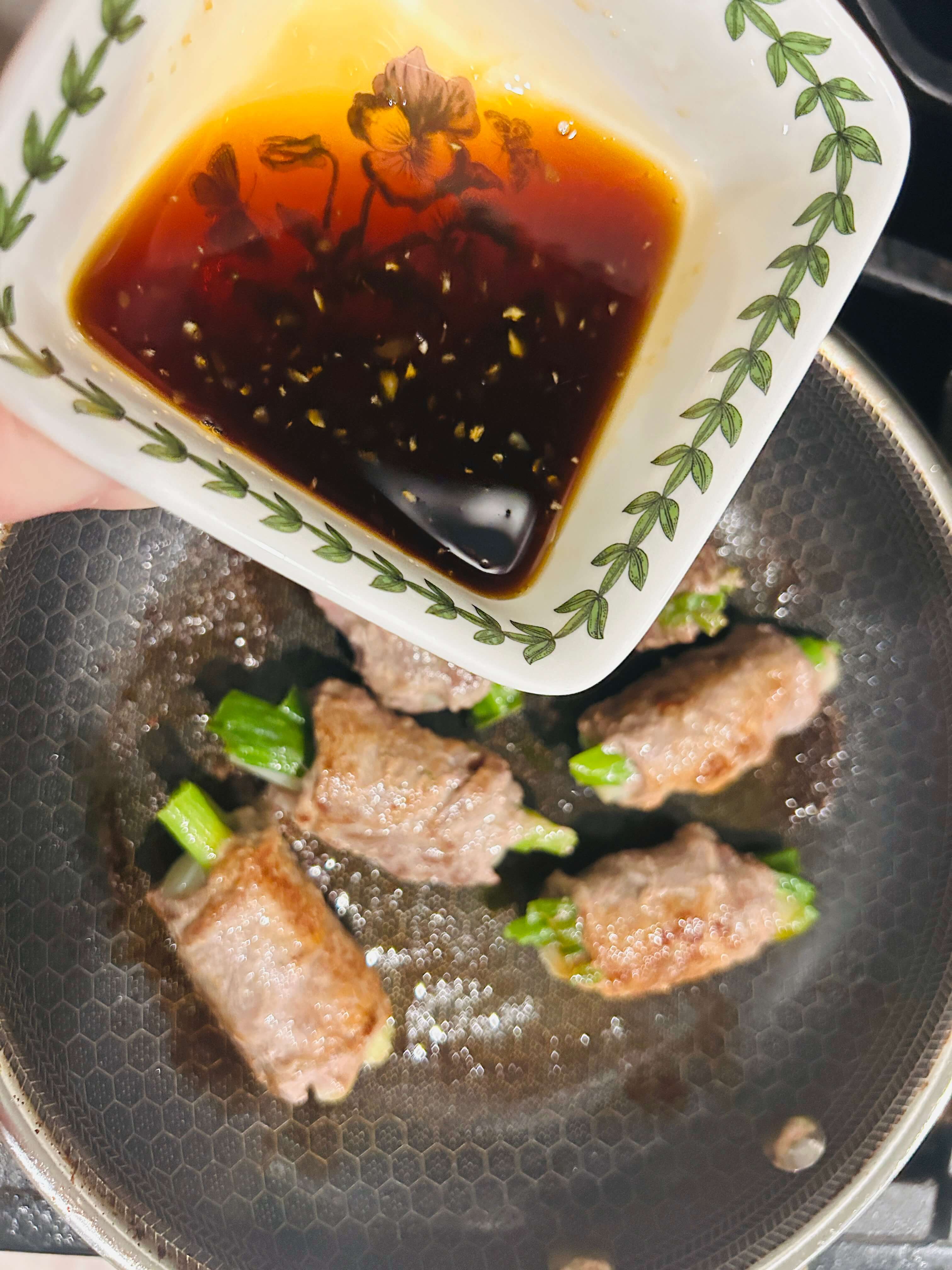 5. 팬에 기름을 두르고 고기를 노릇하게 구워줍니다.
