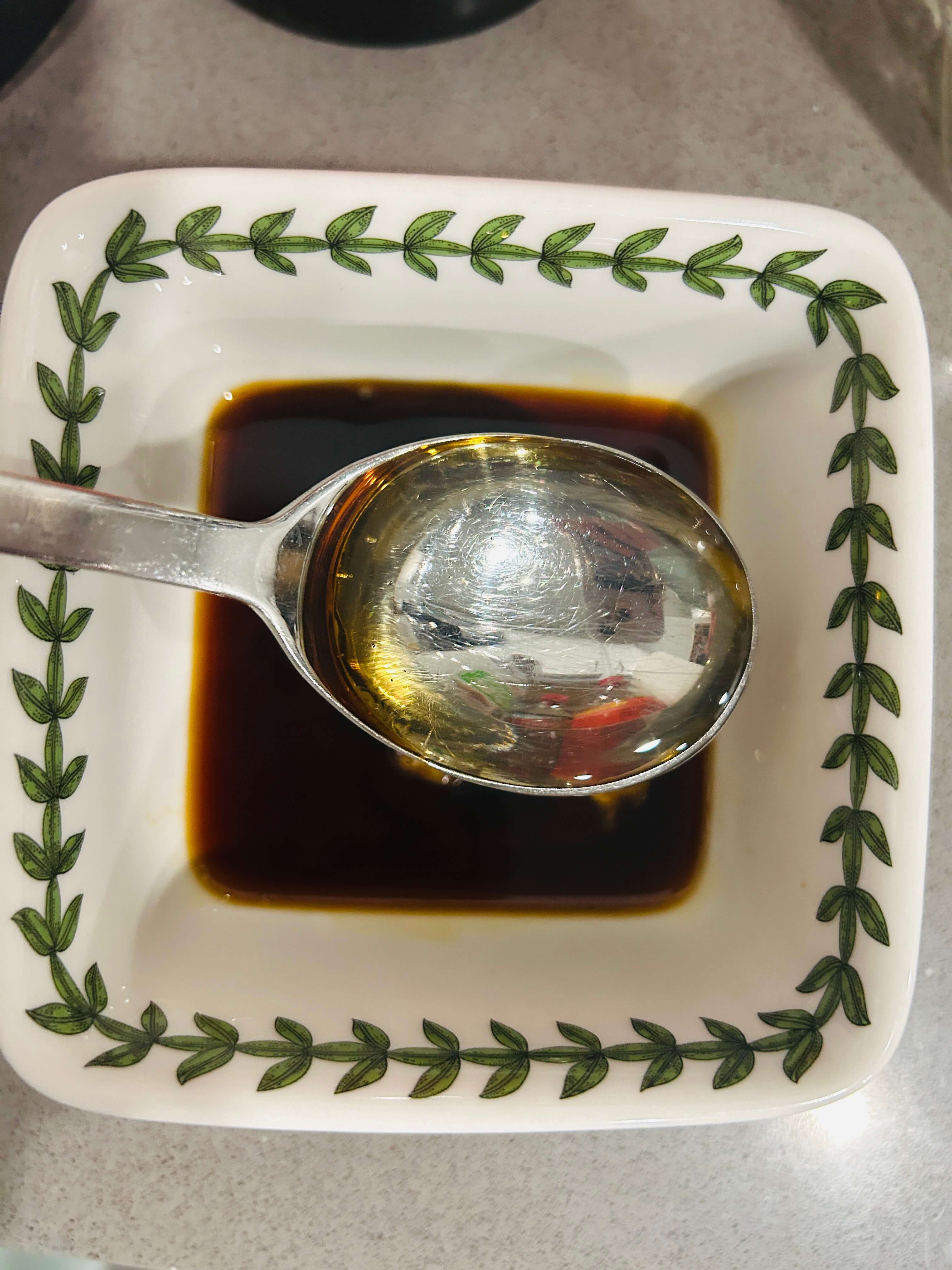 7. 간마늘 1/3 숟갈, 간장 3 숟갈, 폰즈 1 숟갈, 올리고당 1 숟갈, 알룰로스 1 숟갈을 넣어 잘 섞어 소스를 준비해 줍니다.