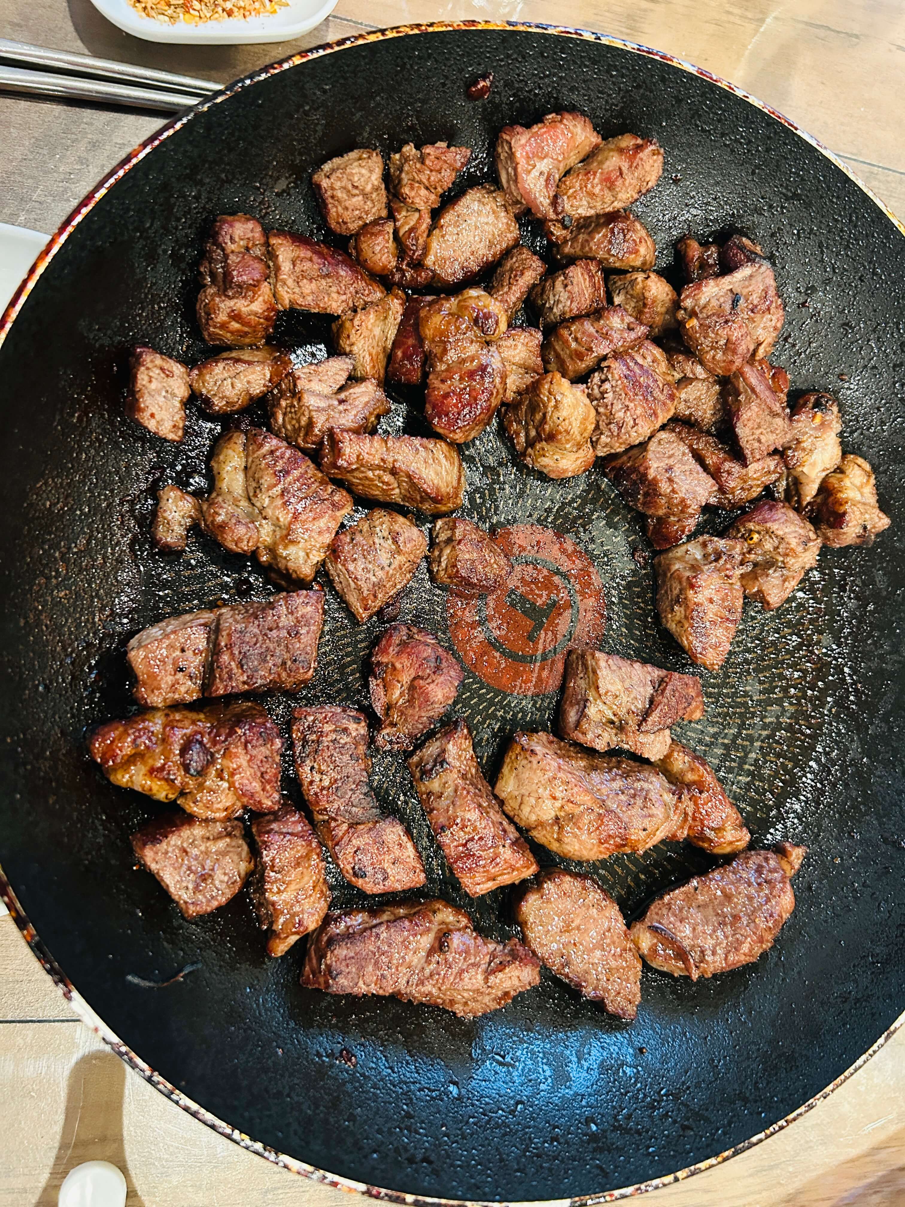 10. 숙성된 양고기를 프라이팬에 올려 구워줍니다.