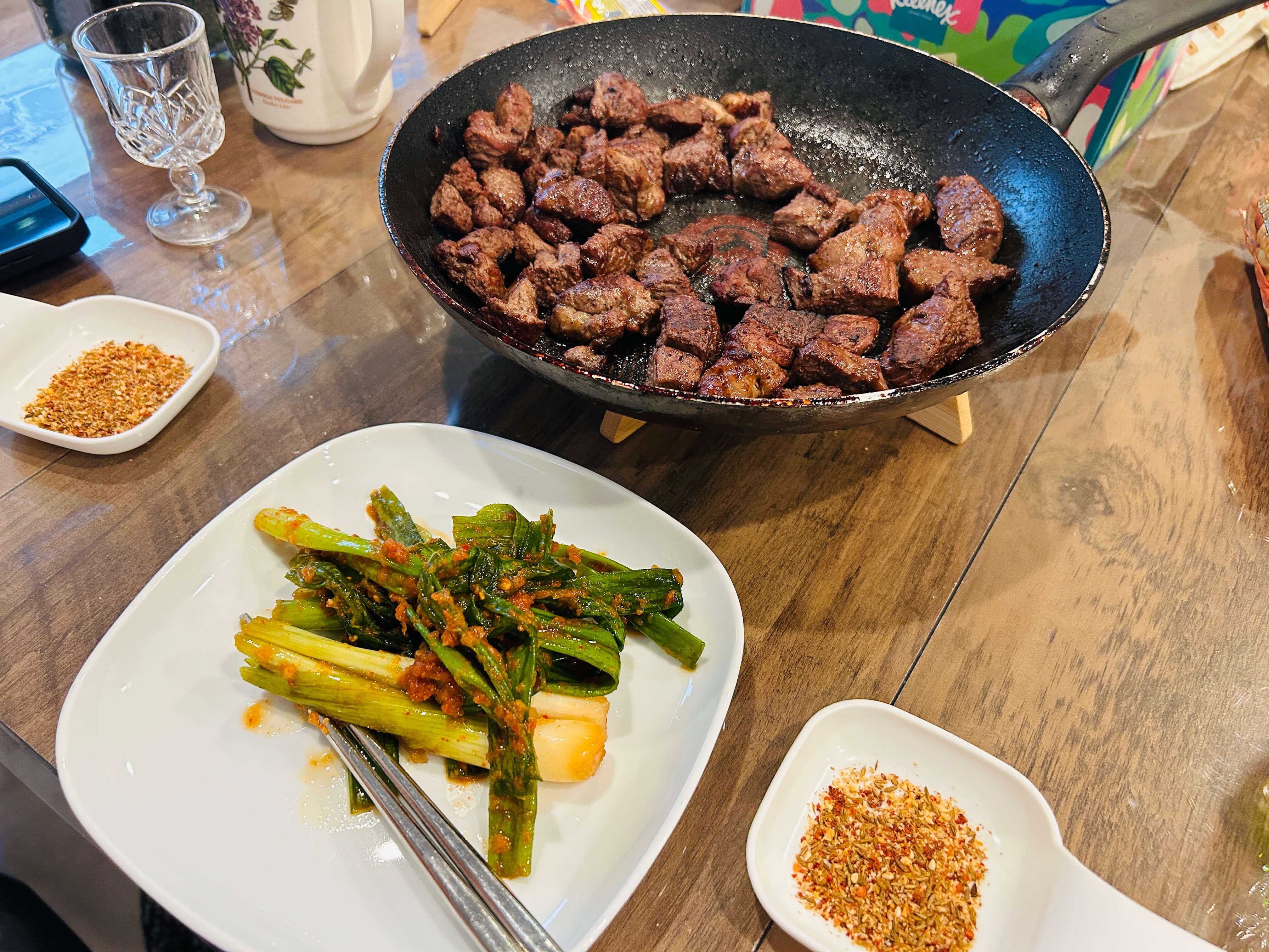 한국이었음 직접 양고기를 사서 먹는 일을 없을 텐데 미국에 있는지라 한국에서 먹던 양고기 맛이 그리워 한번 사서 진행해 보았습니다. 미국 마트에 흔히 볼 수 있고, 생각보다 많은 사람들이 양고기를 장바구니에 담아가는 것을 볼 수 있습니다. 그거보고 저도 한번 용기내어 집에서 만들어 먹어보았습니다. 저는 양고기 구이가 너무 먹고싶어서 이렇게 구이용으로만 진행해 보았습니다. 잡내 잡힌 양고기로 다른 여러 요리 시도해 보시는 것도 좋을 것 같습니다.