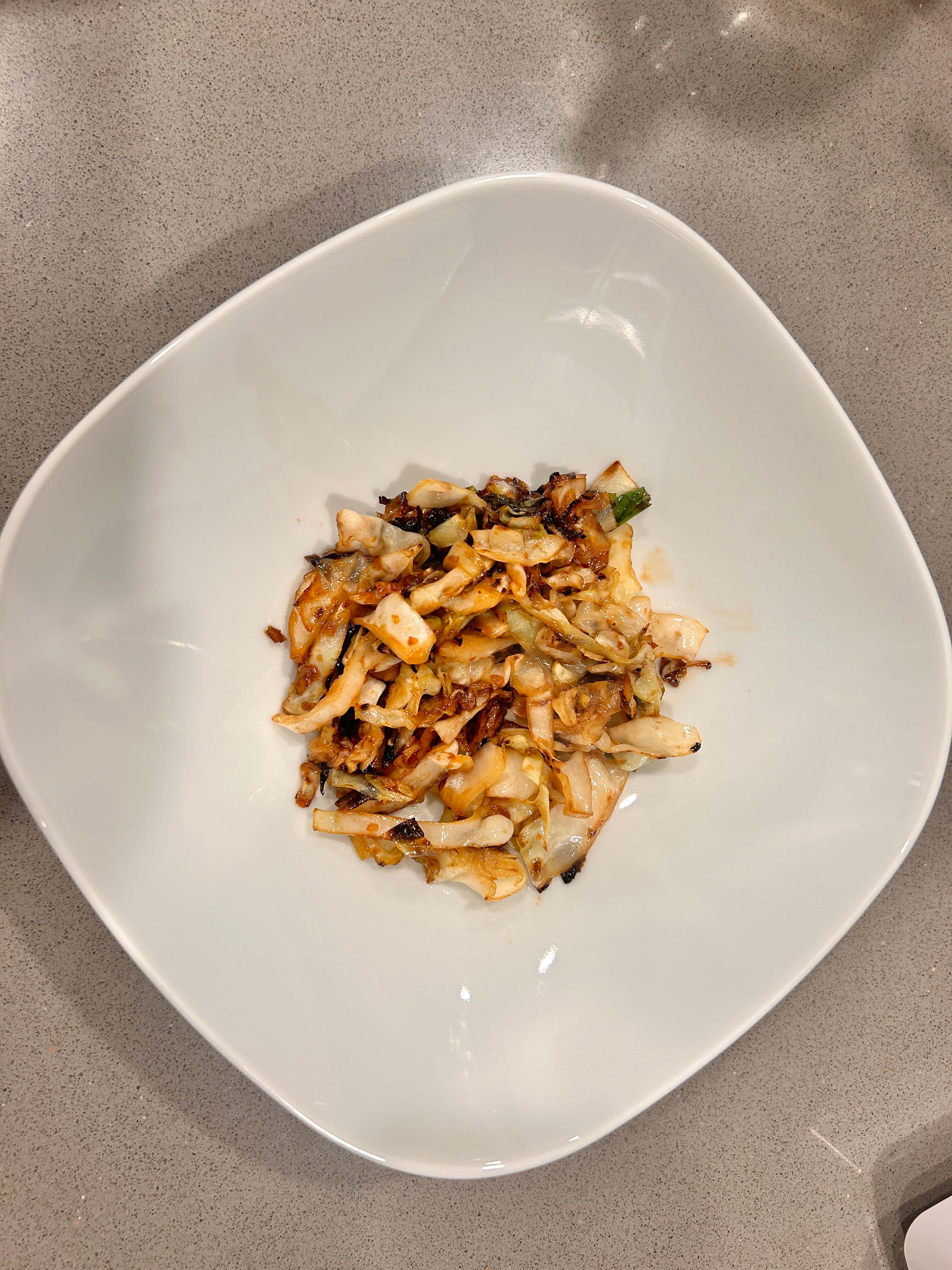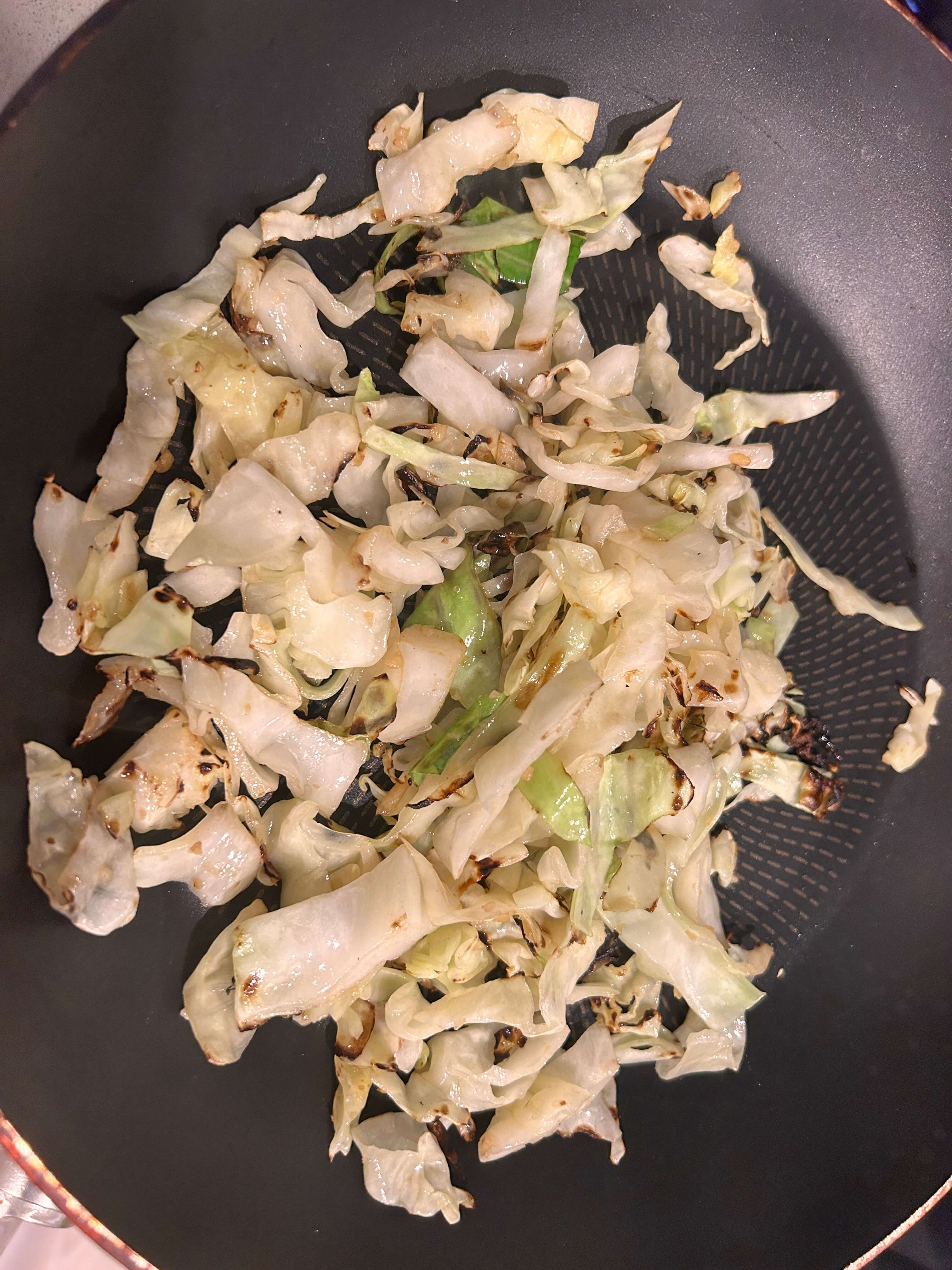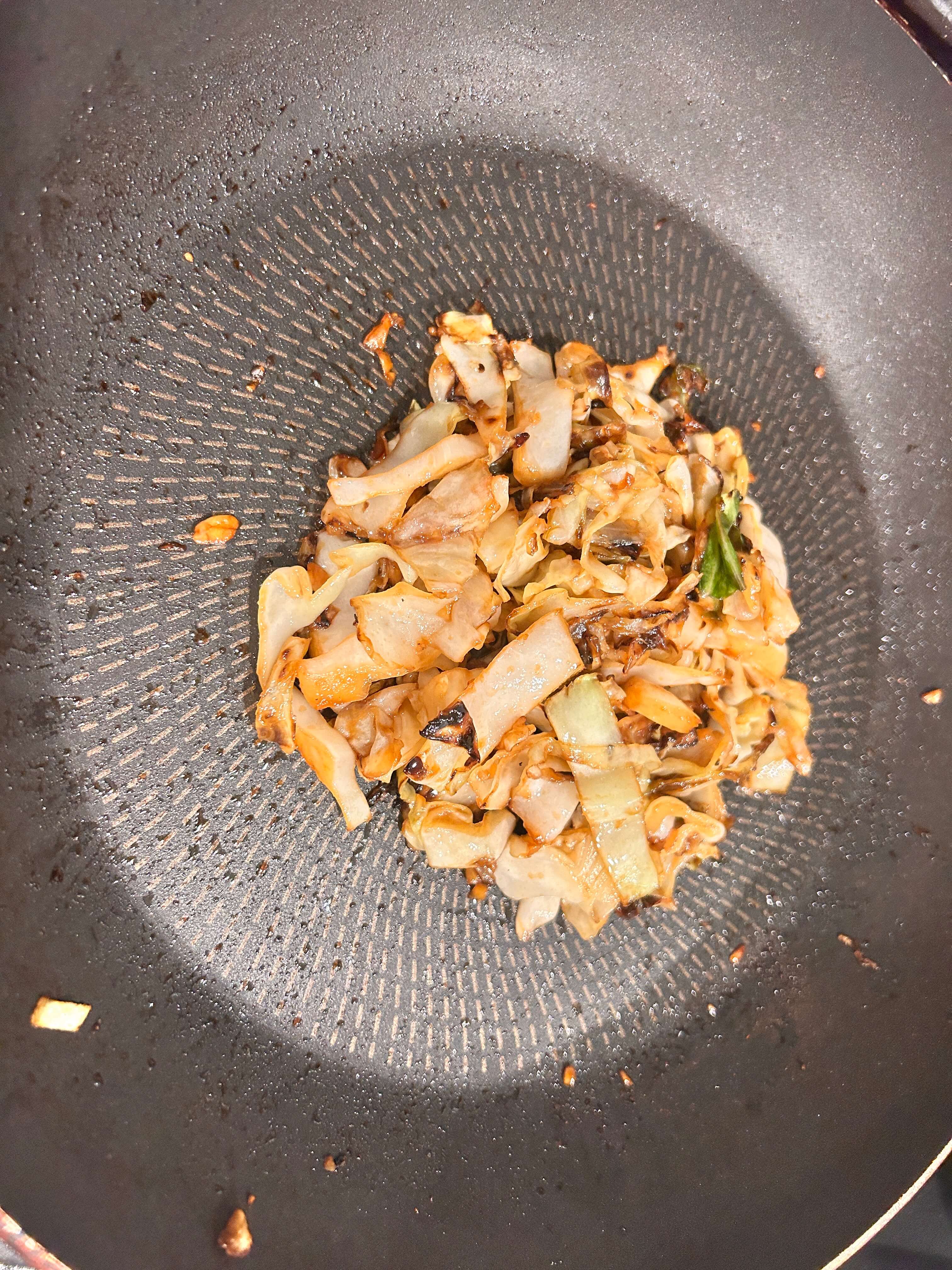 6. 볶은 양배추를 그릇에 담아줍니다.