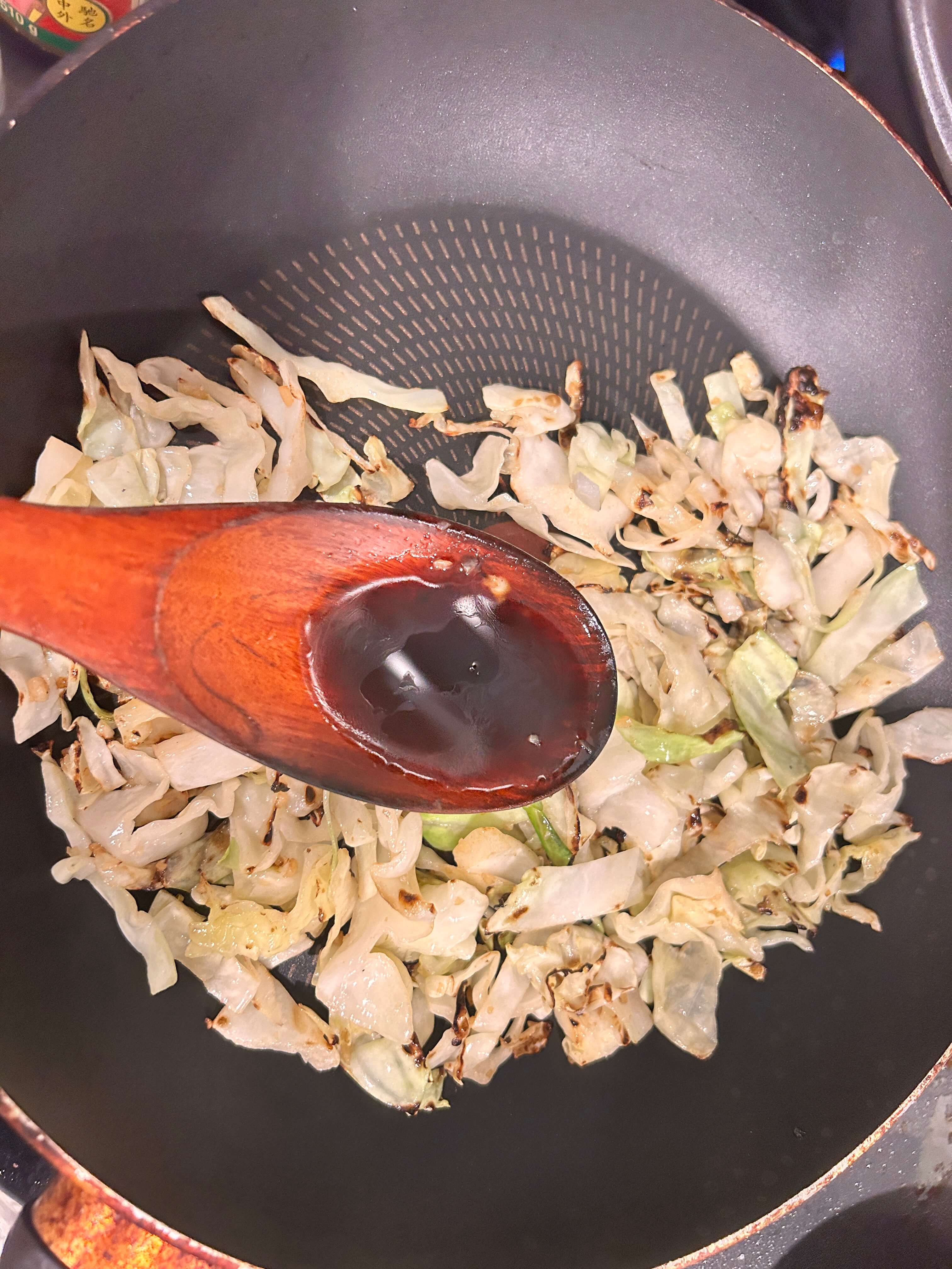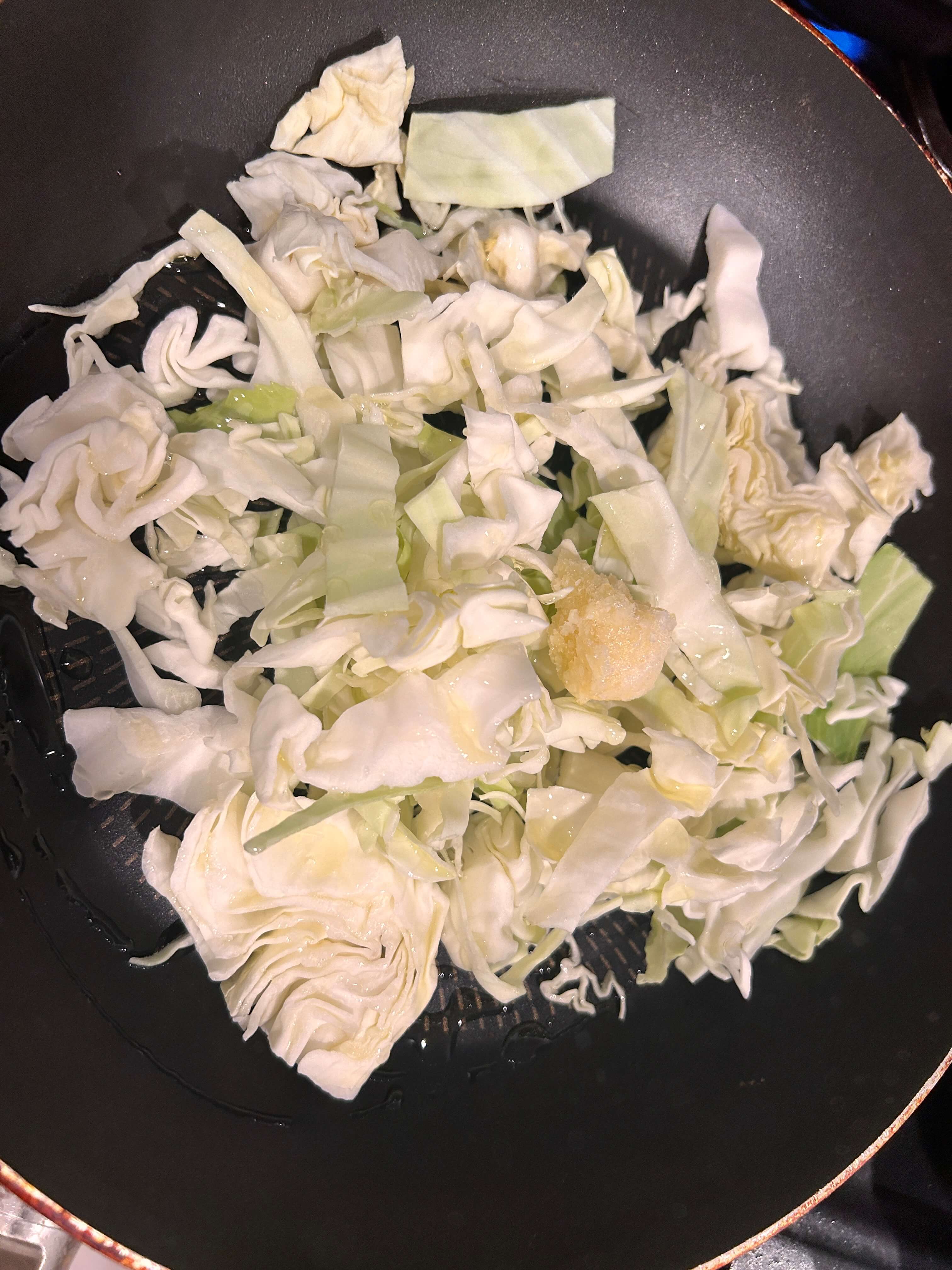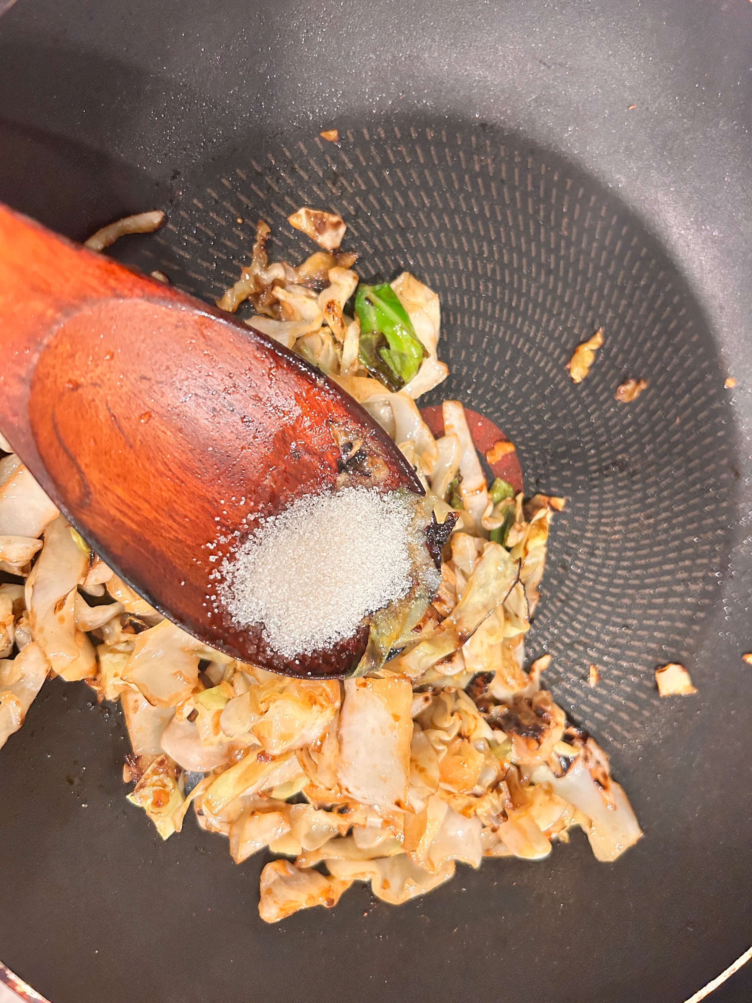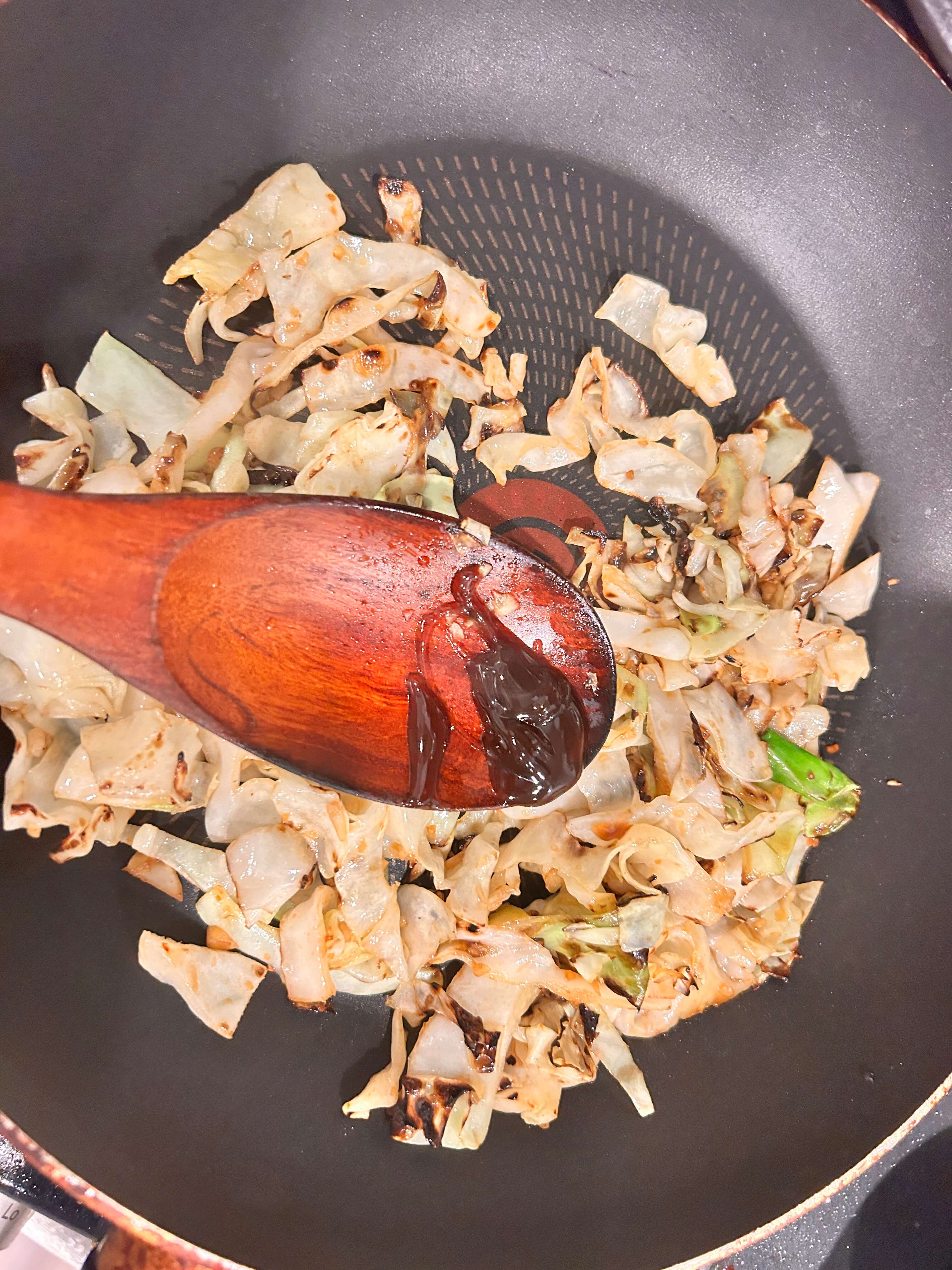 4. 양배추 숨이 죽을 때쯤 양념을 넣어줍니다.