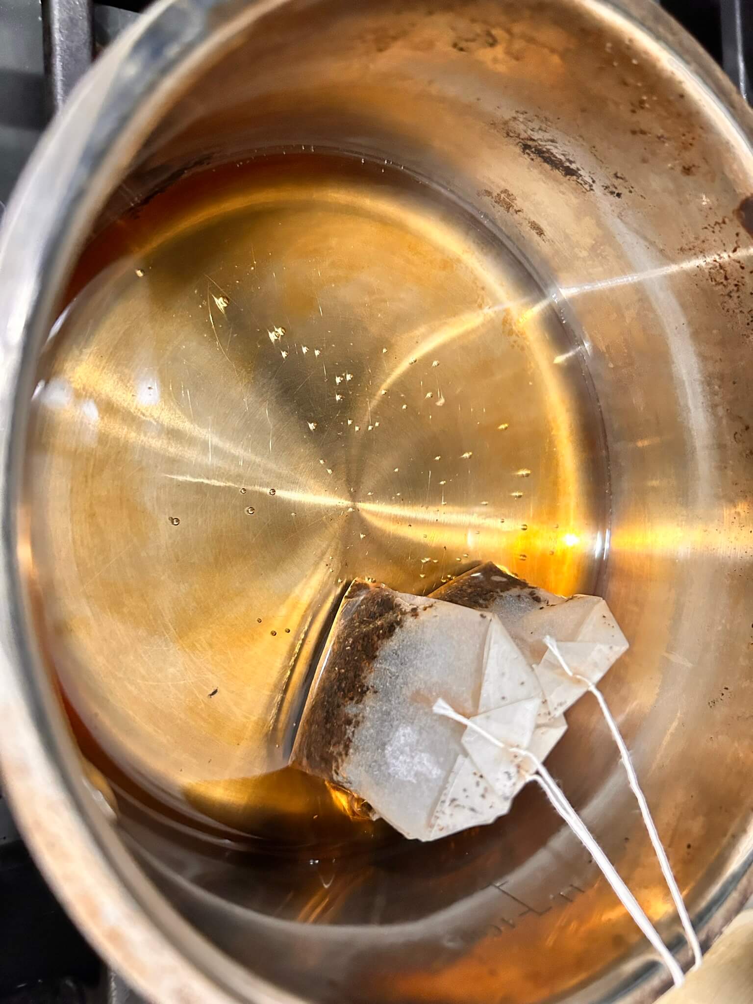 1. 먼저 냄비에 물을 끓여주고 티백을 우려내 줍니다