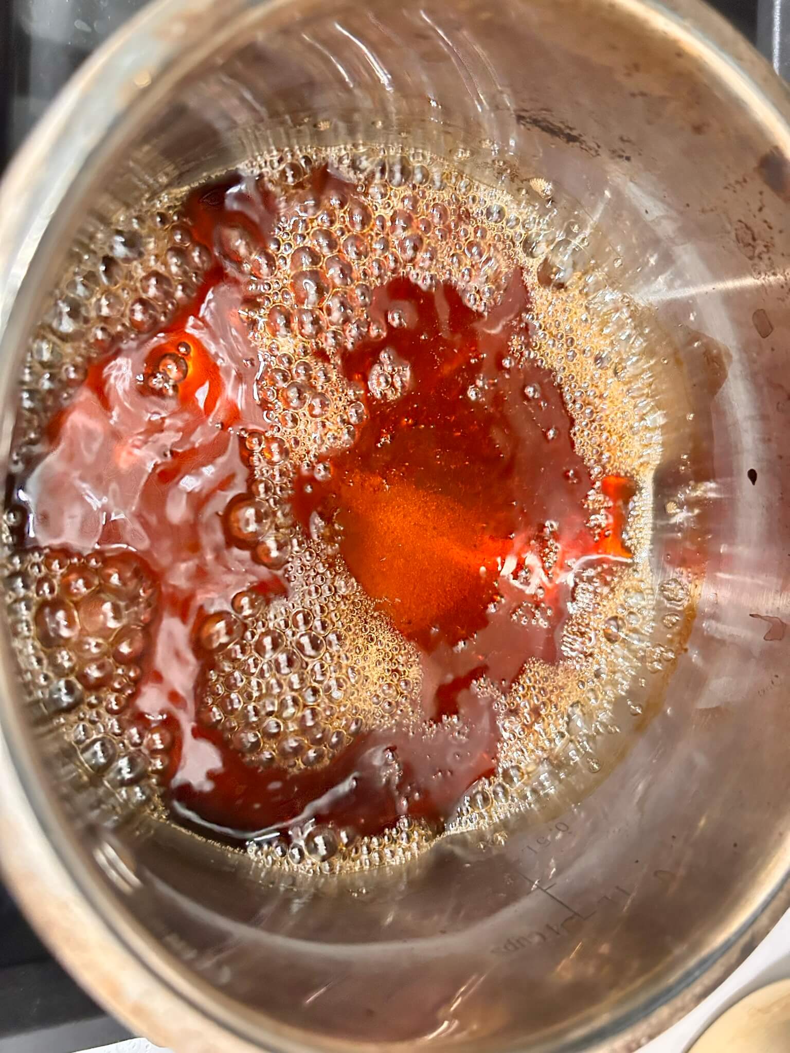 설탕이 녹은 뒤엔 식혀서 통에 담아 냉장보관해 주시면 됩니다.