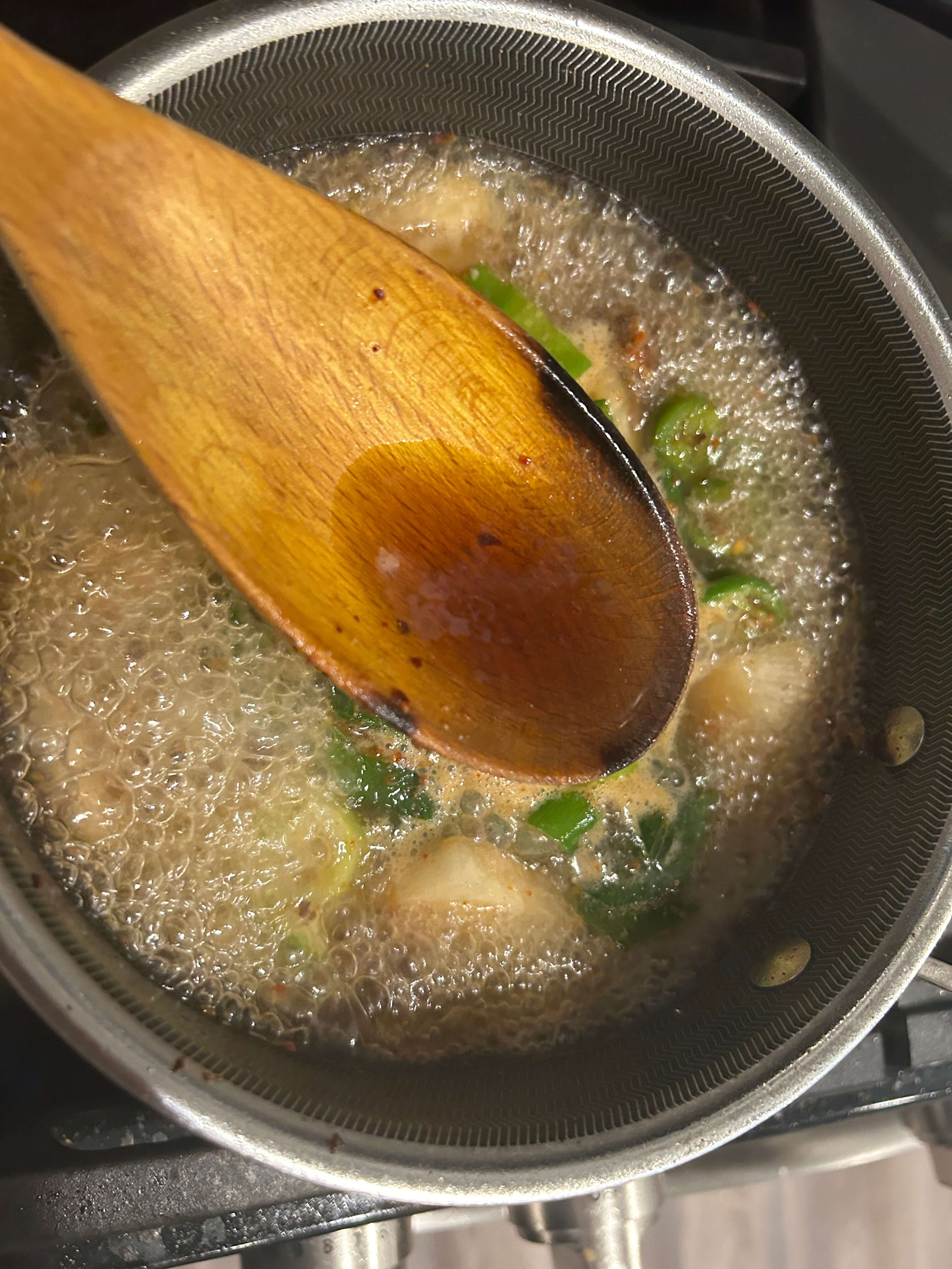 6. 대파와 청양고추를 넣어 끓여줍니다.