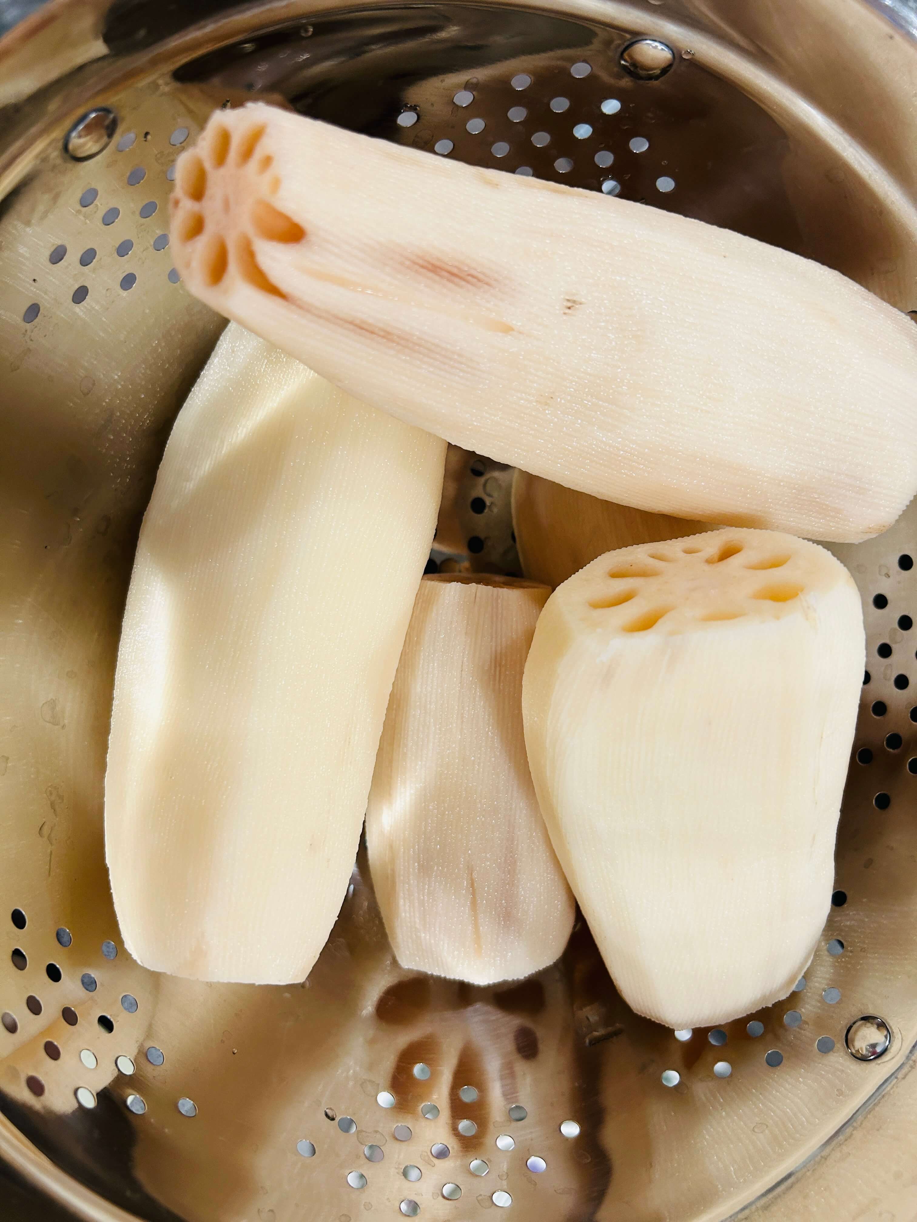 3. 냄비에 손질한 연근을 넣고 삶아줍니다.