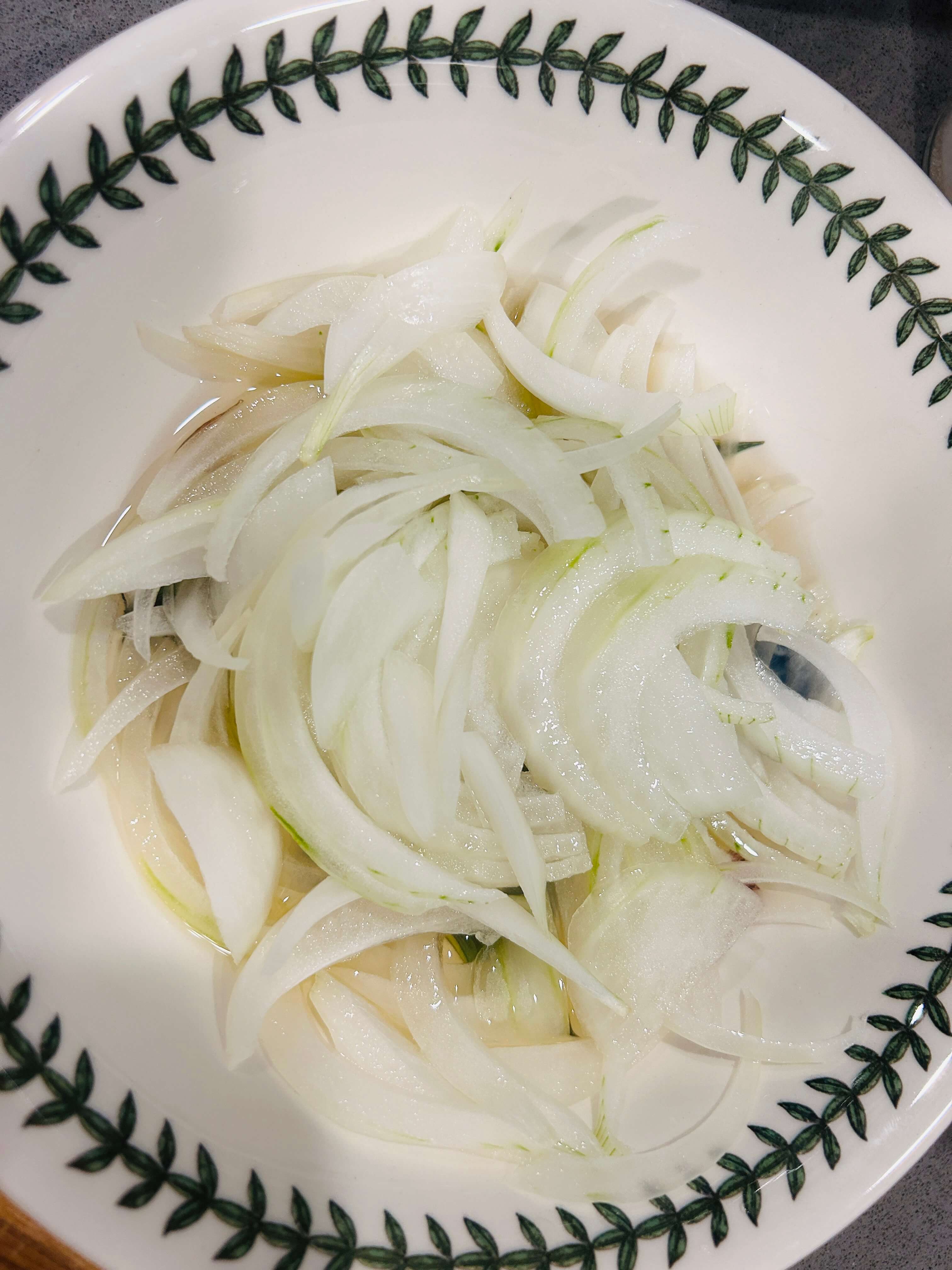 4. 양파 매운 기를 잡기 위해 물 혹은 식초물에 잠시 담가둡니다.
