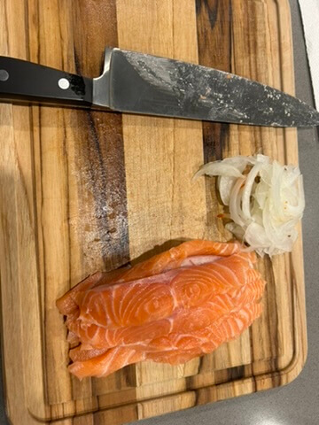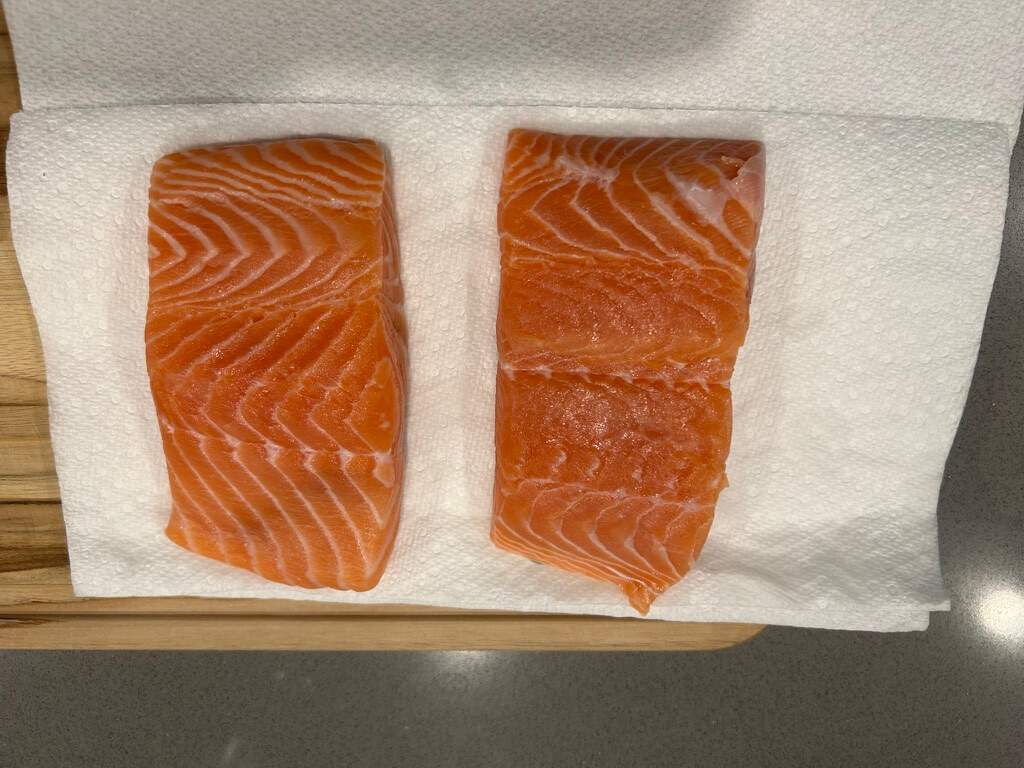 1. 연어는 물에 한번 씻어 키친타월에 물기를 제거해 준비해 줍니다.