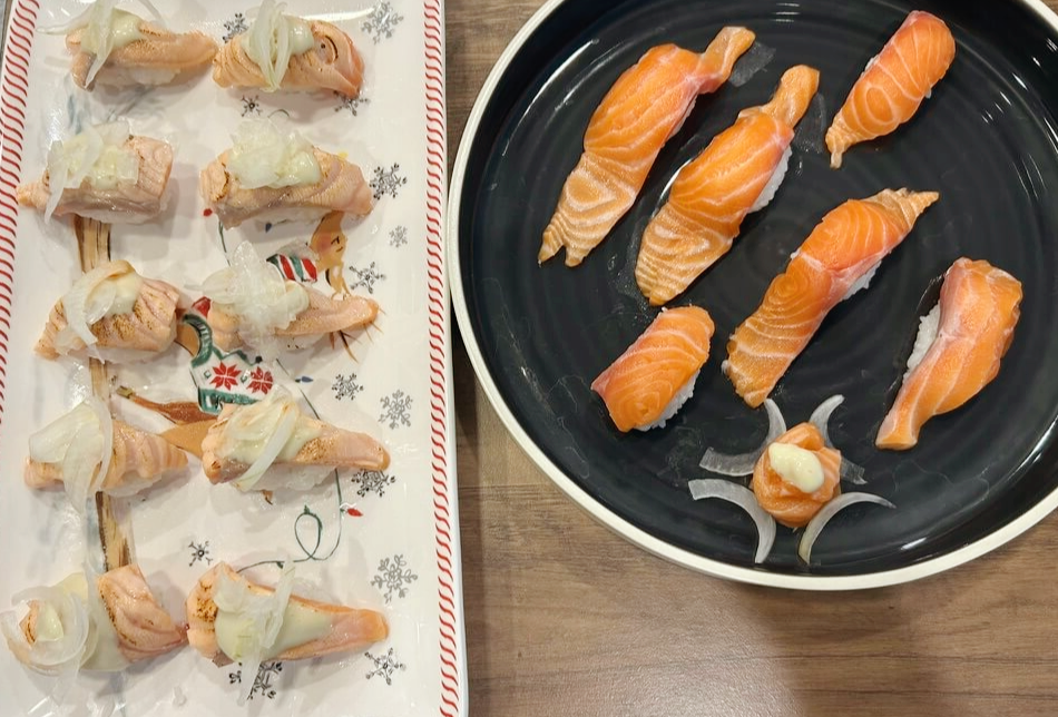 15. 생연어초밥과 같이 만들어 연어초밥을 두 가지 스타일로 즐겨줍니다.