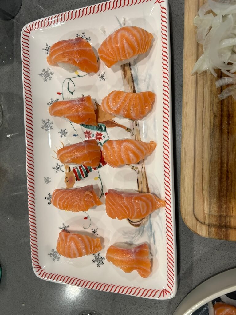 8. 준비된 밥 위에 초밥을 올려줍니다.