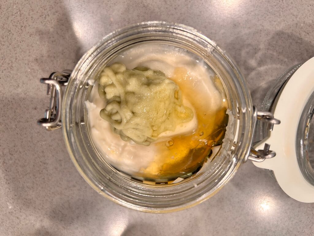 12. 마요네즈 5바퀴, 꿀1 숟갈, 와사비 1숟갈, 소금 한 꼬집, 식초 0.5 숟갈을 넣고 잘 섞어줍니다.