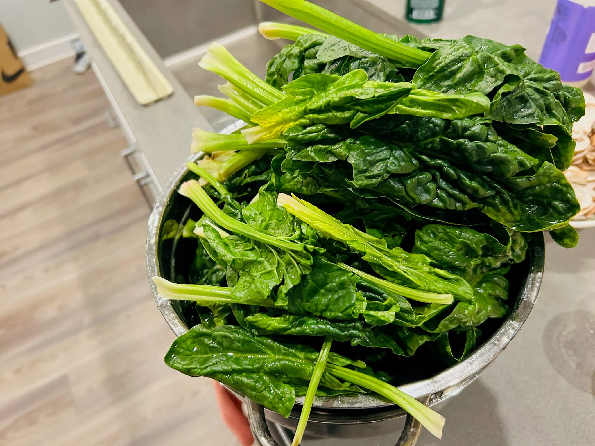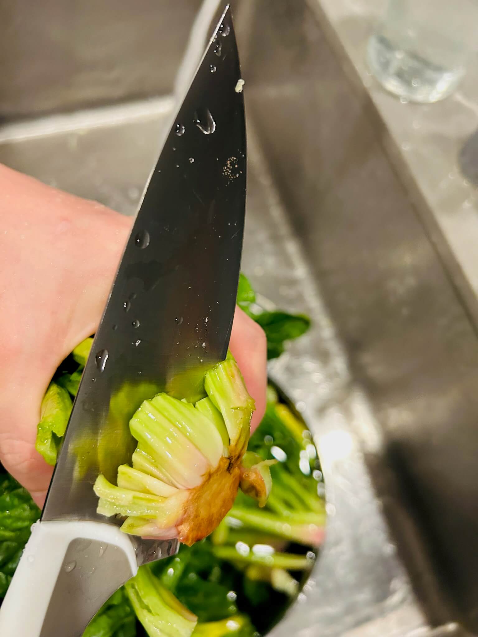 1. 시금치는 흐르는 물에 다듬어 줍니다.