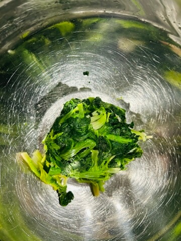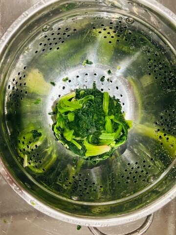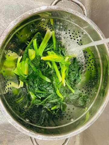 4. 데친 시금치는 찬물에 씻어 물기를 제거해 줍니다.