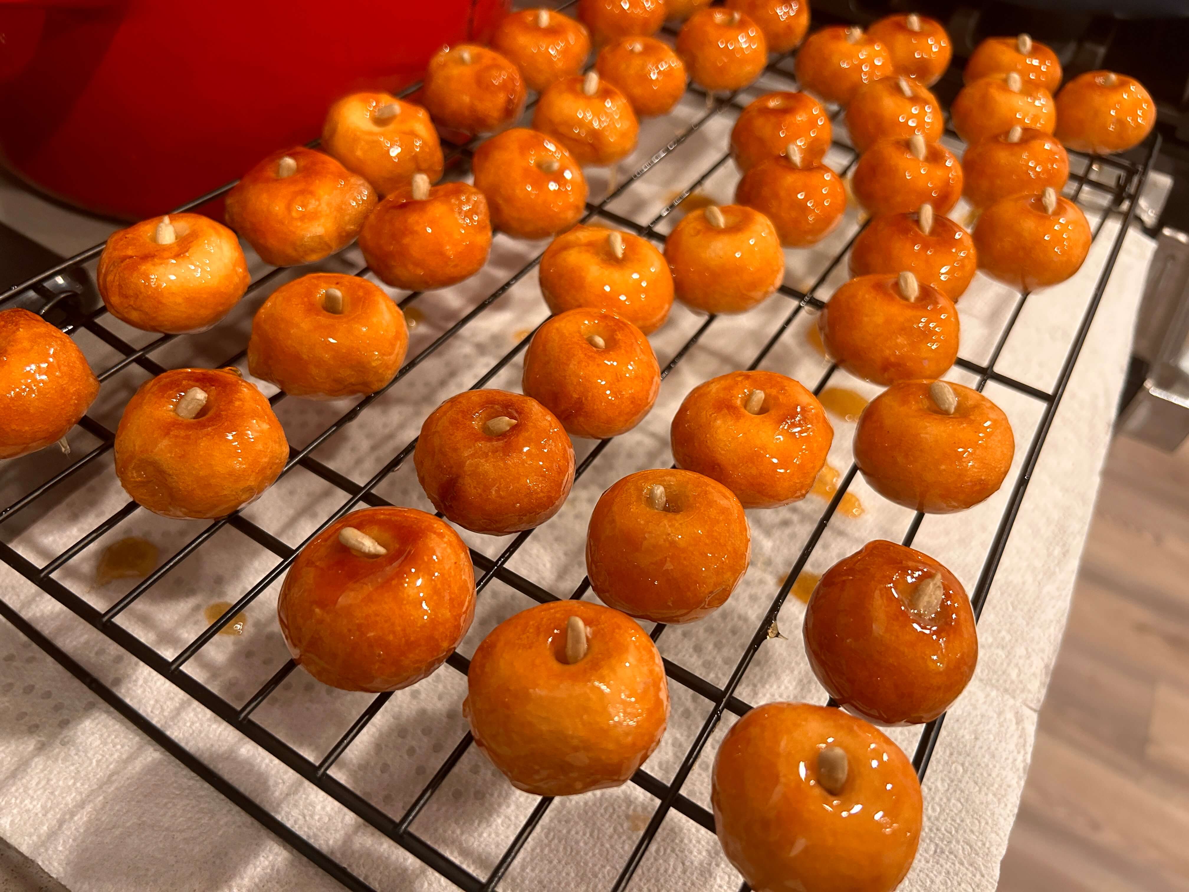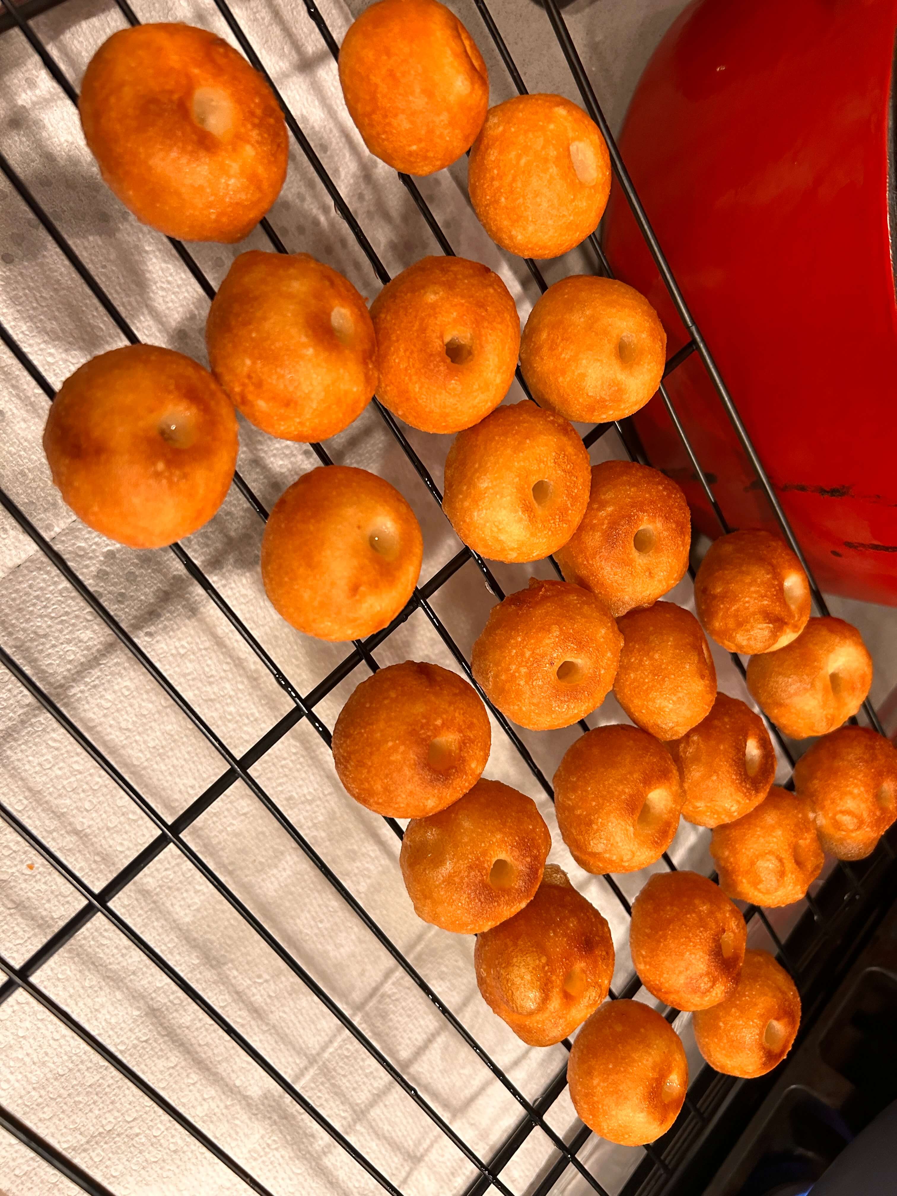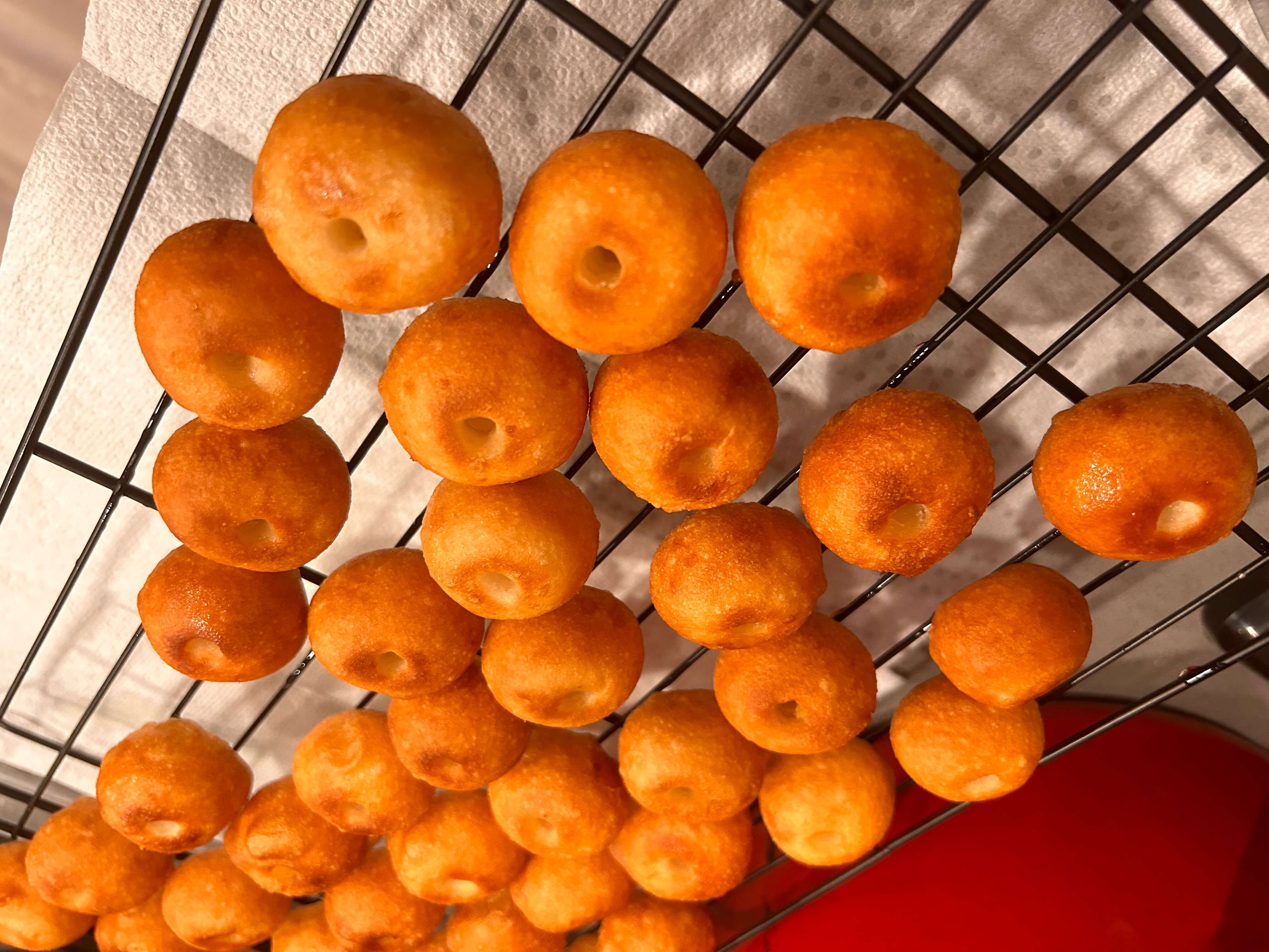 11. 튀긴 반죽은 식힘망에 두어 식혀줍니다.