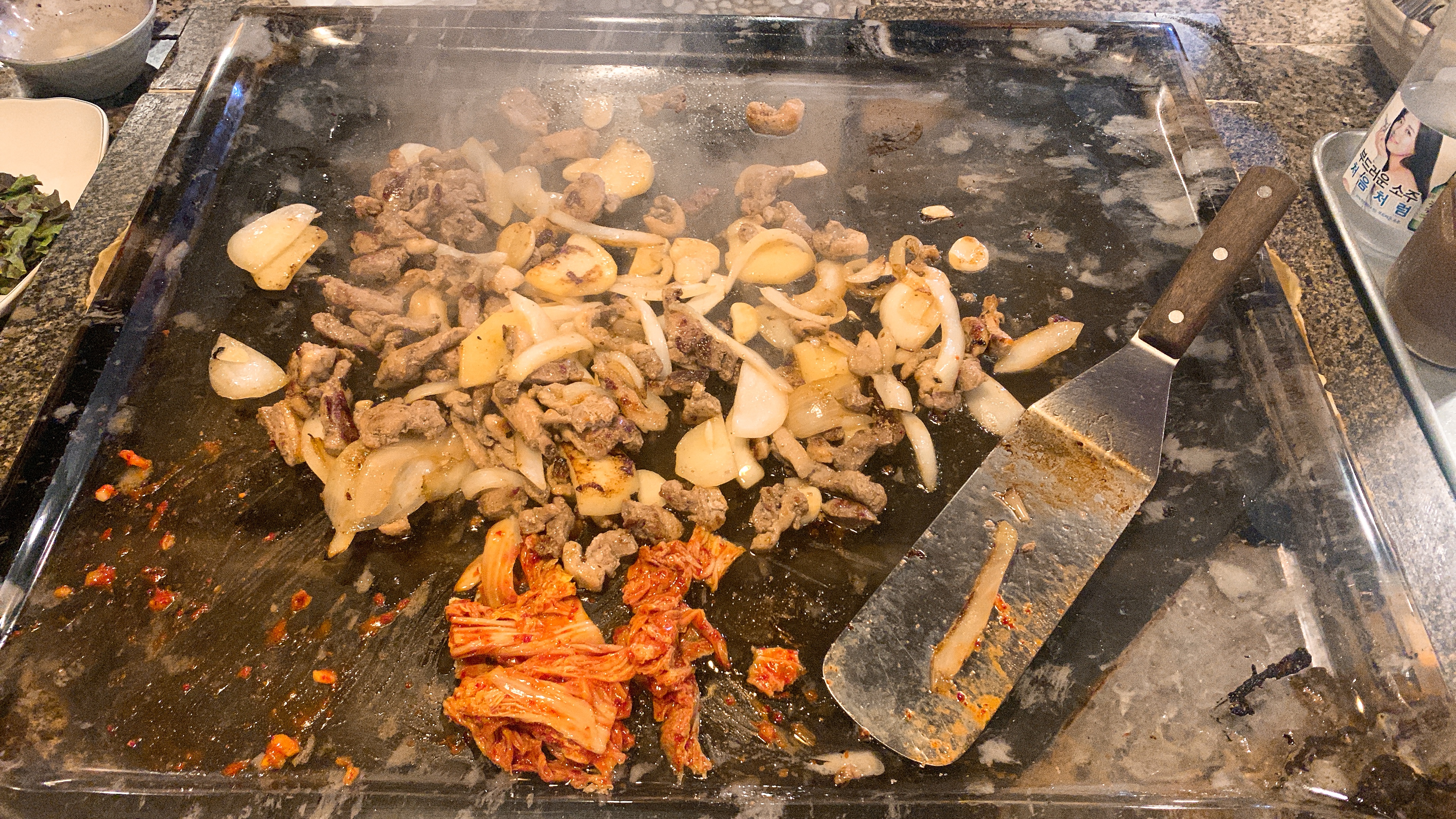 처음에 저렇게 두껍게 올려놓으시길래 제가 가져와서 얇게 펼치려고 했는데 와서 해주신다고 하시더라고요. ^^