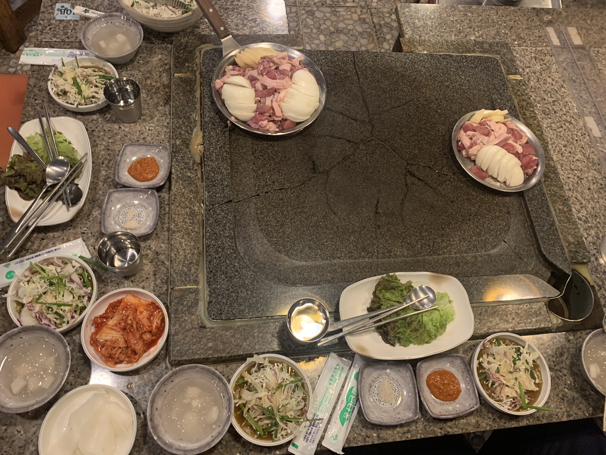 그리고 생오로스구이가 도착하고 돌판에 불을 달구십니다.