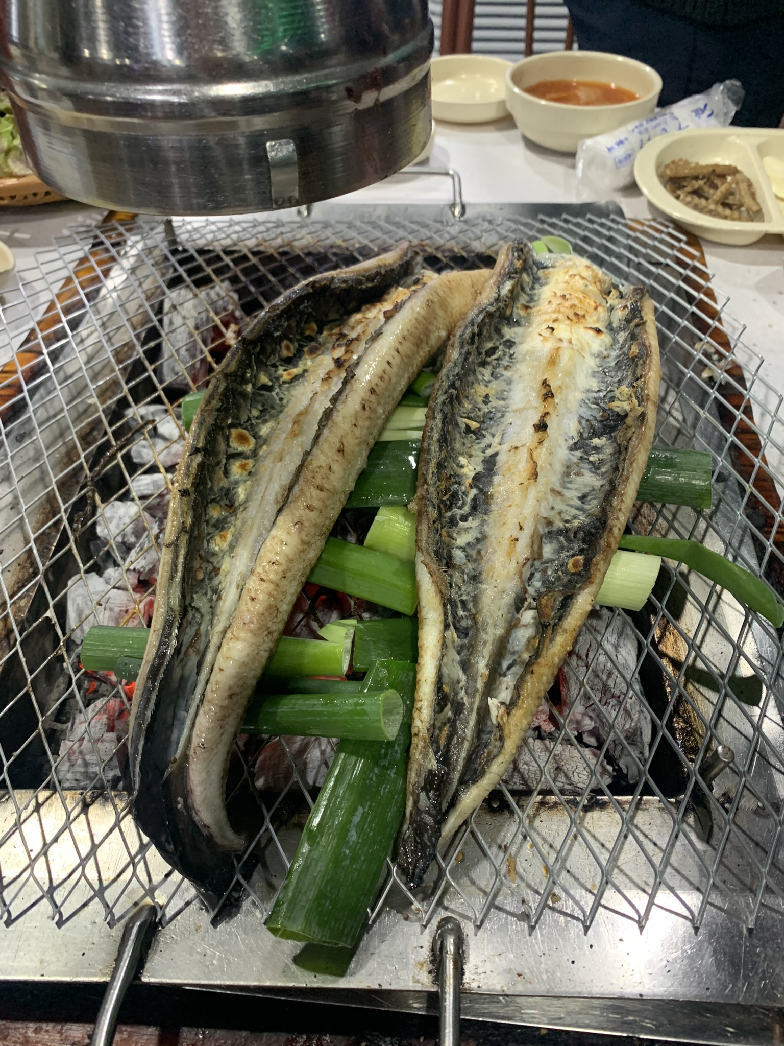 다 익어서 먹을 준비가 되면 이렇게 양 옆으로 장어를 놔주십니다.