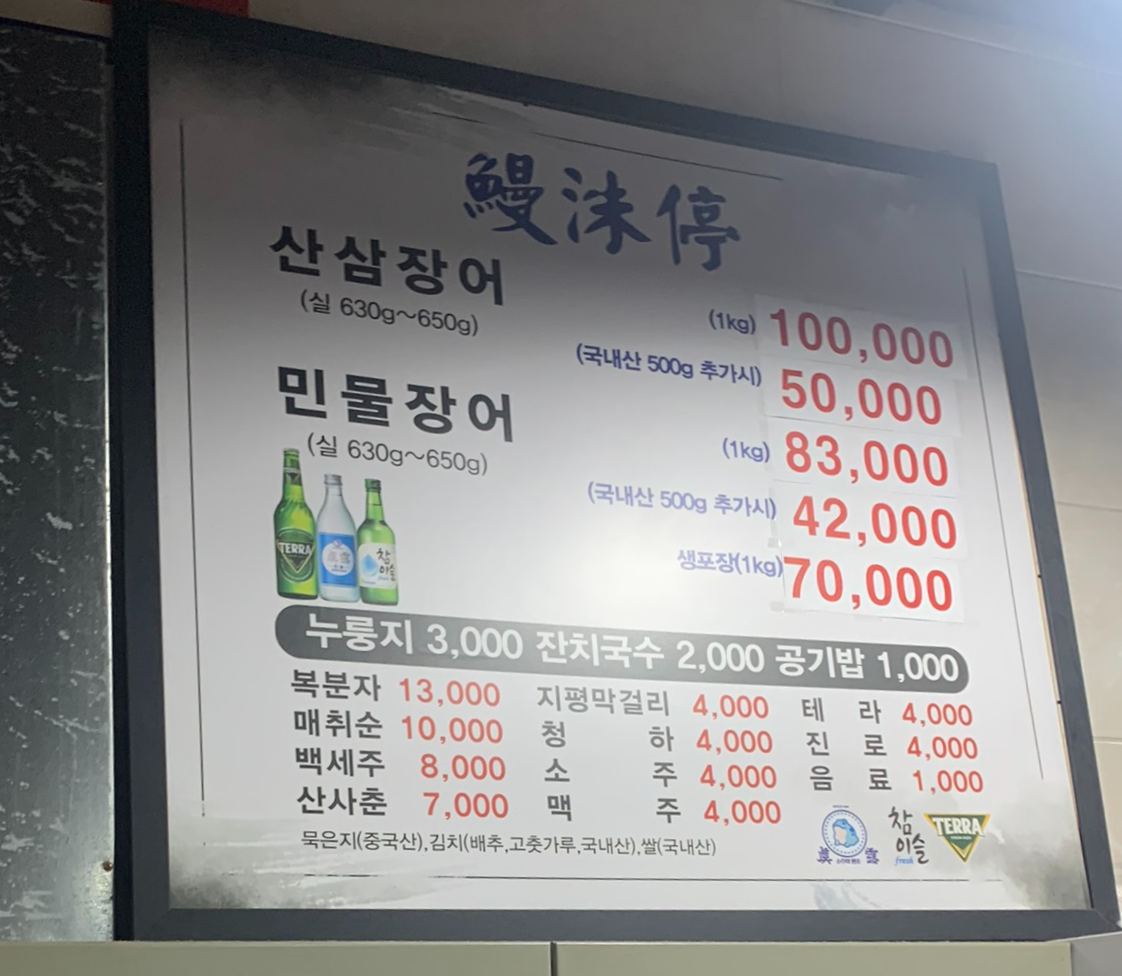 이렇게 사람이 많다는 건 맛은 당연한거고, 장어의 순환이 그만큼 빠르기때문에 신선할거라는 보장도 되지 않나 싶습니다.