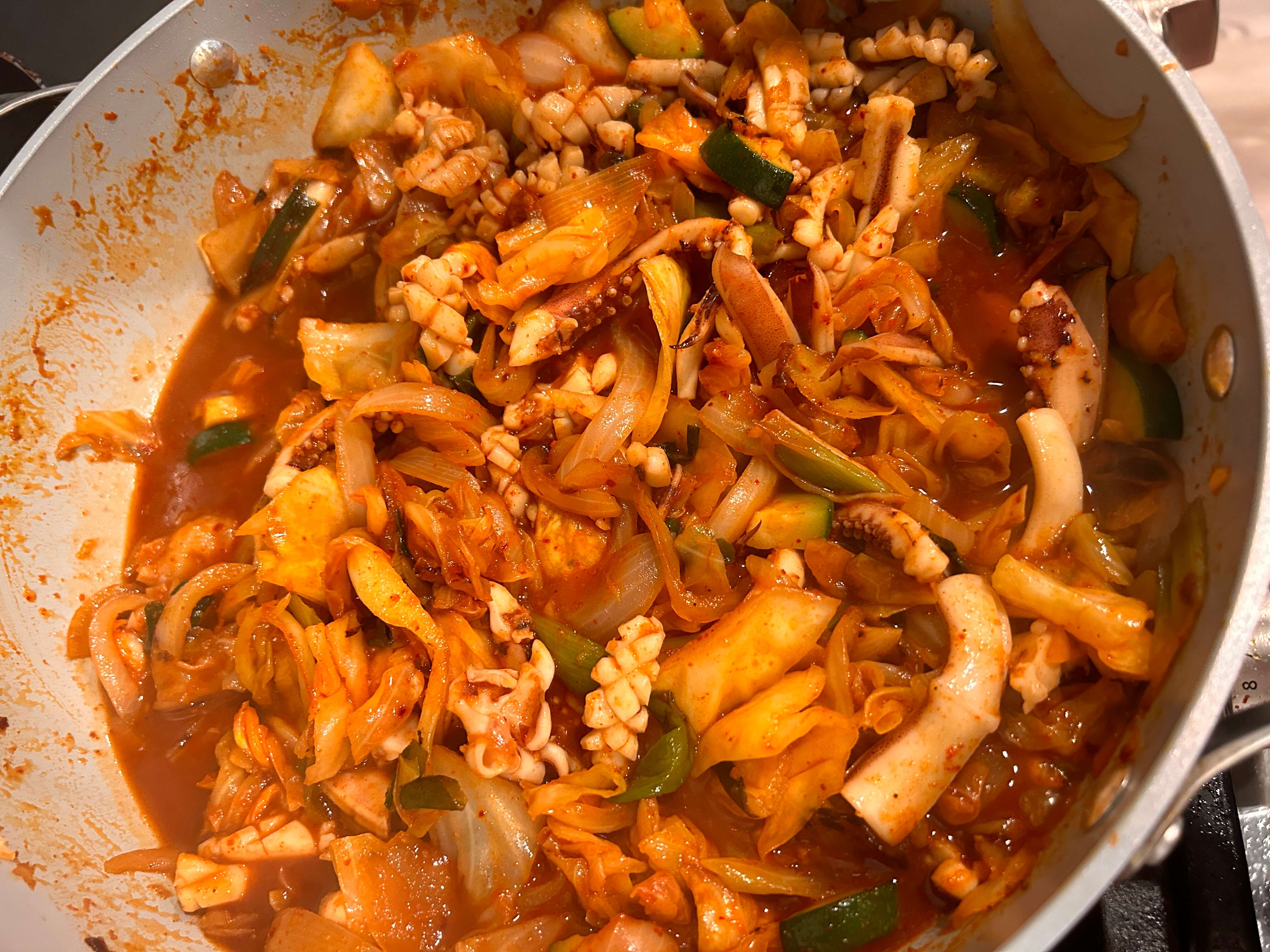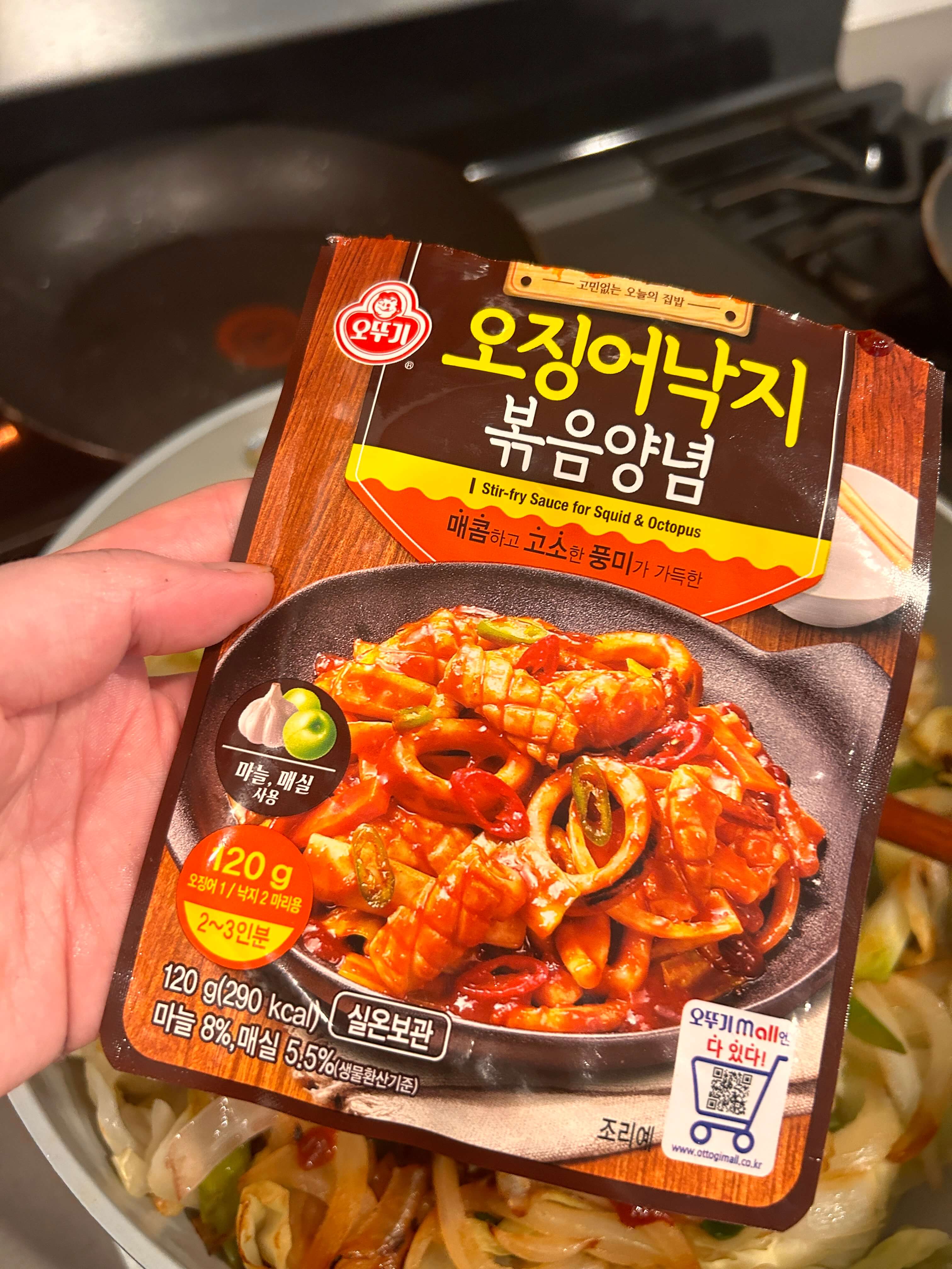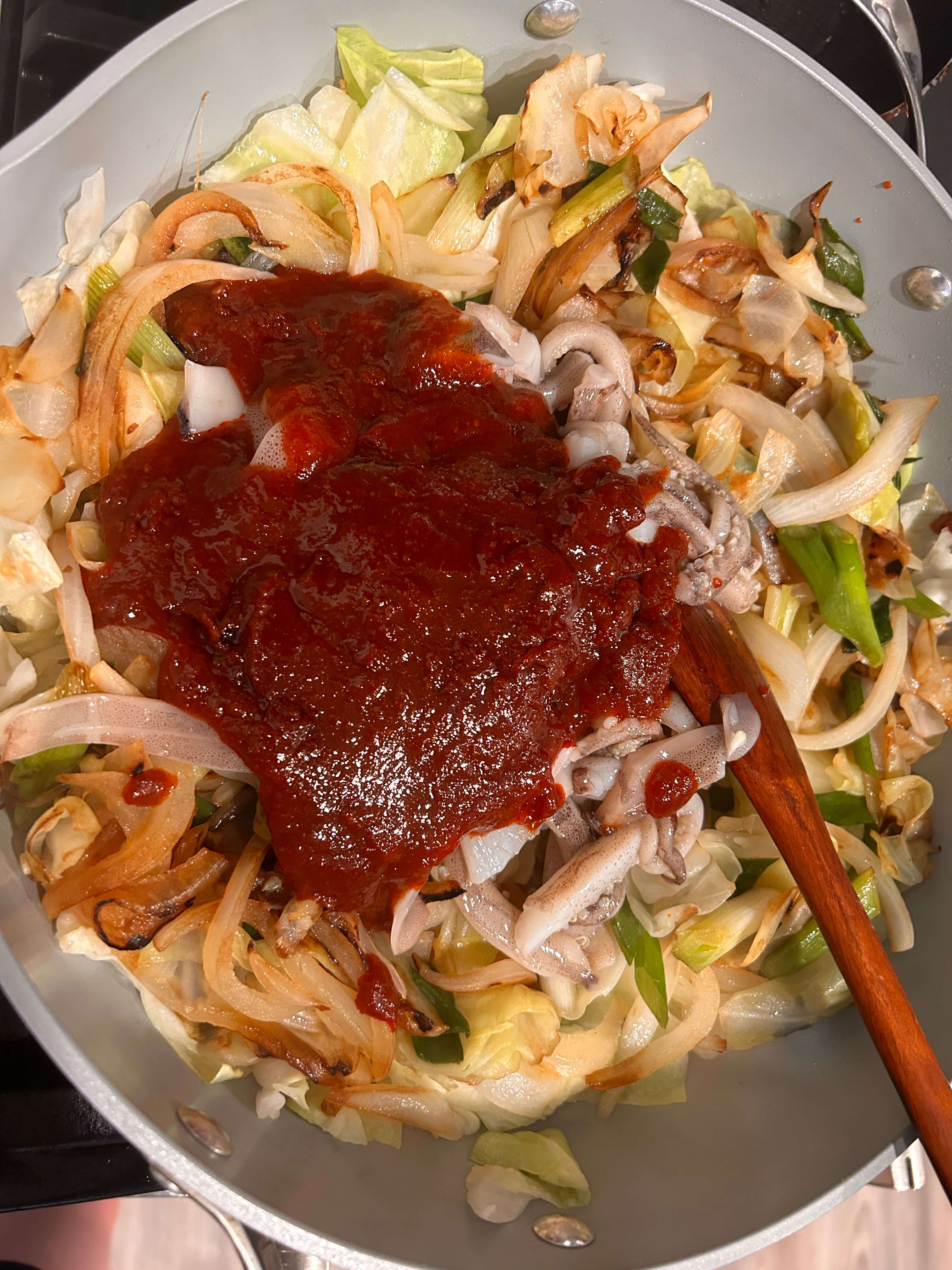 5. 오징어낙지 볶음양념을 넣어줍니다.