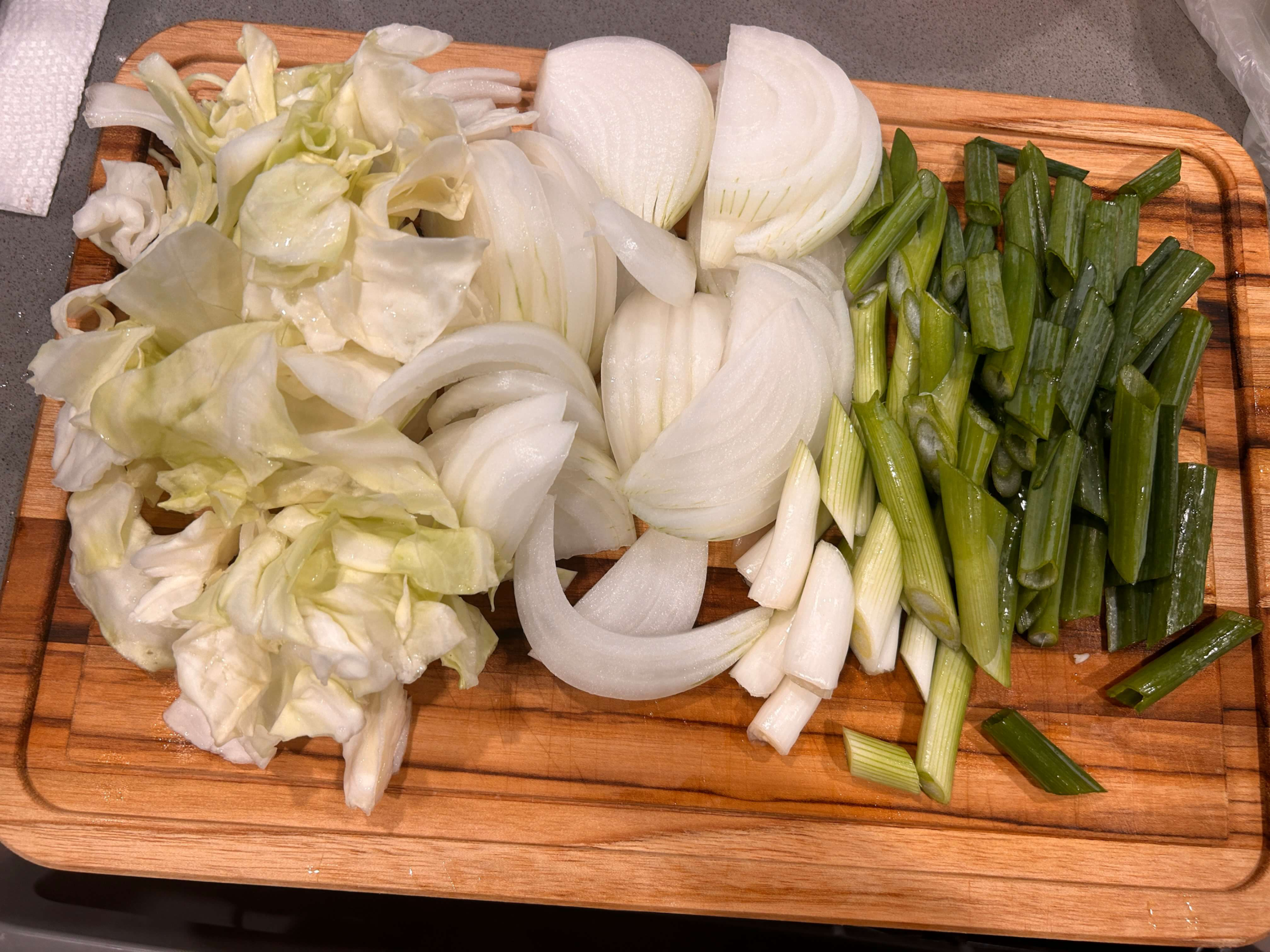 1. 양배추, 양파, 파를 먹기좋은 크기로 잘라 준비해 줍니다.