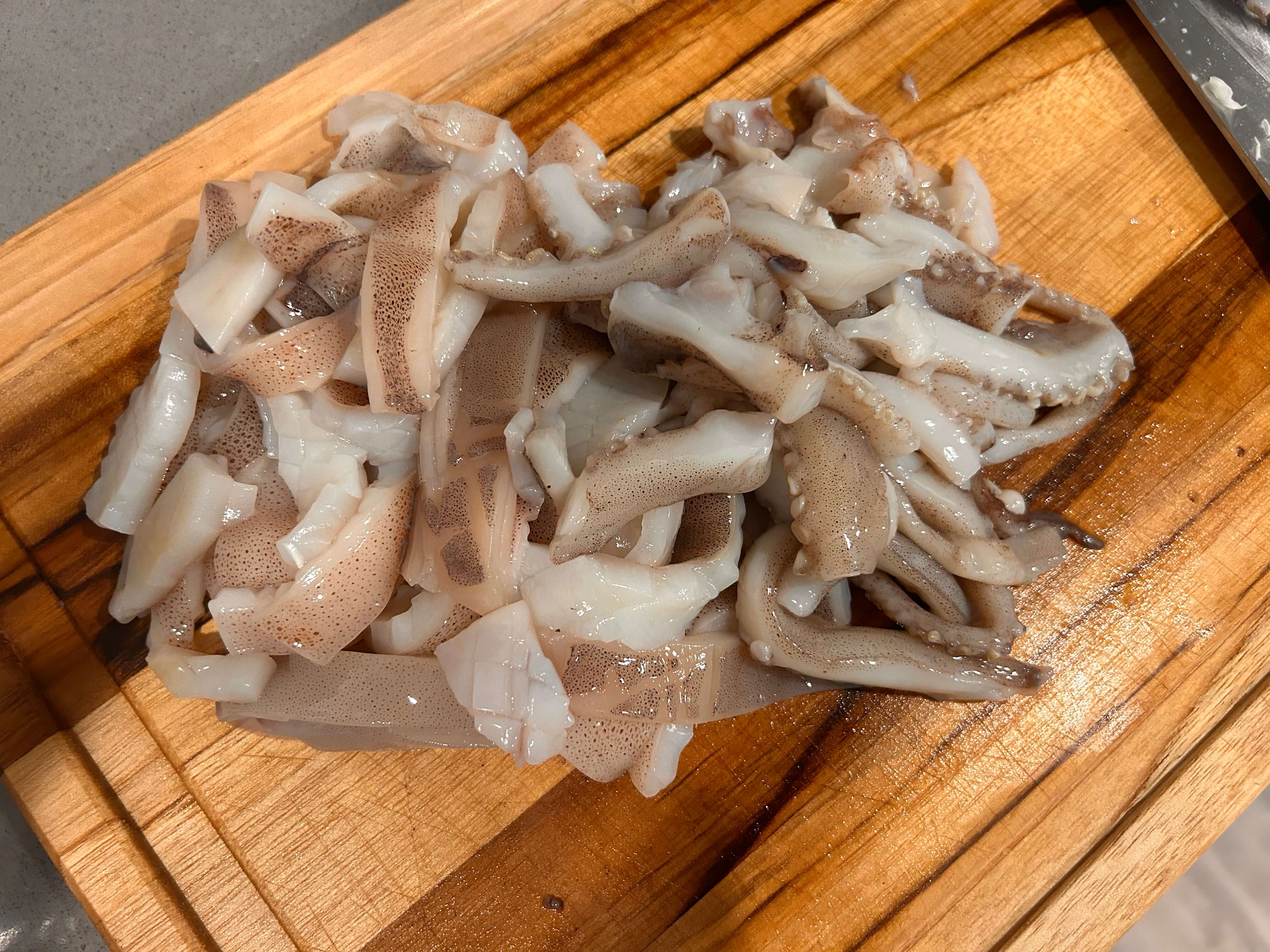 3. 오징어도 먹기좋은 크기로 잘라서 준비해 줍니다.