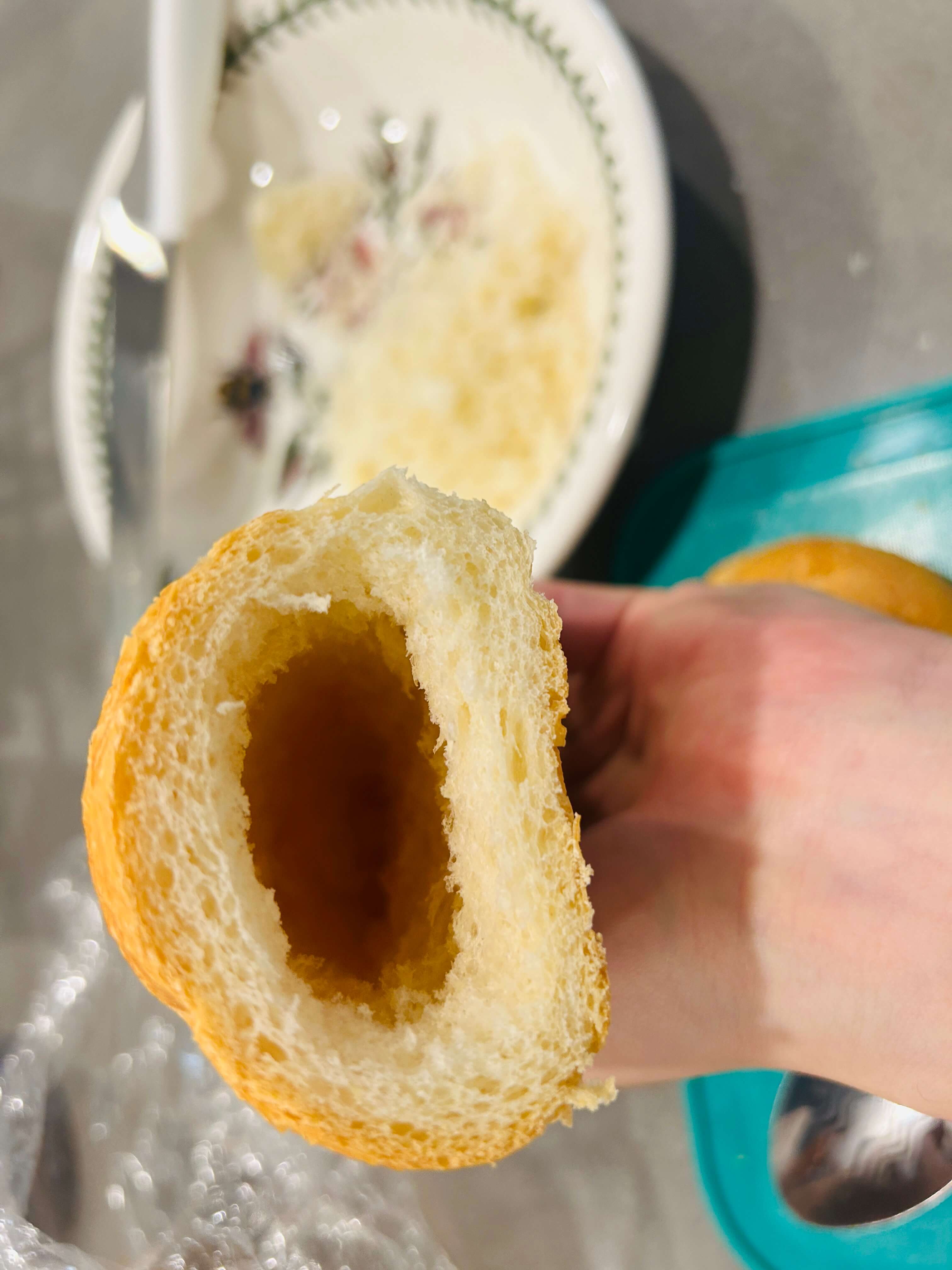 2. 바게트 속 빵을 파 줍니다.