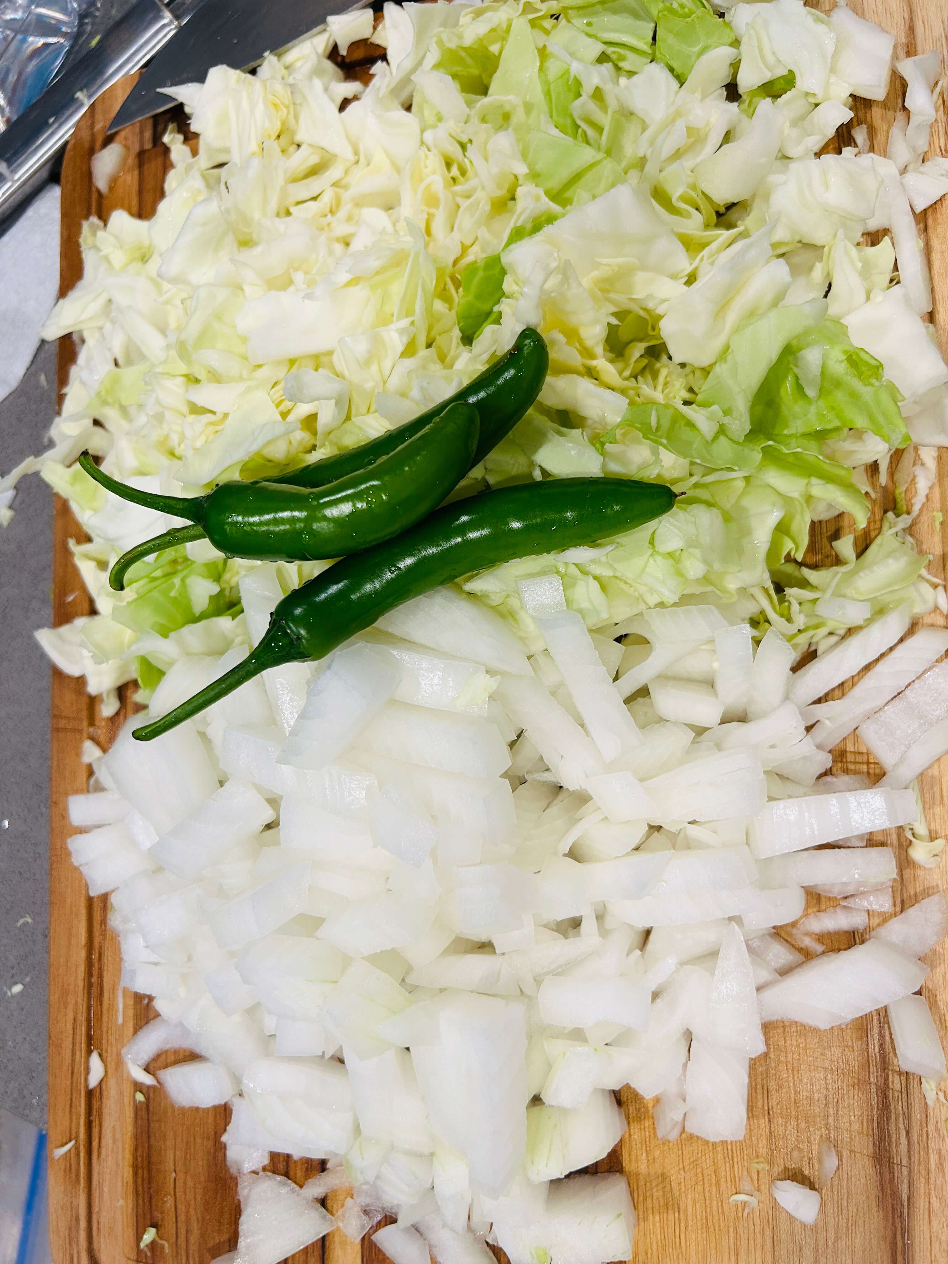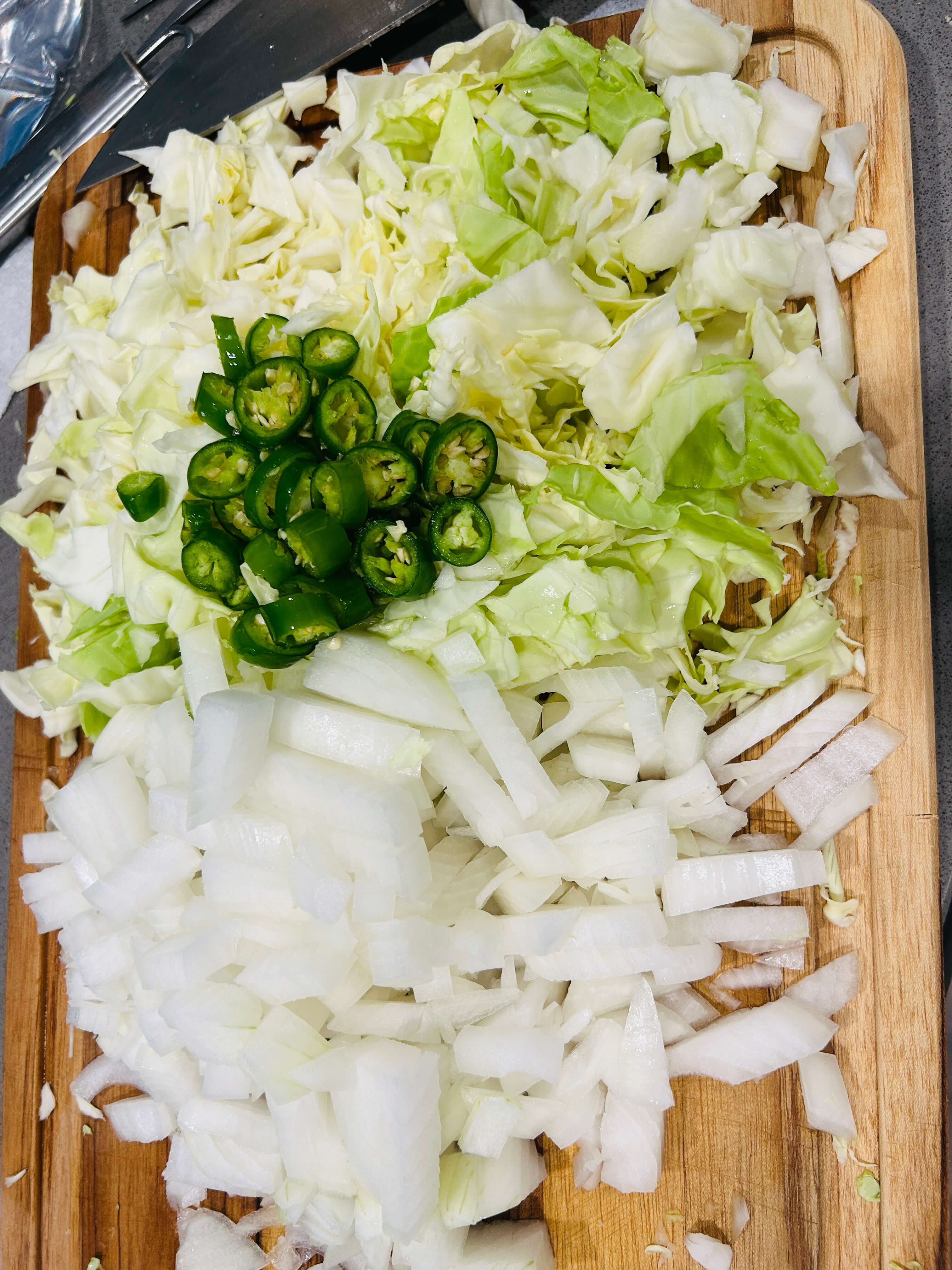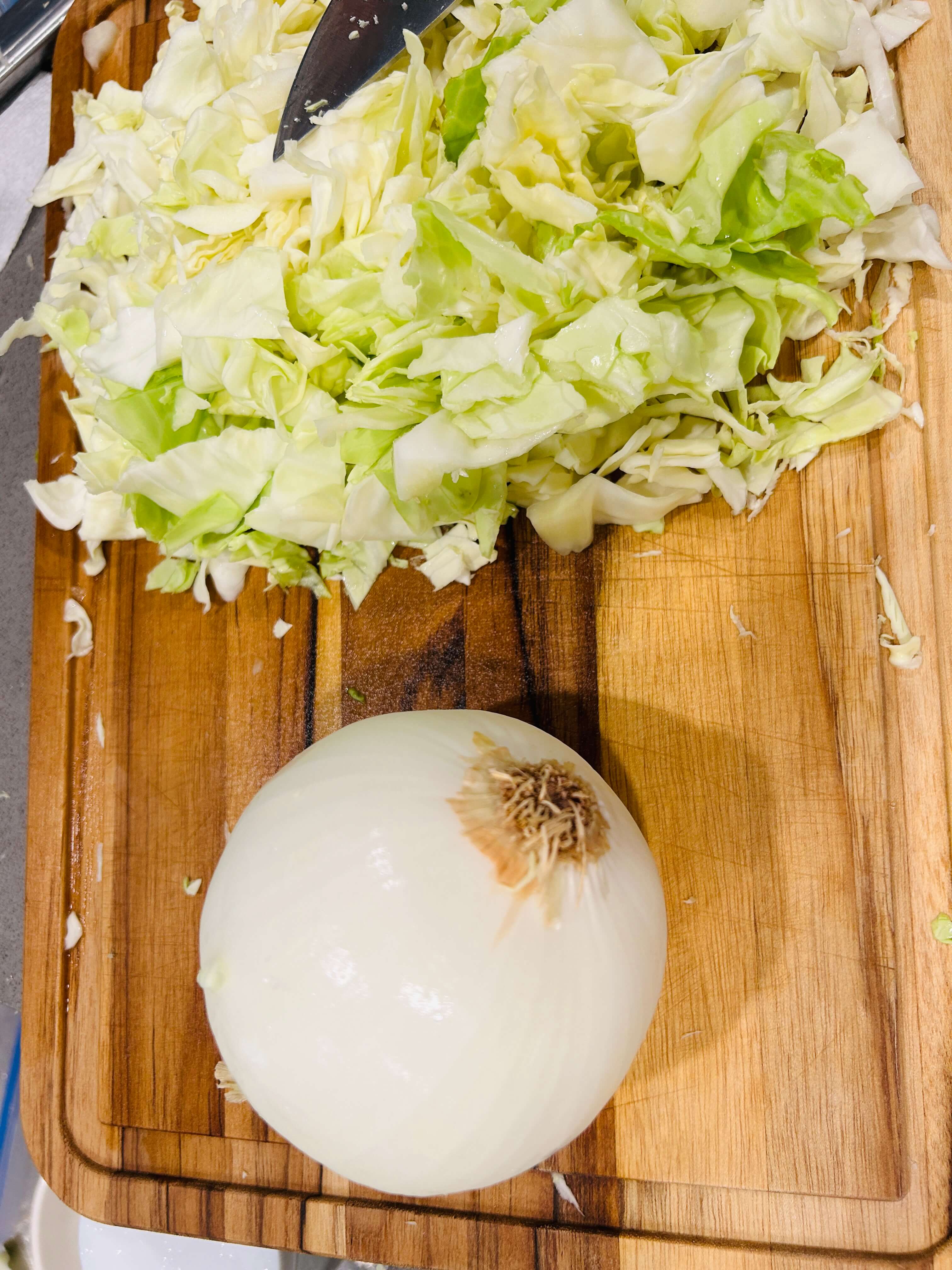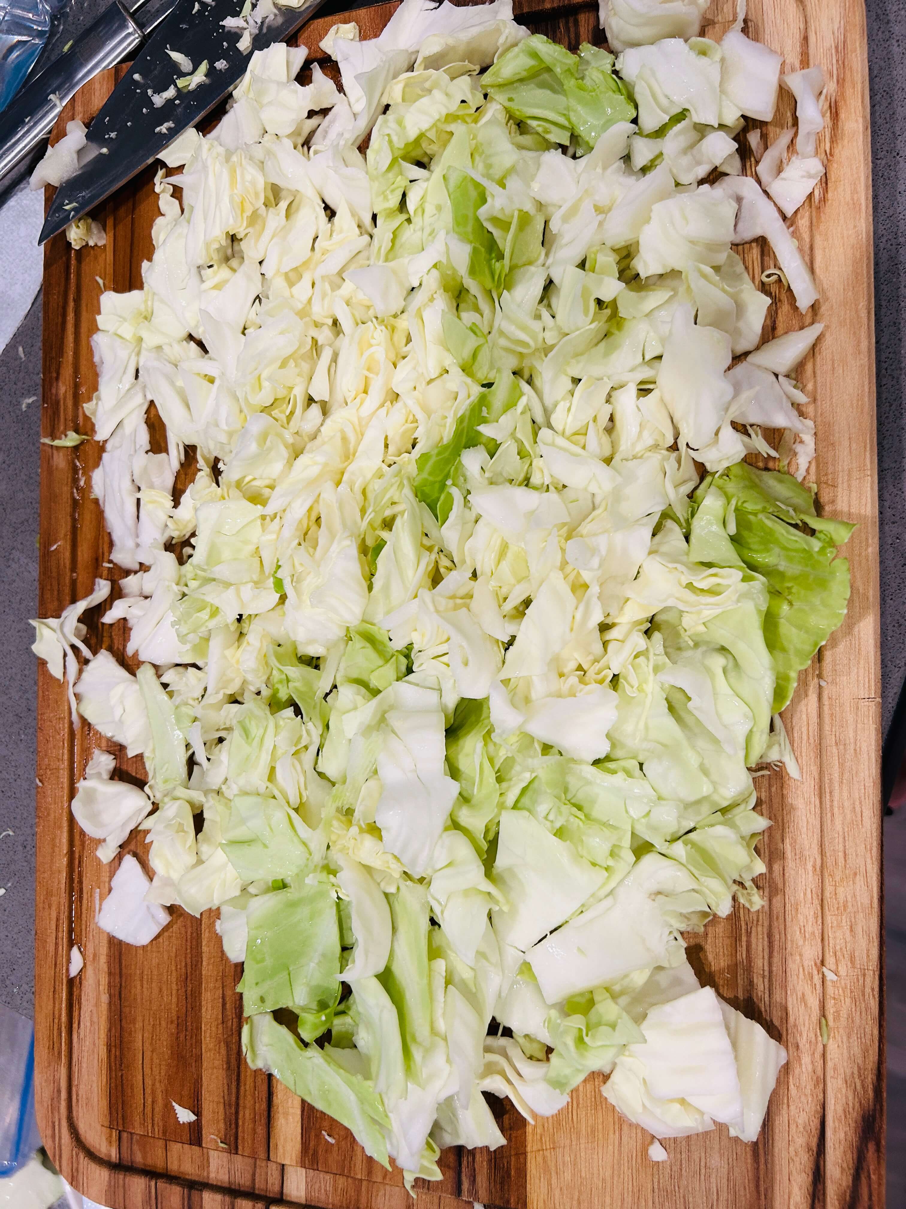 3. 양배추를 잘게 썰어줍니다.