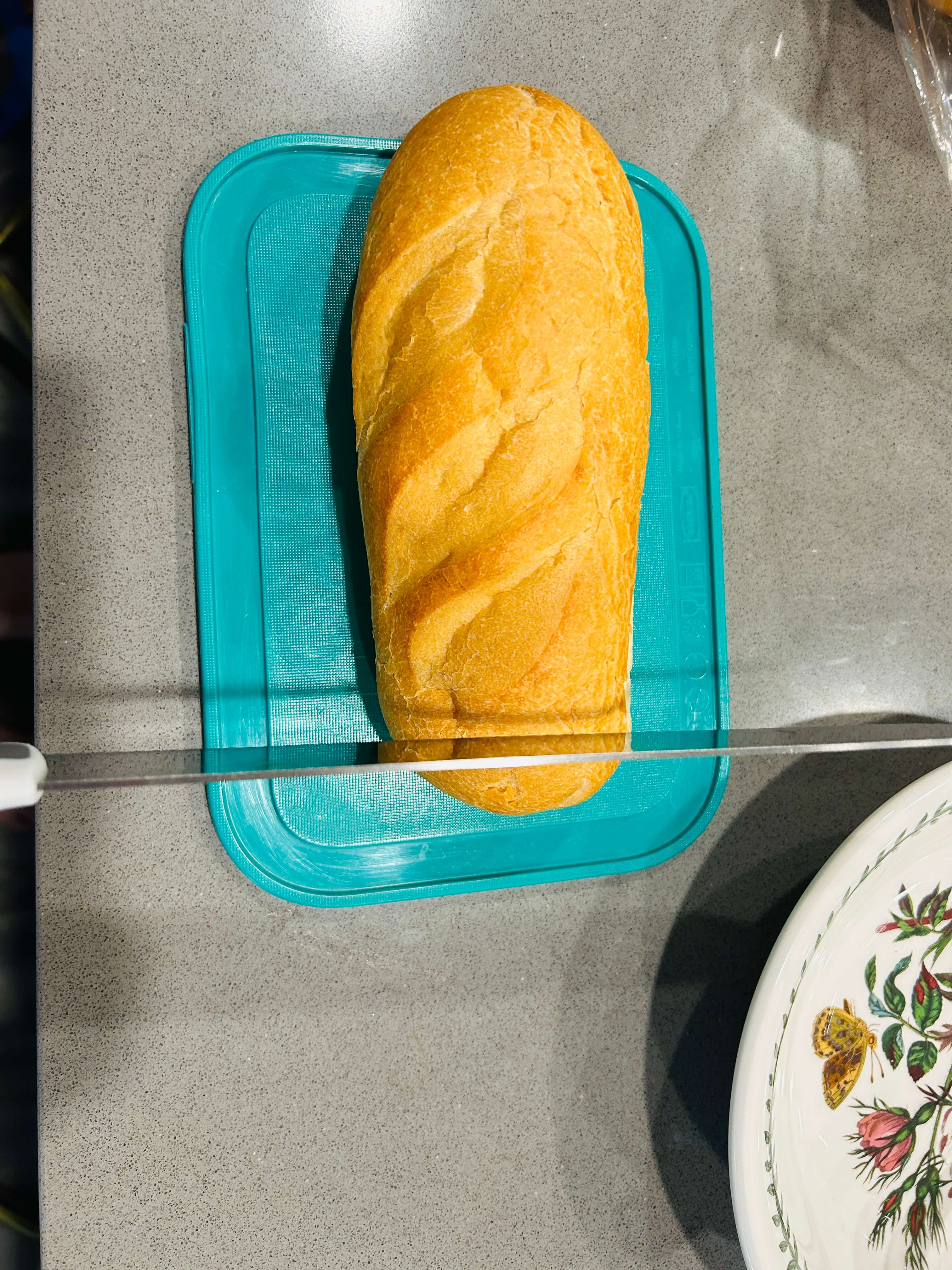1. 바게트 한쪽을 잘라줍니다.