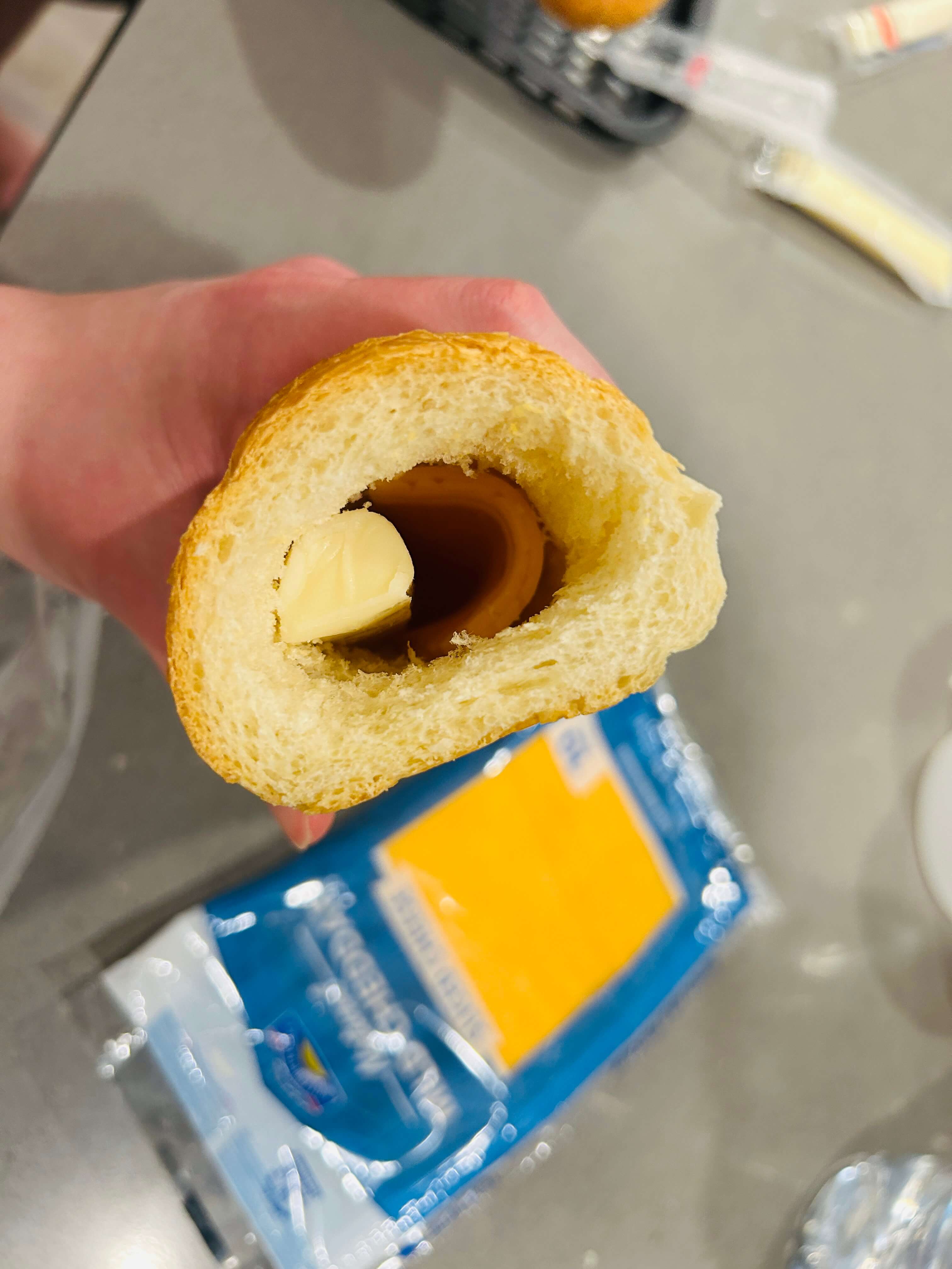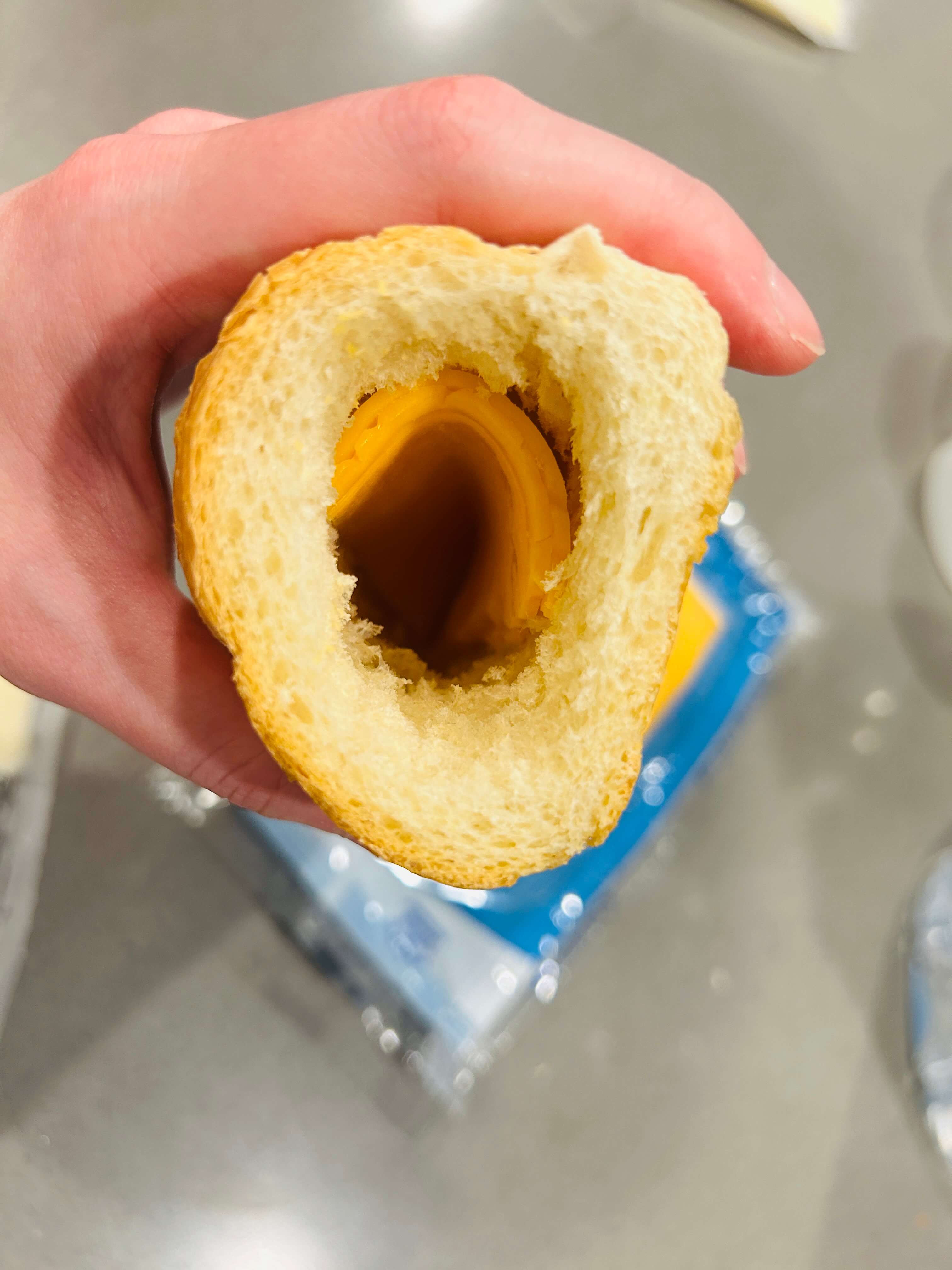 12. 준비된 바게트빵에 치즈를 넣어줍니다.