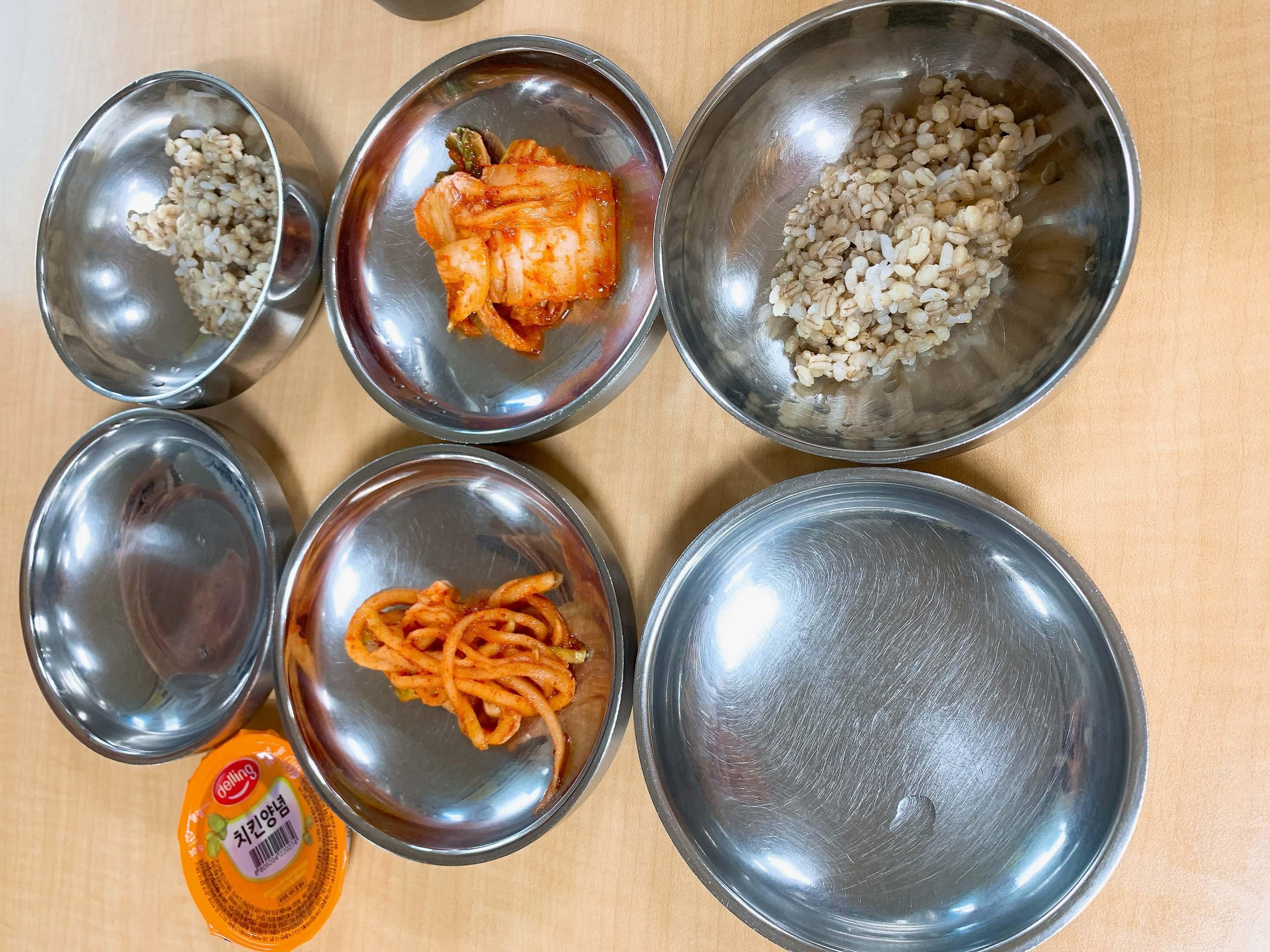 주문하고 나면 이렇게 보리밥과 김치를 주십니다.